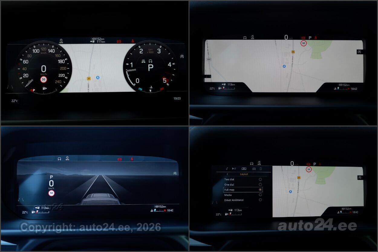 | Varustus: | kliimaautomaatik, automaatpidurdussüsteem, roolivõimendi (kiirustundlik), kesklukustus (puldiga), ABS pidurid, elektrooniline seisupidur, turvapadi, peatoed, immobilisaator, signalisatsioon, stabiilsuskontroll, kokkupõrget ennetav pidurisüsteem, pidurdusjõukontroll, sõiduraja hoidmise abisüsteem, liiklusmärkide tuvastus ja kuvamine, veojõukontroll, vihmasensor, ISOFIX lasteistme kinnitus (taga), kõrvalistuja turvapadja väljalülitamise võimalus, mägipidur, valgustuspakett, udutuled (eesmised, tagumine), LED (päevatuled, tagatuled, lähituled, kaugtuled), esitulede pesurid, päevasõidutulede automaatne lülitus, kaugtulede ümberlülitamise assistent, talverehvid (lamellrehvid), valuveljed (20, Land Rover), autoga antakse kaasa (suverehvid, valuveljed (19, Land Rover)), reguleeritav roolisammas (kõrgus ja sügavus), multifunktsionaalne rool, nahkkattega rool, soojendusega rool, stereo (originaal), kõlarid, Apple CarPlay, Android Auto, ekraan (ees), navigatsiooniseade, käed vabad süsteem, Taurus Leather/Robust Woven Textile poolnahkpolster, elektriliselt reguleeritavad istmed, istmed reguleeritava kõrgusega (juhiiste, kõrvalistuja iste), istmesoojendused, reguleeritava kumerusega seljatugi, käetugi ees (laekaga), käetugi taga, tagaistme seljatugi allaklapitav, elektrilised välispeeglid (soojendusega, kokkuklapitavad), elektrilised akende tõstukid, toonitud klaasid, püsikiiruse hoidja, eraldi kliimaseade tagaistmetele, kohtvalgustid, parkimisandurid (ees, taga), parkimiskaamera (360), Coming-/Leaving-Home funktsioon, digitaalne näidikutepaneel, tagavararatas, võtmeta avamine, võtmeta käivitus, start-stopp süsteem, 12v pistikupesad, õhkvedrustus, reguleeritav vedrustus (elektriliselt, kõrgus), katusereelingud, veokonks (teisaldatav), elektrilise soojendusega esiklaas, tagaklaasi soojendus, aknapesupihustite sulatus, tagaklaasi puhasti, Super Premium Noise Insulation Packages - Mürasummutus pakett, ESIKLAASI SOOJENDUS, ROOLISOOJENDUS, AUTOMAATNE KAUGTULEDE VAHETUS, PAGASILUUGI SOFTCLOSE süsteem, 360 Kaamera - Camera Systems 3D Surround Camera, Lane Control LKA + Upcoming Traffic, |