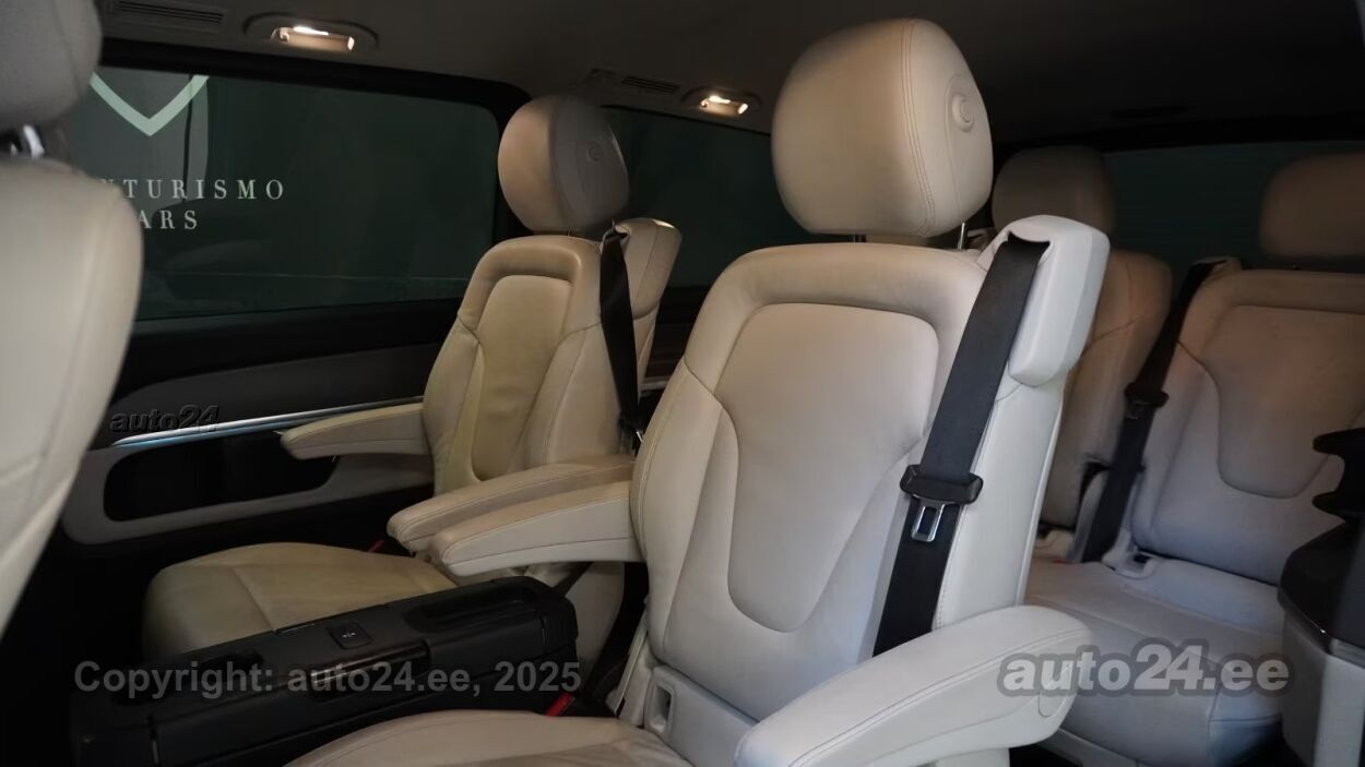 ° Lisavarustus: 2-istmerea vahel klapitav ja liigutatav laud, 360 kaamera, reasõidu abi, pimenurga andur, kärukonks, parkimis andurid ees/taga, 7 kohta, webasto äpiga, esimesed istmesoojendused, püsikiiruse hoidja, parkimis abiline, elektrilised küljeuksed, elektriline tagaluuk puldist, tagaistujate eraldi kliima, pikk kere 3200mm, liiklusmärgi lugemine, meeleolu valgustus, adaptiivne piduri tuli, adaptiivsed led esituled, 3-rea taga külje klaaside avamine elektriliselt, astmelauad külgedel.