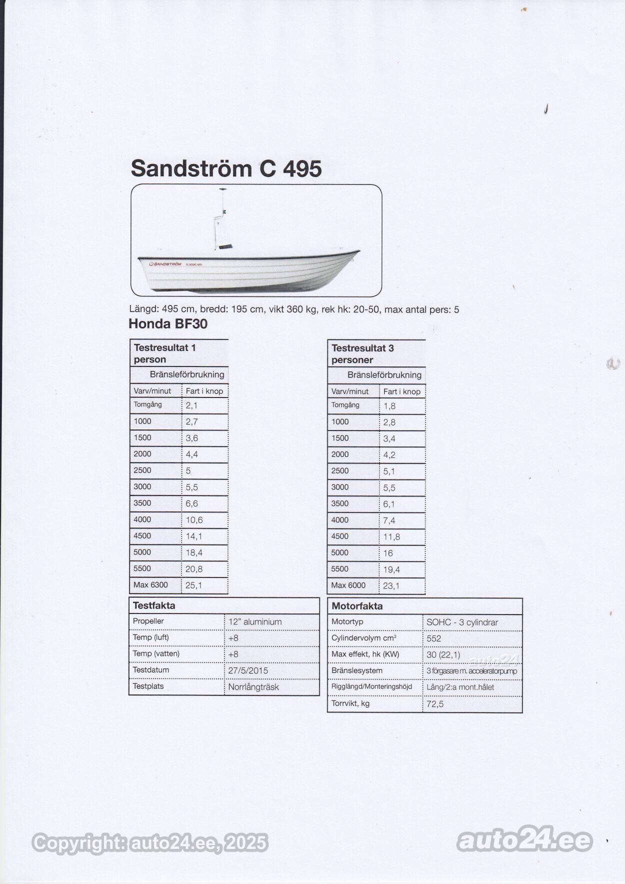 Sandström Classic 495S Tohatsu 30HP 4stroke EFI |