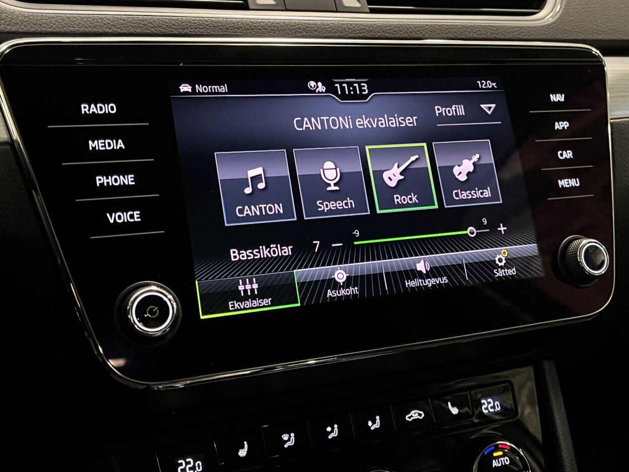 Audiosüsteem Canton: 6 kõlarit ees, 4 taga, 1 keskel armatuurlauas, 1 aktiivbassikõlar, digitaalne võimendi, koguvõimsus 610W,
