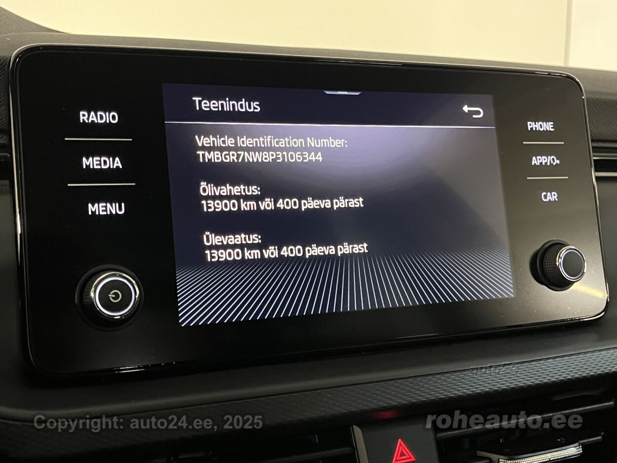 kliimaautomaatik, roolivõimendi, kesklukustus (puldiga), ABS pidurid, 6x turvapadi, turvakardinad, immobilisaator, signalisatsioon (kaldeanduriga, mahuanduriga), lisapidurituli, stabiilsuskontroll, Front Assist kokkupõrget ennetav pidurisüsteem, pidurdusjõukontroll, Lane Assist sõiduraja hoidmise abisüsteem, veojõukontroll, turvavööde eelpingutid esiistmetel, ISOFIX lasteistme kinnitus (taga), tulede korrektor, LED (tagatuled, päevatuled, lähituled, kaugtuled), päevasõidutulede automaatne lülitus, suverehvid, valuveljed (16"), rehvirõhu kontrollsüsteem, reguleeritav roolisammas (kõrgus ja sügavus), multifunktsionaalne rool, nahkkattega rool, stereo (USB pesaga, originaal), kõlarid, Apple CarPlay, Android Auto, ekraan (ees), autokompuuter, Bluetooth käed vabad süsteem, jalamatid, tekstiilpolster, istmed reguleeritava kõrgusega (kõrvalistuja iste, juhiiste), 2x istmesoojendused, käetugi ees, tagaistme seljatugi allaklapitav, elektrilised välispeeglid (soojendusega), 4x elektrilised akende tõstukid, toonitud klaasid, püsikiiruse hoidja, parkimisandurid (ees, taga), Coming-/Leaving-Home funktsioon, telefoni juhtmevaba laadimine, võtmeta avamine, võtmeta käivitus, start-stopp süsteem, 12v pistikupesad, pagasikate, katusereelingud, tagaklaasi soojendus, välistemperatuuri näidik, esi- ja tagarataste porikummid, tagaklaasi puhasti, SunSet: tumedaks toonitud (35%) aknad alates B-piilarist, Elektrilised aknatõstukid taga, komfortlülitusega, Parkimisandurid ees ja taga, 16" valuveljed SARGAS, rehvid 205/60 R16, KESSY - võtmeta avamis- ja käivitussüsteem koos alarmsüsteemiga, Ambition Comfort: kahetsooniline kliimaseade Climatronic (PHB), raadio Bolero (RAF), Wireless SmartLink (9WJ), telefoni juhtmeta laadimine Wireless Charging (PT1) |