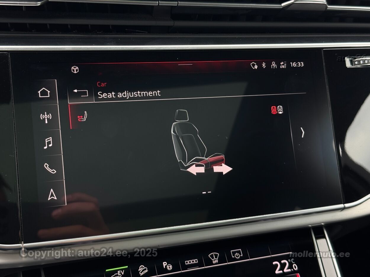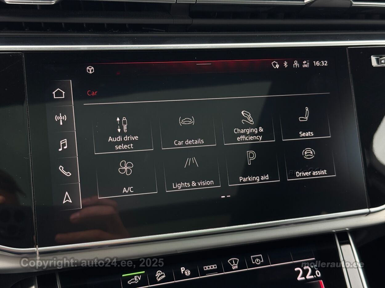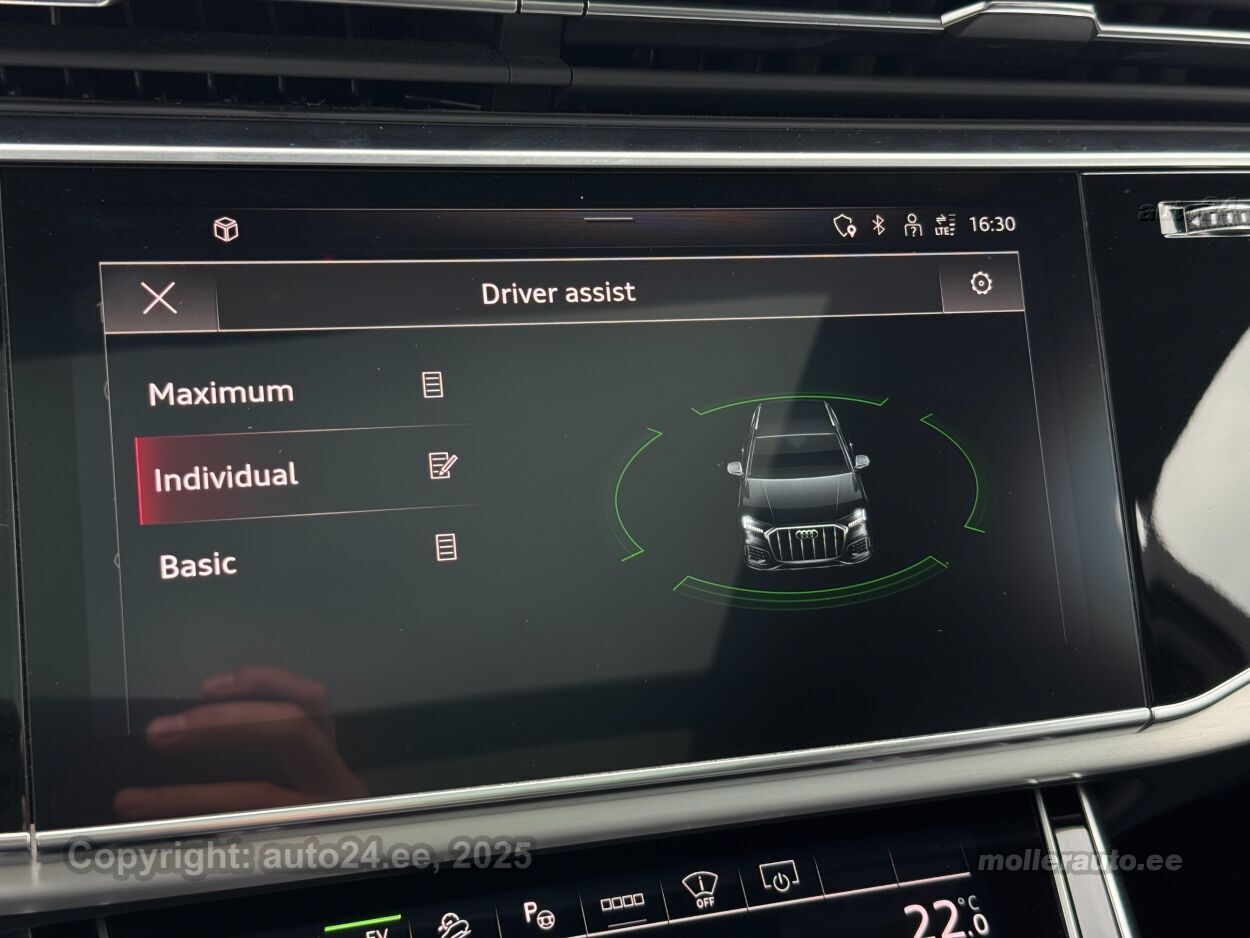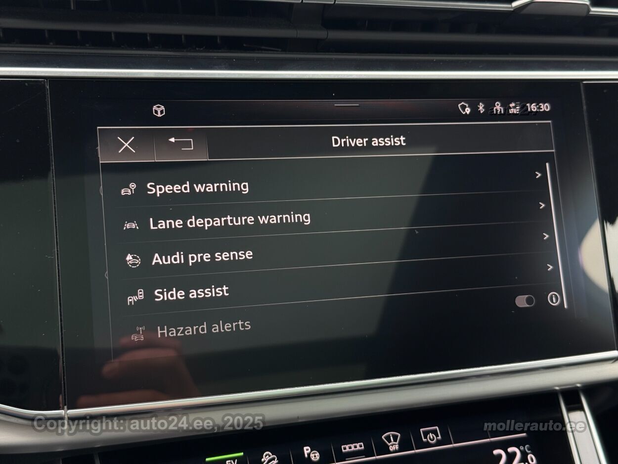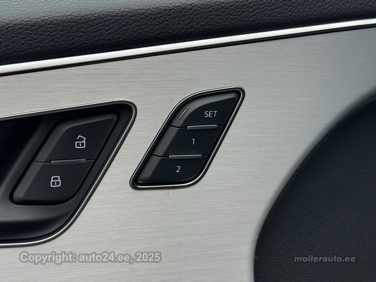 kliimaautomaatik, automaatpidurdussüsteem, roolivõimendi (kiirustundlik), kesklukustus (puldiga), ABS pidurid, turvapadi, elektrooniline seisupidur, turvakardinad, immobilisaator, signalisatsioon, lisapidurituli, stabiilsuskontroll, kokkupõrget ennetav pidurisüsteem, pidurdusjõukontroll, sõiduraja hoidmise abisüsteem, sõiduraja vahetamise abisüsteem, liiklusmärkide tuvastus ja kuvamine, pimenurga hoiatus, veojõukontroll, turvavööde eelpingutid esiistmetel, vihmasensor, ISOFIX lasteistme kinnitus (taga), automaatne paigalseismise funktsioon / mägistardi abi, kõrvalistuja turvapadja väljalülitamise võimalus, juhi väsimuse tuvastamise süsteem, udutuled (tagumine), LED (päevatuled, tagatuled, lähituled, kaugtuled), esitulede pesurid, päevasõidutulede automaatne lülitus, kaugtulede ümberlülitamise assistent, kurvituled, suverehvid, valuveljed (20, Audi), rehvirõhu kontrollsüsteem, reguleeritav roolisammas (kõrgus ja sügavus), multifunktsionaalne rool, nahkkattega rool, sportrool, käiguvahetus roolilt, stereo (USB pesaga, originaal), kõlarid, Apple CarPlay, Android Auto, ekraan (ees), navigatsiooniseade (kaardiga, hääljuhtimisega), autokompuuter, käed vabad süsteem, iluliistud salongis, taskud esiistmete seljatugedes, jalamatid (veluurist), topsihoidjad (ees, taga), nahkkattega käigukanginupp, tume laepolster, nahkpolster, 2x elektriliselt reguleeritavad istmed (1x mäludega), istmed reguleeritava kõrgusega (juhiiste, kõrvalistuja iste), istmesoojendused, reguleeritava kumerusega seljatugi (juhiiste, kõrvalistuja iste), käetugi ees (laekaga), käetugi taga, tagaistme seljatugi allaklapitav, elektrilised välispeeglid (soojendusega, kokkuklapitavad, mäluga), 4x elektrilised akende tõstukid, toonitud klaasid, katuseluuk (klaasist, elektriline), püsikiiruse hoidja, panoraamkatus (klaasist), 2x peeglid päikesesirmides (valgustusega), eraldi kliimaseade tagaistmetele, automaatselt tumenevad peeglid (sees, väljas), uste sisevalgustus, kohtvalgustid, parkimisandurid (ees, taga), automaatse parkimise funktsioon, parkimiskaamera (360), Coming-/Leaving-Home funktsioon, digitaalne näidikutepaneel, info kuvamine esiklaasile, telefoni juhtmevaba laadimine, spoileriring, võtmeta avamine, võtmeta käivitus, uste servosulgurid, reisiarvesti, 12v pistikupesad, õhkvedrustus, reguleeritav vedrustus (elektriliselt, jäikus, kõrgus), pakiruumi avamine elektriliselt (jalaviipega, puldist), pagasikate (automaatne), katusereelingud, veokonks (elektriline, teisaldatav), kaubakinnituse konksud, tagaklaasi soojendus, välistemperatuuri näidik, tagaklaasi puhasti |