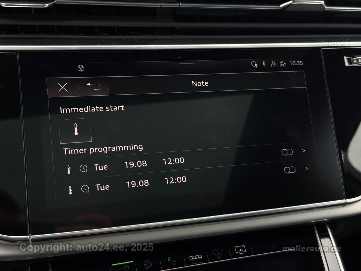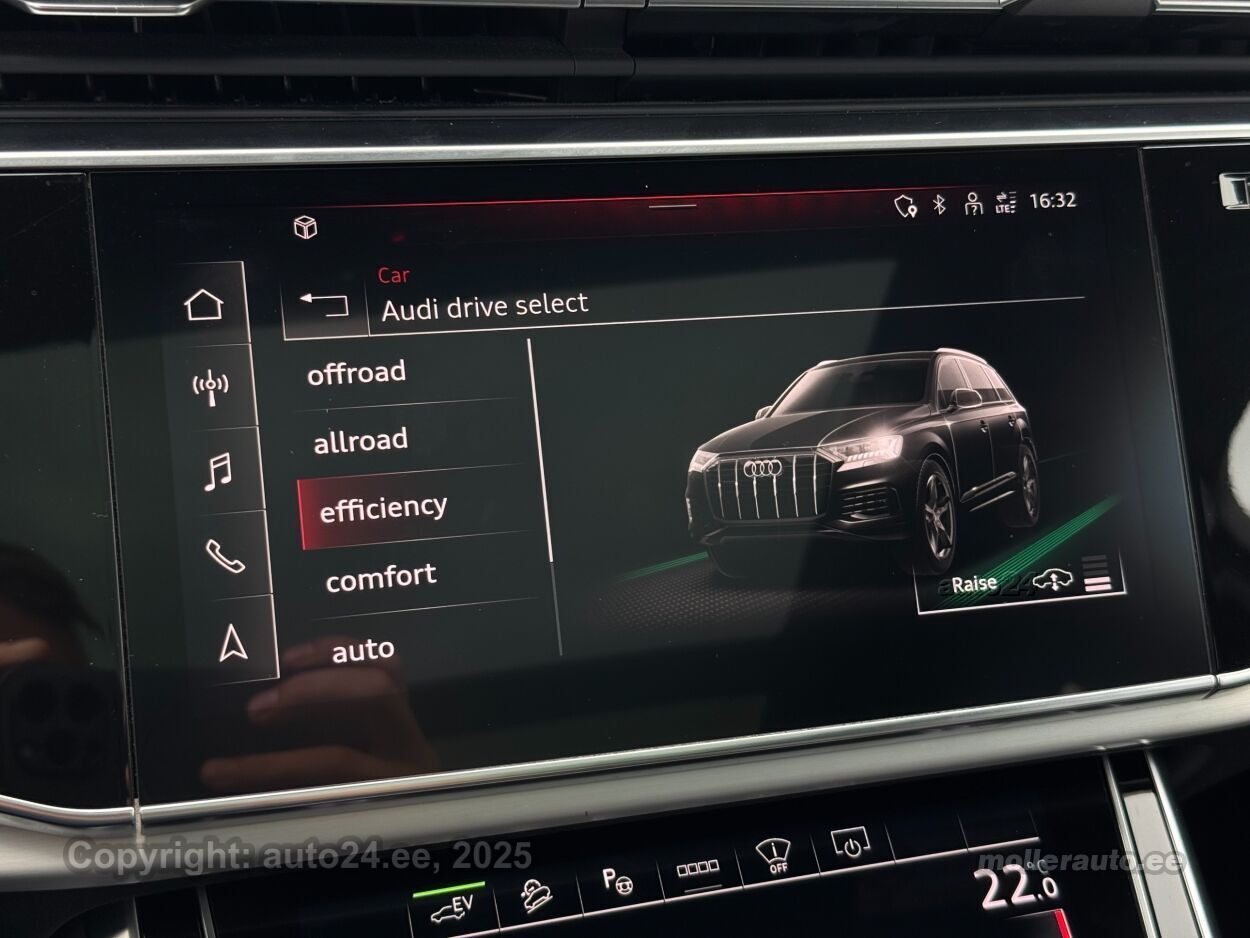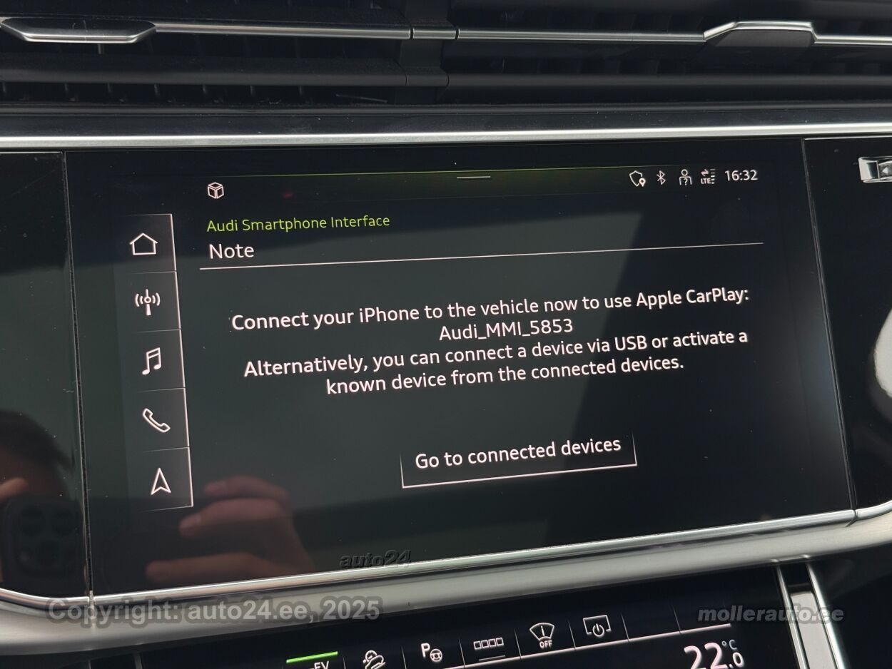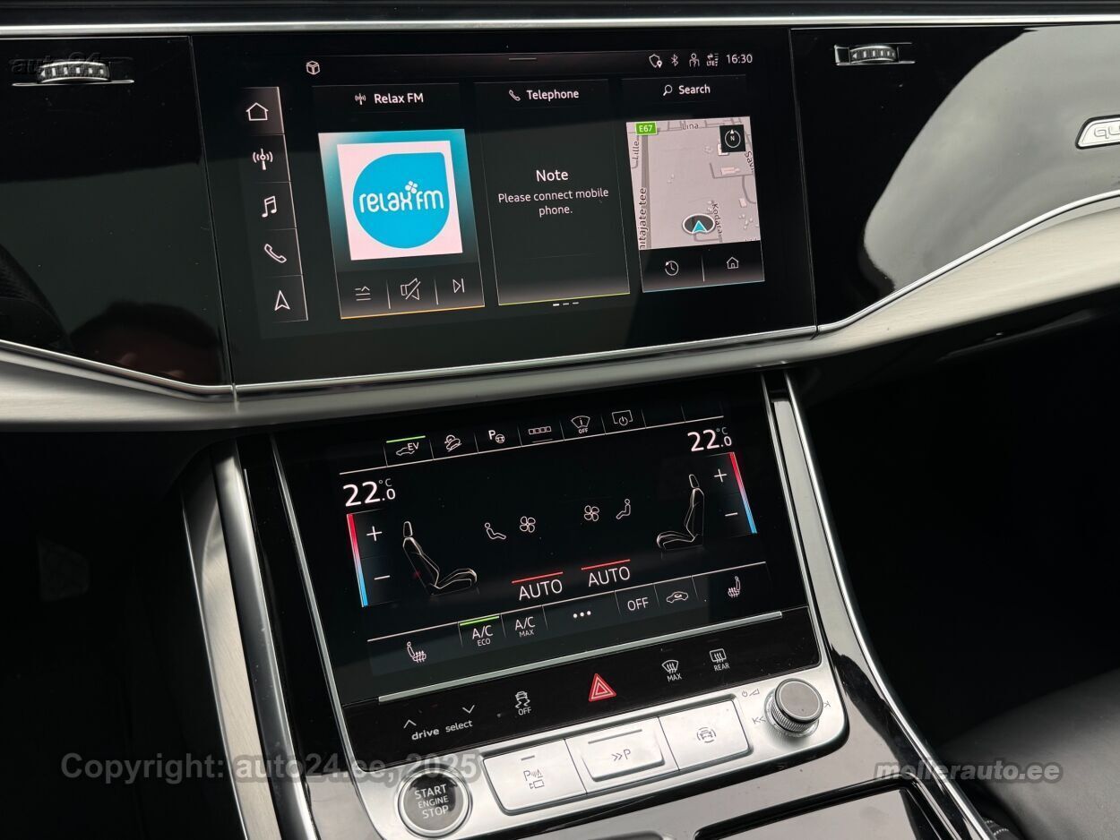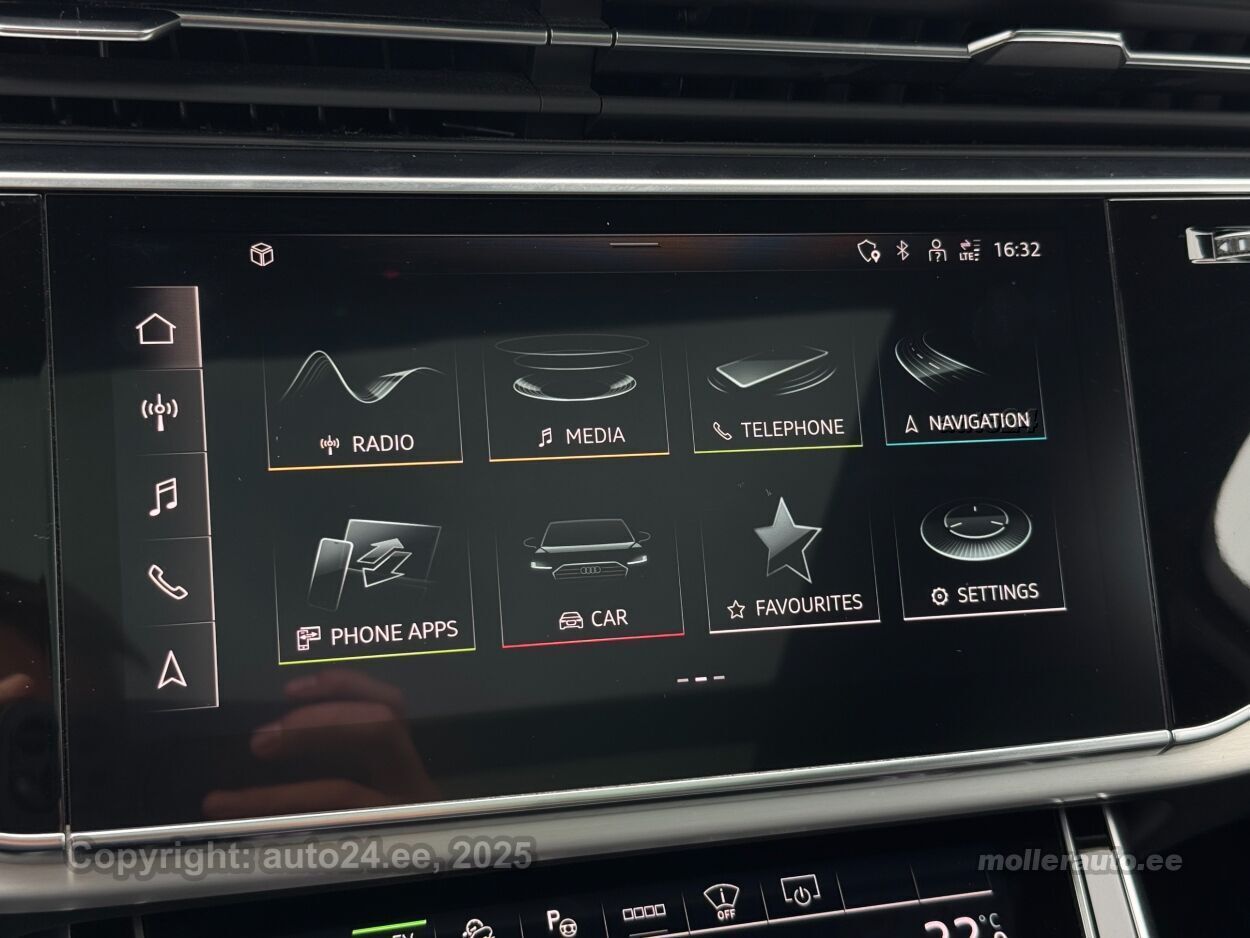 kliimaautomaatik, automaatpidurdussüsteem, roolivõimendi (kiirustundlik), kesklukustus (puldiga), ABS pidurid, turvapadi, elektrooniline seisupidur, turvakardinad, immobilisaator, signalisatsioon, lisapidurituli, stabiilsuskontroll, kokkupõrget ennetav pidurisüsteem, pidurdusjõukontroll, sõiduraja hoidmise abisüsteem, sõiduraja vahetamise abisüsteem, liiklusmärkide tuvastus ja kuvamine, pimenurga hoiatus, veojõukontroll, turvavööde eelpingutid esiistmetel, vihmasensor, ISOFIX lasteistme kinnitus (taga), automaatne paigalseismise funktsioon / mägistardi abi, kõrvalistuja turvapadja väljalülitamise võimalus, juhi väsimuse tuvastamise süsteem, udutuled (tagumine), LED (päevatuled, tagatuled, lähituled, kaugtuled), esitulede pesurid, päevasõidutulede automaatne lülitus, kaugtulede ümberlülitamise assistent, kurvituled, suverehvid, valuveljed (20, Audi), rehvirõhu kontrollsüsteem, reguleeritav roolisammas (kõrgus ja sügavus), multifunktsionaalne rool, nahkkattega rool, sportrool, käiguvahetus roolilt, stereo (USB pesaga, originaal), kõlarid, Apple CarPlay, Android Auto, ekraan (ees), navigatsiooniseade (kaardiga, hääljuhtimisega), autokompuuter, käed vabad süsteem, iluliistud salongis, taskud esiistmete seljatugedes, jalamatid (veluurist), topsihoidjad (ees, taga), nahkkattega käigukanginupp, tume laepolster, nahkpolster, 2x elektriliselt reguleeritavad istmed (1x mäludega), istmed reguleeritava kõrgusega (juhiiste, kõrvalistuja iste), istmesoojendused, reguleeritava kumerusega seljatugi (juhiiste, kõrvalistuja iste), käetugi ees (laekaga), käetugi taga, tagaistme seljatugi allaklapitav, elektrilised välispeeglid (soojendusega, kokkuklapitavad, mäluga), 4x elektrilised akende tõstukid, toonitud klaasid, katuseluuk (klaasist, elektriline), püsikiiruse hoidja, panoraamkatus (klaasist), 2x peeglid päikesesirmides (valgustusega), eraldi kliimaseade tagaistmetele, automaatselt tumenevad peeglid (sees, väljas), uste sisevalgustus, kohtvalgustid, parkimisandurid (ees, taga), automaatse parkimise funktsioon, parkimiskaamera (360), Coming-/Leaving-Home funktsioon, digitaalne näidikutepaneel, info kuvamine esiklaasile, telefoni juhtmevaba laadimine, spoileriring, võtmeta avamine, võtmeta käivitus, uste servosulgurid, reisiarvesti, 12v pistikupesad, õhkvedrustus, reguleeritav vedrustus (elektriliselt, jäikus, kõrgus), pakiruumi avamine elektriliselt (jalaviipega, puldist), pagasikate (automaatne), katusereelingud, veokonks (elektriline, teisaldatav), kaubakinnituse konksud, tagaklaasi soojendus, välistemperatuuri näidik, tagaklaasi puhasti |