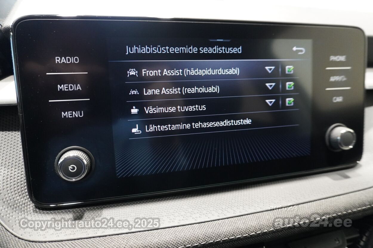 automaatpidurdussüsteem, kliimaautomaatik, roolivõimendi (kiirustundlik), kesklukustus (puldiga), ABS pidurid, turvapadi, immobilisaator, signalisatsioon (kaldeanduriga, mahuanduriga), lisapidurituli, stabiilsuskontroll, kokkupõrget ennetav pidurisüsteem, pidurdusjõukontroll, sõiduraja hoidmise abisüsteem, veojõukontroll, vihmasensor, ISOFIX lasteistme kinnitus (ees, taga), kõrvalistuja turvapadja väljalülitamise võimalus, juhi väsimuse tuvastamise süsteem, udutuled (eesmised, tagumine), LED (päevatuled, tagatuled), päevasõidutulede automaatne lülitus, suverehvid, valuveljed, autoga antakse kaasa (talverehvid (naastrehvid)), rehvirõhu kontrollsüsteem, reguleeritav roolisammas (kõrgus ja sügavus), multifunktsionaalne rool, nahkkattega rool, soojendusega rool, stereo (USB pesaga, originaal), kõlarid, Apple CarPlay, Android Auto, ekraan (ees), autokompuuter, käed vabad süsteem, iluliistud salongis, taskud esiistmete seljatugedes, jalamatid (tekstiilist), topsihoidjad (ees, taga), nahkkattega käigukanginupp, nahkkattega käsipidurikang, tekstiilpolster, istmed reguleeritava kõrgusega (juhiiste, kõrvalistuja iste), istmesoojendused, käetugi ees (laekaga), käetugi taga, tagaistme seljatugi allaklapitav, elektrilised välispeeglid (soojendusega), elektrilised akende tõstukid, toonitud klaasid, püsikiiruse hoidja, kohtvalgustid, parkimisandurid (taga), Coming-/Leaving-Home funktsioon, tagavararatas, võtmeta käivitus, start-stopp süsteem, 12v pistikupesad, reisiarvesti, pagasikate, tagaklaasi soojendus, välistemperatuuri näidik, esi- ja tagarataste porikummid, tagaklaasi puhasti |