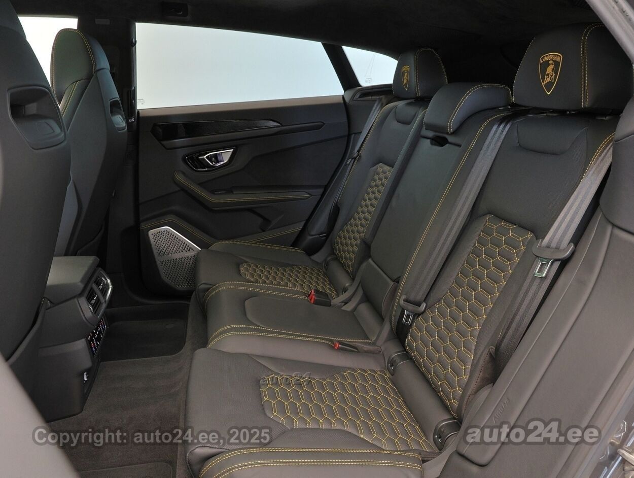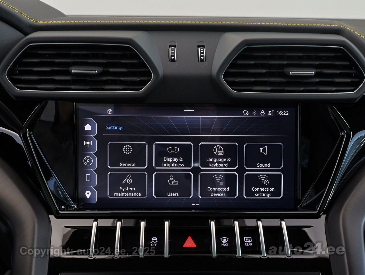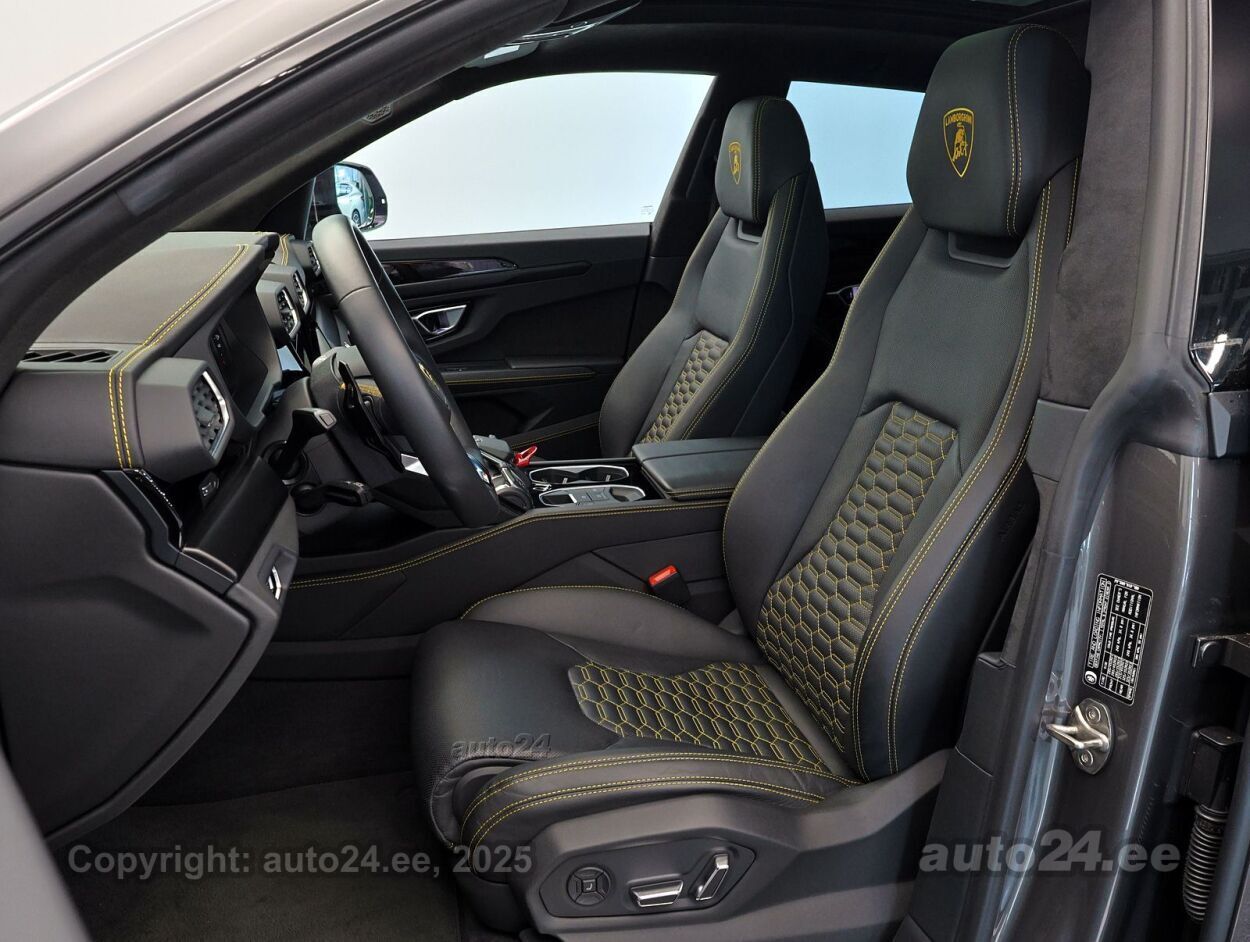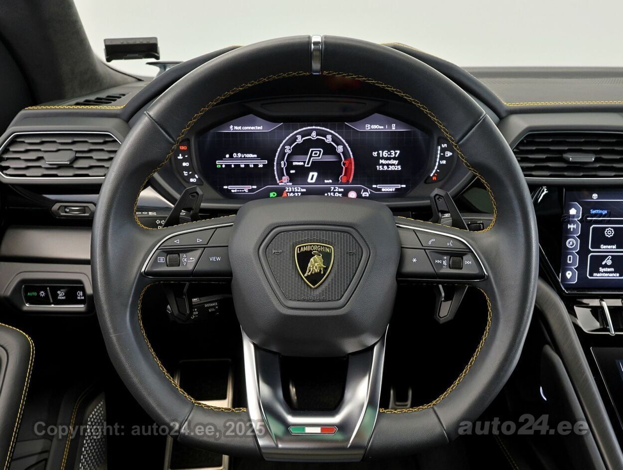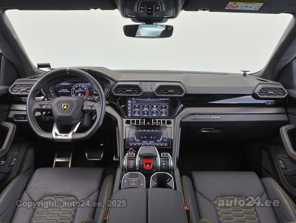 kliimaautomaatik, roolivõimendi, kesklukustus, ABS pidurid, elektrooniline seisupidur, signalisatsioon, stabiilsuskontroll, pidurdusjõukontroll, sõiduraja hoidmise abisüsteem, liiklusmärkide tuvastus ja kuvamine, veojõukontroll, vihmasensor, LED (tagatuled, päevatuled, lähituled, kaugtuled), päevasõidutulede automaatne lülitus, kaugtulede ümberlülitamise assistent, suverehvid, valuveljed, rehvirõhu kontrollsüsteem, reguleeritav roolisammas (kõrgus ja sügavus, elektriliselt, mäluga), soojendusega rool, käiguvahetus roolilt, stereo (originaal), Apple CarPlay, Android Auto, ekraan (ees), navigatsiooniseade, käed vabad süsteem, iluliistud salongis, jalamatid, topsihoidjad (ees, taga), tume laepolster, nahkpolster, elektriliselt reguleeritavad istmed (mäludega), reguleeritava kumerusega seljatugi (juhiiste, kõrvalistuja iste), istmesoojendused, massaažifunktsiooniga istmed (juhil, kõrvalistmel), ventileeritavad istmed (ees), elektrilised välispeeglid (soojendusega, kokkuklapitavad, mäluga), elektrilised akende tõstukid, püsikiiruse hoidja (eessõitjaga distantsi hoidev), panoraamkatus (klaasist), kohtvalgustid, parkimisandurid (ees, taga), parkimiskaamera (360), info kuvamine esiklaasile, telefoni juhtmevaba laadimine, sportsummuti, võtmeta avamine, võtmeta käivitus, uste servosulgurid, start-stopp süsteem, õhkvedrustus, reguleeritav vedrustus (kõrgus), pakiruumi avamine elektriliselt (puldist, jalaviipega), veokonks (teisaldatav), elektrilise soojendusega esiklaas, Akrapovic väljalaskesüsteem, Elektriajamiga haakeseade, Soojust peegeldav soojendusega esiklaas, Tumendatud, müra- ja soojusisolatsiooniga klaasid, 3D-helisüsteem Bang & Olufsen, Integreeritud pihustitega klaasipuhastiharjad, Q-Citura õmblused nahkinterjöörile, Tikitud Lamborghini vapp peatoel, 23" säravmustad veljed Taigete, Süsinikkeraamilised pidurid koos kollaste pidurisadulatega, Läikivmust stiilipakett koos eesmise splitteriga |