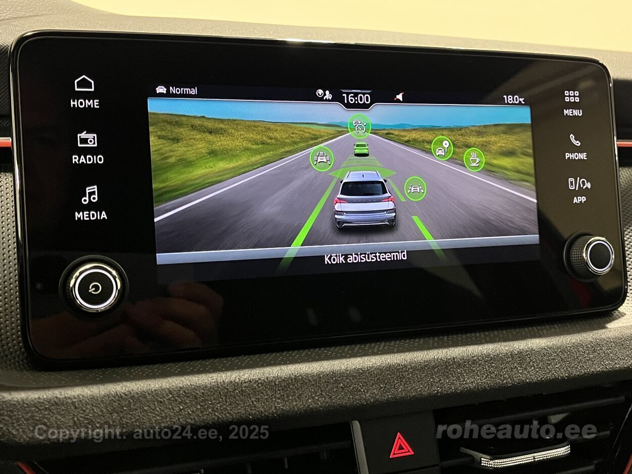kliimaautomaatik, roolivõimendi, kesklukustus (puldiga), ABS pidurid, elektrooniline seisupidur, 6x turvapadi, turvakardinad, immobilisaator, signalisatsioon (kaldeanduriga, mahuanduriga), lisapidurituli, Front Assist kokkupõrget ennetav pidurisüsteem, stabiilsuskontroll, pidurdusjõukontroll, Lane Assist sõiduraja hoidmise abisüsteem, veojõukontroll, turvavööde eelpingutid esiistmetel, vihmasensor, ISOFIX lasteistme kinnitus (taga), kõrvalistuja turvapadja väljalülitamise võimalus, juhi väsimuse tuvastamise süsteem, udutuled, LED (tagatuled, päevatuled, lähituled, kaugtuled), päevasõidutulede automaatne lülitus, suverehvid, valuveljed, autoga antakse kaasa (talverehvid), rehvirõhu kontrollsüsteem, reguleeritav roolisammas (kõrgus ja sügavus), multifunktsionaalne rool, nahkkattega rool, soojendusega rool, käiguvahetus roolilt, stereo (USB pesaga, originaal), kõlarid, Apple CarPlay, Android Auto, ekraan (ees), autokompuuter, Bluetooth käed vabad süsteem, iluliistud salongis, jalamatid, tekstiilpolster, istmed reguleeritava kõrgusega (kõrvalistuja iste, juhiiste), 2x istmesoojendused, käetugi ees (laekaga), käetugi taga, tagaistme seljatugi allaklapitav, sportistmed, elektrilised välispeeglid (soojendusega), 4x elektrilised akende tõstukid, toonitud klaasid, püsikiiruse hoidja (eessõitjaga distantsi hoidev), automaatselt tumenevad peeglid (sees), parkimisandurid (ees, taga), parkimiskaamera, Coming-/Leaving-Home funktsioon, digitaalne näidikutepaneel, võtmeta avamine, võtmeta käivitus, start-stopp süsteem, 12v pistikupesad, pakiruumi avamine elektriliselt (puldist), pagasikate, Hõbedased katusereelingud, tagaklaasi soojendus, välistemperatuuri näidik, esi- ja tagarataste porikummid, tagaklaasi puhasti, Assisted Drive: adaptiivne Lane Assist ja adaptiivne kiirushoidik, Simply Clever Plus: pagasikinnitusvõrgud, panipaik pagasiruumi katte all, 12 V pistik, ukseserva kaitse, sahtlid esiistmete all, tahvelarvuti hoidik, pakiruumi matt (tekstiil/kumm), prügikast uksetaskus, 3-kodaraga soojendusega sportlik nahkrool, käiguvahetuslabad DSG -automaatkäigukastile, Pakett Convenience Plus: KESSY, Driving Mode Selection, parkimisandurid ees, tagurduskaamera, el. avatav ja suletav tagaluuk, digitaalne näidikupaneel 10", Interjöör Dynamic: sportistmed ees Suedia/tekstiil, metallkattega pedaalid, multifunktsionaalne sportrool, punast värvi dekoratiivliistud, punased LED-valgusribad, musta värvi salongilagi, kokkuklapitav tagaistme käetugi, läveliistud ees, |