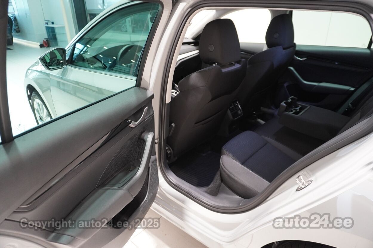 kliimaautomaatik, automaatpidurdussüsteem, roolivõimendi (kiirustundlik), kesklukustus (puldiga), ABS pidurid, elektrooniline seisupidur, turvapadi, turvakardinad, immobilisaator, signalisatsioon (kaldeanduriga, mahuanduriga), lisapidurituli, stabiilsuskontroll, kokkupõrget ennetav pidurisüsteem, pidurdusjõukontroll, sõiduraja hoidmise abisüsteem, liiklusmärkide tuvastus ja kuvamine, veojõukontroll, vihmasensor, ISOFIX lasteistme kinnitus (ees, taga), automaatne paigalseismise funktsioon / mägistardi abi, kõrvalistuja turvapadja väljalülitamise võimalus, juhi väsimuse tuvastamise süsteem, udutuled (tagumine), LED (päevatuled, tagatuled, lähituled, kaugtuled), päevasõidutulede automaatne lülitus, kaugtulede ümberlülitamise assistent, suverehvid, valuveljed, rehvirõhu kontrollsüsteem, reguleeritav roolisammas (kõrgus ja sügavus), multifunktsionaalne rool, nahkkattega rool, soojendusega rool, käiguvahetus roolilt, stereo (USB pesaga, originaal), kõlarid, Apple CarPlay, Android Auto, ekraan (ees), autokompuuter, käed vabad süsteem, iluliistud salongis, taskud esiistmete seljatugedes, jalamatid (tekstiilist, kummist), topsihoidjad (ees, taga), tekstiilpolster, istmed reguleeritava kõrgusega (juhiiste, kõrvalistuja iste), istmesoojendused, käetugi ees (laekaga), käetugi taga, tagaistme seljatugi allaklapitav, elektrilised välispeeglid (soojendusega, kokkuklapitavad), elektrilised akende tõstukid, toonitud klaasid, püsikiiruse hoidja, peeglid päikesesirmides, kohtvalgustid, parkimisandurid (ees, taga), parkimiskaamera, Coming-/Leaving-Home funktsioon, digitaalne näidikutepaneel, tagavararatas, võtmeta avamine, võtmeta käivitus, start-stopp süsteem, 12v pistikupesad, reisiarvesti, pakiruumi avamine elektriliselt (puldist), pagasikate, katusereelingud, kaubakinnituse konksud, elektrilise soojendusega esiklaas, tagaklaasi soojendus, välistemperatuuri näidik, esi- ja tagarataste porikummid, tagaklaasi puhasti, 17" valuveljed Mensa Aero, rehvid 205/55 R17, Varuratas terasveljel, rehv 205/60 R16, 2-kodaraga soojendusega nahkrool raadio ja telefoni juhtimise ning DSG käiguvahetusega roolilt, Soojendusega esiklaas (integreeritud soojenduskile), Tagastange kaitsekleebis, Täis kütusepaak |