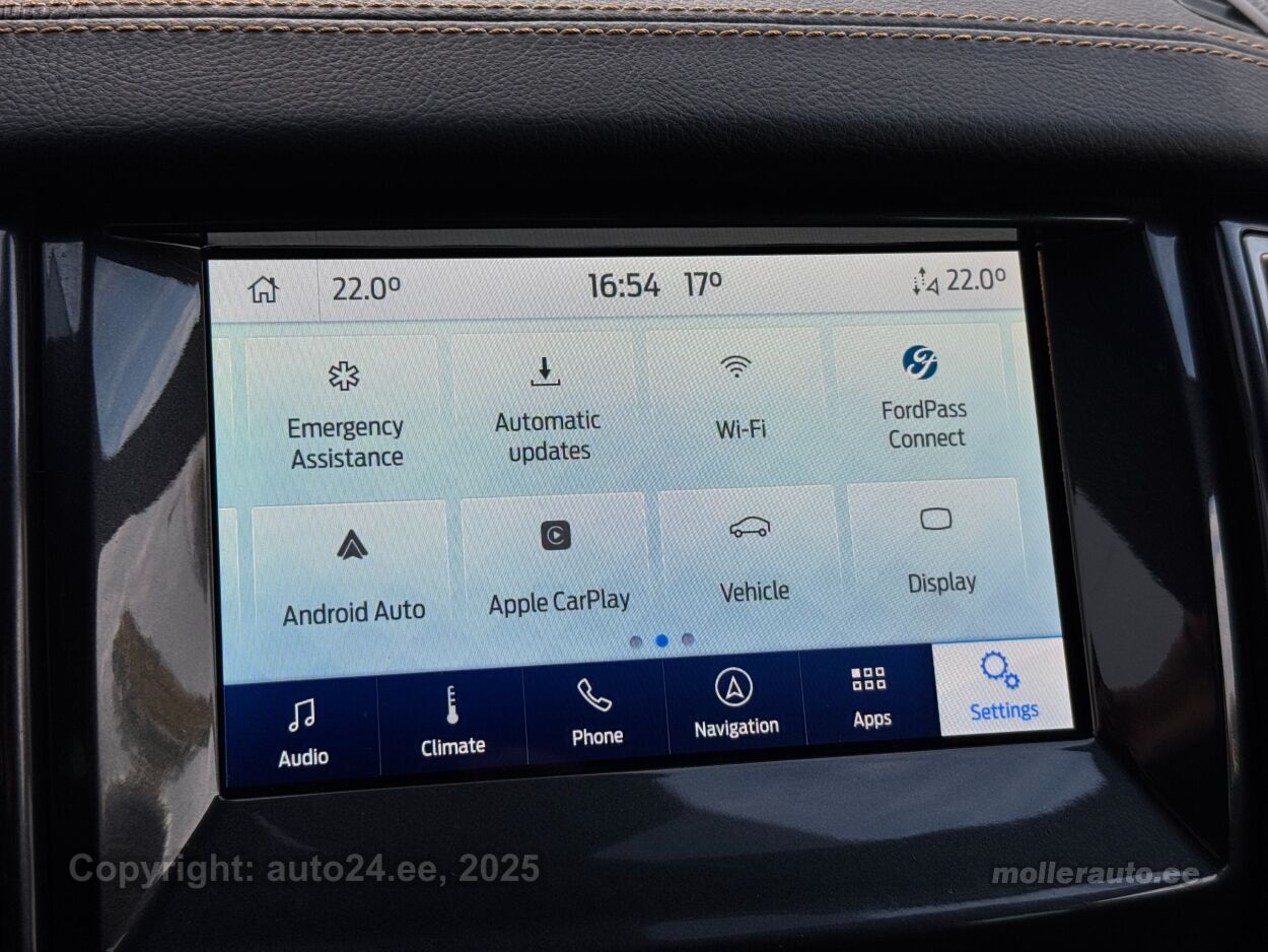 kliimaautomaatik, roolivõimendi, kesklukustus (puldiga), ABS pidurid, 4x turvapadi, turvakardinad, immobilisaator, lisapidurituli, stabiilsuskontroll, kokkupõrget ennetav pidurisüsteem, pidurdusjõukontroll, liiklusmärkide tuvastus ja kuvamine, veojõukontroll, vihmasensor, ISOFIX lasteistme kinnitus (taga), automaatne paigalseismise funktsioon / mägistardi abi, valgustuspakett, udutuled (eesmised, tagumine), LED (tagatuled, päevatuled, lähituled, kaugtuled), päevasõidutulede automaatne lülitus, kaugtulede ümberlülitamise assistent, talverehvid (lamellrehvid), valuveljed (18, Ford), rehvirõhu kontrollsüsteem, reguleeritav roolisammas (kõrgus ja sügavus), multifunktsionaalne rool, nahkkattega rool, stereo (USB pesaga, originaal), Apple CarPlay, Android Auto, ekraan (ees), navigatsiooniseade (kaardiga), autokompuuter, käed vabad süsteem, iluliistud salongis, jalamatid (veluurist), topsihoidjad (ees), nahkkattega käigukanginupp, tume laepolster, nahkpolster, 1x elektriliselt reguleeritavad istmed, istmed reguleeritava kõrgusega (juhiiste), 2x istmesoojendused, reguleeritava kumerusega seljatugi (juhiiste), käetugi ees (laekaga), käetugi taga, elektrilised välispeeglid (soojendusega, kokkuklapitavad), 4x elektrilised akende tõstukid, toonitud klaasid, püsikiiruse hoidja (eessõitjaga distantsi hoidev), automaatselt tumenevad peeglid (sees), kohtvalgustid, automaatse parkimise funktsioon, parkimisandurid (ees, taga), parkimiskaamera, tagavararatas, võtmeta avamine, võtmeta käivitus, start-stopp süsteem, 12v pistikupesad, reisiarvesti, pagasikate, veokonks, elektrilise soojendusega esiklaas, tagaklaasi soojendus, välistemperatuuri näidik, esi- ja tagarataste porikummid |