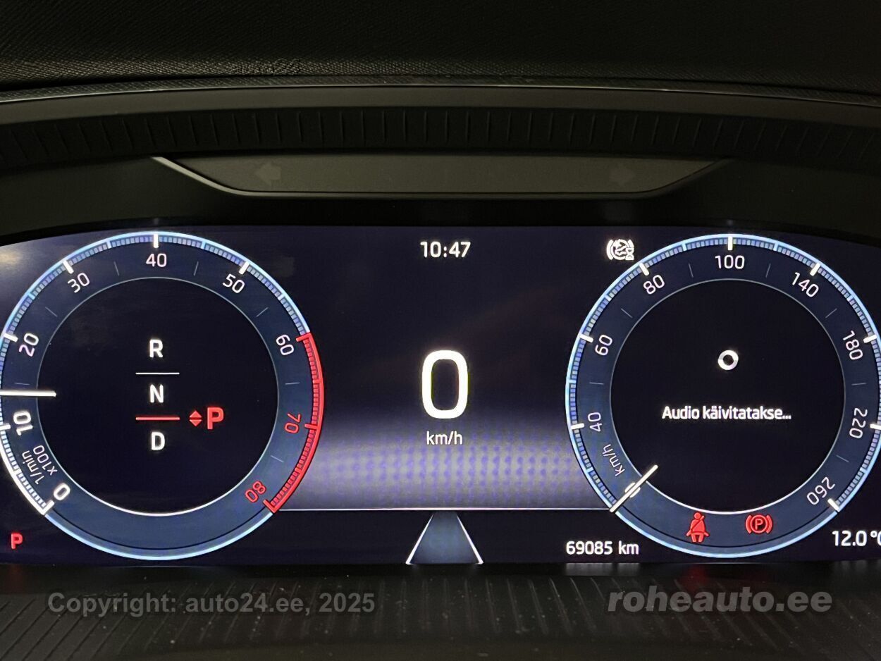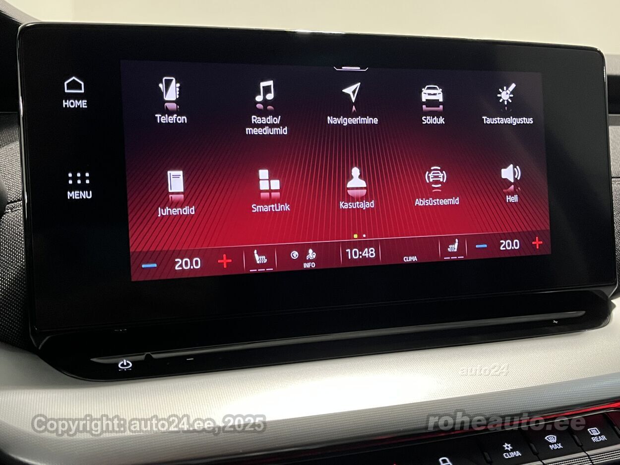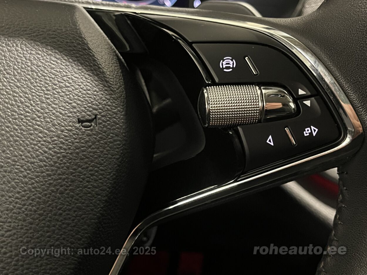 kliimaautomaatik, roolivõimendi, kesklukustus (puldiga), ABS pidurid, elektrooniline seisupidur, 6x turvapadi, turvakardinad, immobilisaator, signalisatsioon (kaldeanduriga, mahuanduriga), lisapidurituli, Front Assist kokkupõrget ennetav pidurisüsteem, stabiilsuskontroll, pidurdusjõukontroll, Lane Assist sõiduraja hoidmise abisüsteem, veojõukontroll, turvavööde eelpingutid esiistmetel, vihmasensor, ISOFIX lasteistme kinnitus (ees, taga), kõrvalistuja turvapadja väljalülitamise võimalus, udutuled, tulede korrektor, LED (päevatuled, tagatuled, lähituled, kaugtuled), päevasõidutulede automaatne lülitus, suverehvid, valuveljed (17"), autoga antakse kaasa (talverehvid (lamellrehvid)), rehvirõhu kontrollsüsteem, reguleeritav roolisammas (kõrgus ja sügavus), multifunktsionaalne rool, nahkkattega rool, käiguvahetus roolilt, stereo (USB pesaga, originaal), kõlarid, Apple CarPlay, Android Auto, ekraan (ees), autokompuuter, Bluetooth käed vabad süsteem, iluliistud salongis, jalamatid (kummist, veluurist), topsihoidjad (ees, taga), tekstiilpolster, istmed reguleeritava kõrgusega (kõrvalistuja iste, juhiiste), 2x istmesoojendused, käetugi ees (laekaga), käetugi taga, tagaistme seljatugi allaklapitav, elektrilised välispeeglid (soojendusega, kokkuklapitavad), 4x elektrilised akende tõstukid, toonitud klaasid, püsikiiruse hoidja (eessõitjaga distantsi hoidev), automaatselt tumenevad peeglid (sees, väljas), parkimisandurid (ees, taga), parkimiskaamera, Coming-/Leaving-Home funktsioon, digitaalne näidikutepaneel, võtmeta avamine, võtmeta käivitus, start-stopp süsteem, 12v pistikupesad, pakiruumi avamine elektriliselt (puldist), pagasikate, katusereelingud, tagaklaasi soojendus, välistemperatuuri näidik, esi- ja tagarataste porikummid, tagaklaasi puhasti, Adaptiivne püsikiirushoidik: säilitab eesliikujaga valitud pikivahet, vastavalt kiirendades või pidurdades (kuni seismajäämiseni), aktiivne kiiruseni 210 km/h, Lisagarantii, 1 aasta / 30 000 km (garantiiperiood kokku 5 aastat / 150 000 km) |