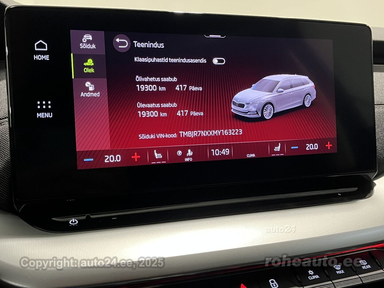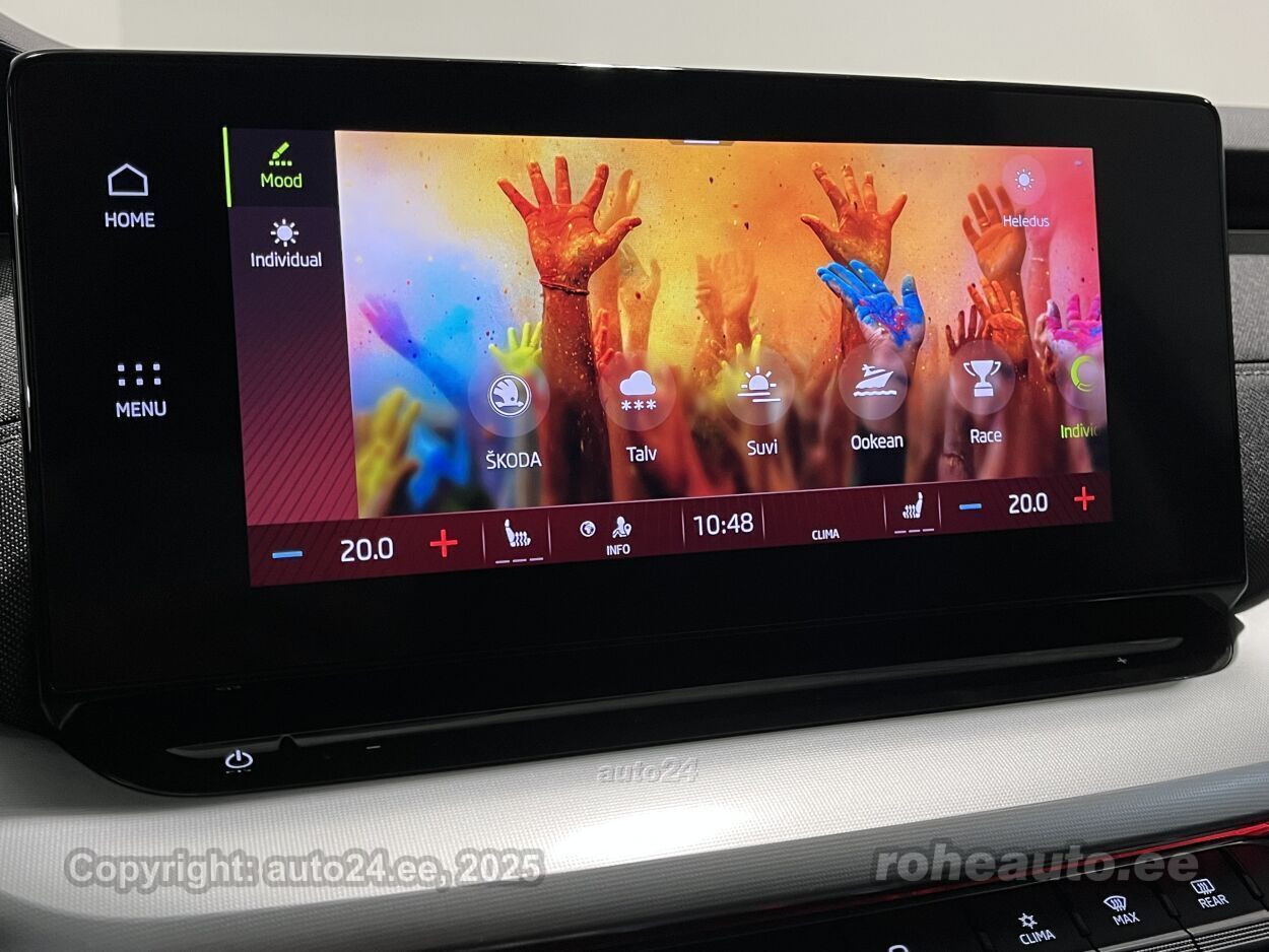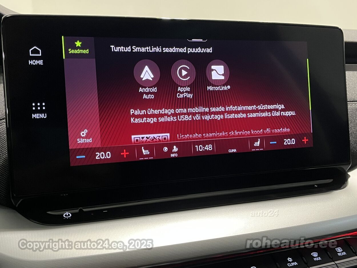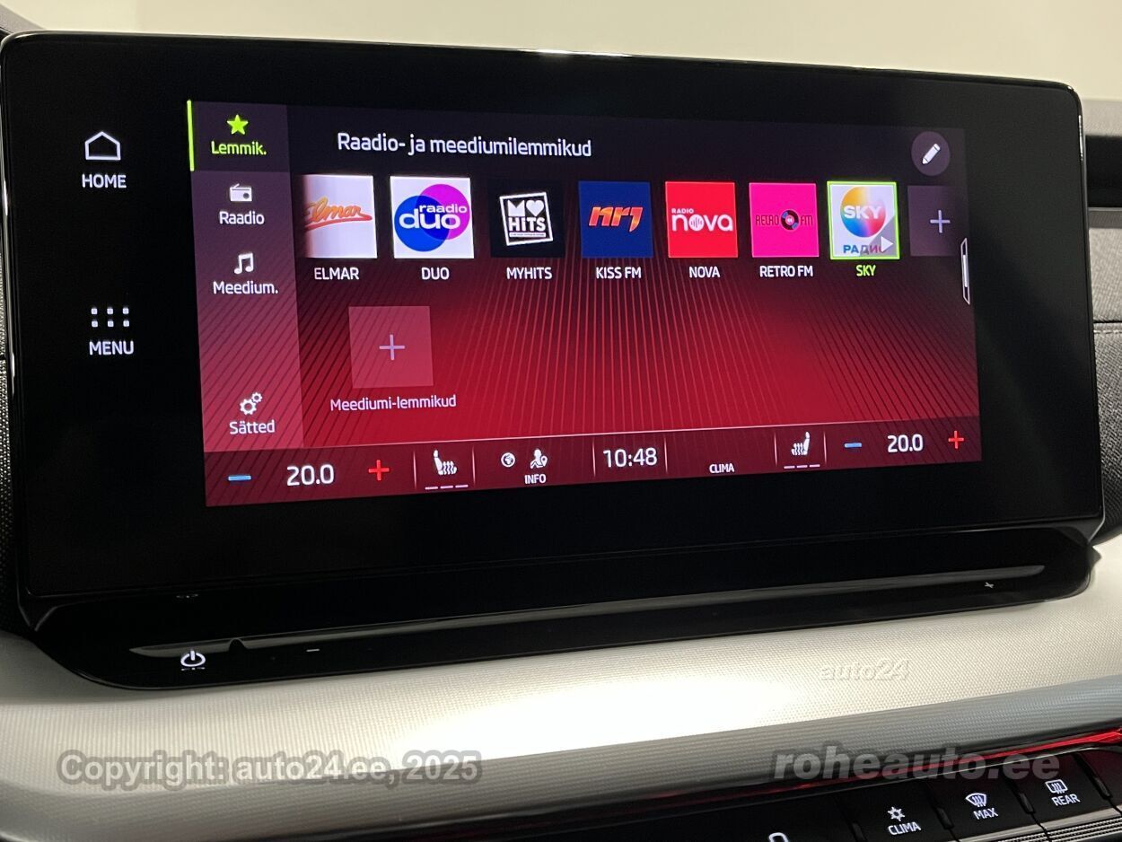 kliimaautomaatik, roolivõimendi, kesklukustus (puldiga), ABS pidurid, elektrooniline seisupidur, 6x turvapadi, turvakardinad, immobilisaator, signalisatsioon (kaldeanduriga, mahuanduriga), lisapidurituli, Front Assist kokkupõrget ennetav pidurisüsteem, stabiilsuskontroll, pidurdusjõukontroll, Lane Assist sõiduraja hoidmise abisüsteem, veojõukontroll, turvavööde eelpingutid esiistmetel, vihmasensor, ISOFIX lasteistme kinnitus (ees, taga), kõrvalistuja turvapadja väljalülitamise võimalus, udutuled, tulede korrektor, LED (päevatuled, tagatuled, lähituled, kaugtuled), päevasõidutulede automaatne lülitus, suverehvid, valuveljed (17"), autoga antakse kaasa (talverehvid (lamellrehvid)), rehvirõhu kontrollsüsteem, reguleeritav roolisammas (kõrgus ja sügavus), multifunktsionaalne rool, nahkkattega rool, käiguvahetus roolilt, stereo (USB pesaga, originaal), kõlarid, Apple CarPlay, Android Auto, ekraan (ees), autokompuuter, Bluetooth käed vabad süsteem, iluliistud salongis, jalamatid (kummist, veluurist), topsihoidjad (ees, taga), tekstiilpolster, istmed reguleeritava kõrgusega (kõrvalistuja iste, juhiiste), 2x istmesoojendused, käetugi ees (laekaga), käetugi taga, tagaistme seljatugi allaklapitav, elektrilised välispeeglid (soojendusega, kokkuklapitavad), 4x elektrilised akende tõstukid, toonitud klaasid, püsikiiruse hoidja (eessõitjaga distantsi hoidev), automaatselt tumenevad peeglid (sees, väljas), parkimisandurid (ees, taga), parkimiskaamera, Coming-/Leaving-Home funktsioon, digitaalne näidikutepaneel, võtmeta avamine, võtmeta käivitus, start-stopp süsteem, 12v pistikupesad, pakiruumi avamine elektriliselt (puldist), pagasikate, katusereelingud, tagaklaasi soojendus, välistemperatuuri näidik, esi- ja tagarataste porikummid, tagaklaasi puhasti, Adaptiivne püsikiirushoidik: säilitab eesliikujaga valitud pikivahet, vastavalt kiirendades või pidurdades (kuni seismajäämiseni), aktiivne kiiruseni 210 km/h, Lisagarantii, 1 aasta / 30 000 km (garantiiperiood kokku 5 aastat / 150 000 km) |