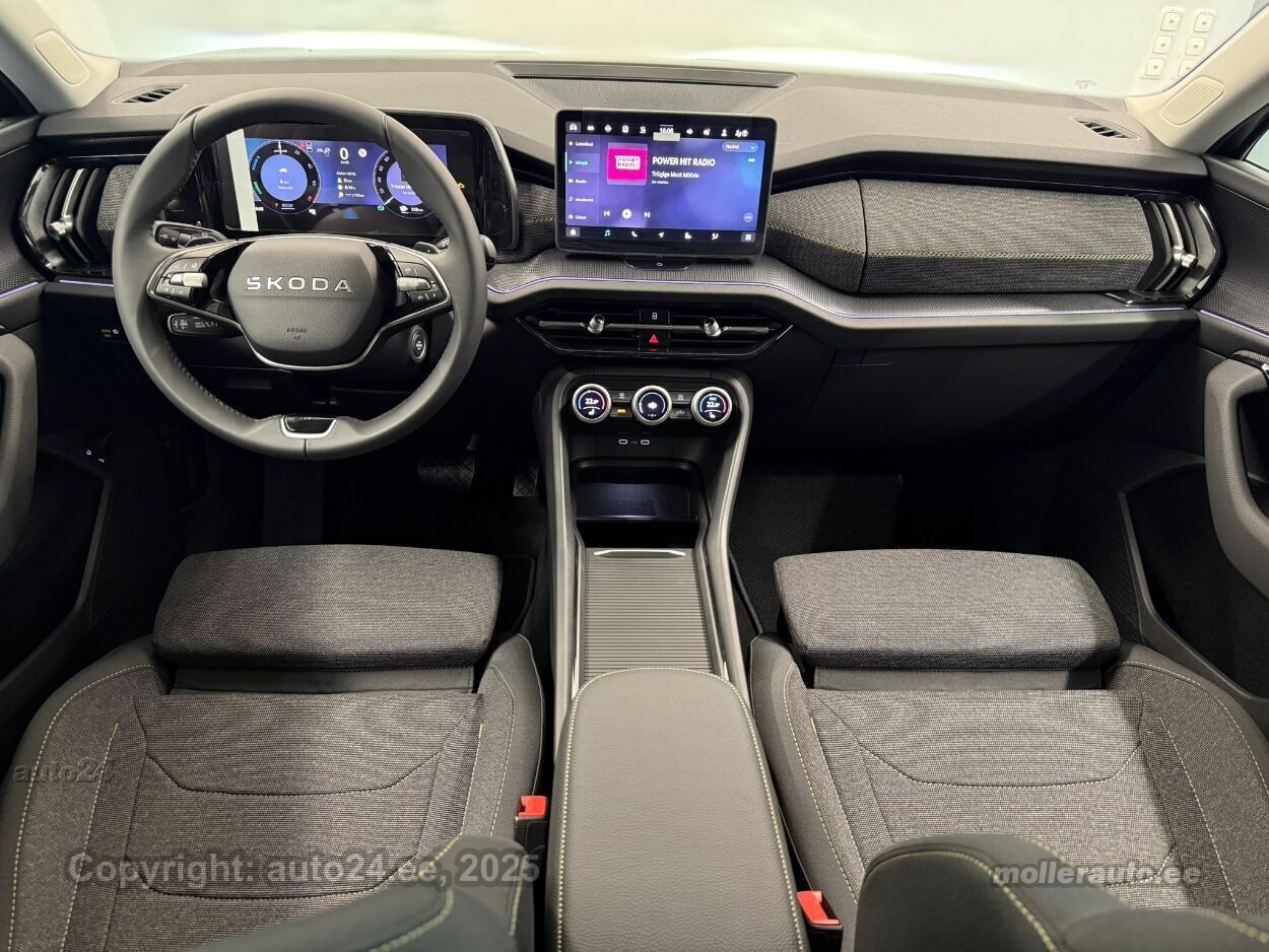 kliimaautomaatik, automaatpidurdussüsteem, roolivõimendi, kesklukustus, ABS pidurid, elektrooniline seisupidur, turvapadi, turvakardinad, immobilisaator, signalisatsioon, lisapidurituli, kokkupõrget ennetav pidurisüsteem, stabiilsuskontroll, pidurdusjõukontroll, sõiduraja hoidmise abisüsteem, liiklusmärkide tuvastus ja kuvamine, pimenurga hoiatus, veojõukontroll, turvavööde eelpingutid esiistmetel, vihmasensor, ISOFIX lasteistme kinnitus (ees, taga), automaatne paigalseismise funktsioon / mägistardi abi, kõrvalistuja turvapadja väljalülitamise võimalus, juhi väsimuse tuvastamise süsteem, valgustuspakett, LED (päevatuled, tagatuled, lähituled, kaugtuled), päevasõidutulede automaatne lülitus, kaugtulede ümberlülitamise assistent, suverehvid, valuveljed, reguleeritav roolisammas (kõrgus ja sügavus), multifunktsionaalne rool, nahkkattega rool, soojendusega rool, käiguvahetus roolilt, kõlarid, Apple CarPlay, Android Auto, ekraan (ees), käed vabad süsteem, iluliistud salongis, taskud esiistmete seljatugedes, jalamatid (tekstiilist, kummist), topsihoidjad (ees, taga), tekstiilpolster, 1x elektriliselt reguleeritavad istmed (1x mäludega), istmed reguleeritava kõrgusega (juhiiste, kõrvalistuja iste), 4x istmesoojendused, reguleeritava kumerusega seljatugi (juhiiste, kõrvalistuja iste), käetugi ees (laekaga), käetugi taga, tagaistme seljatugi allaklapitav, Comfort istmed, elektrilised välispeeglid (soojendusega, kokkuklapitavad), elektrilised akende tõstukid, toonitud klaasid, püsikiiruse hoidja (eessõitjaga distantsi hoidev), peeglid päikesesirmides (valgustusega), salongi eelsoojendus, eraldi kliimaseade tagaistmetele, automaatselt tumenevad peeglid, uste sisevalgustus, kohtvalgustid, parkimisandurid (ees, taga), parkimiskaamera, Coming-/Leaving-Home funktsioon, digitaalne näidikutepaneel, telefoni juhtmevaba laadimine, võtmeta avamine, võtmeta käivitus, start-stopp süsteem, 12v pistikupesad, paigaldatud tulekustuti, pakiruumi avamine elektriliselt (puldist), pagasikate, katusereelingud, kaubakinnituse konksud, elektrilise soojendusega esiklaas, tagaklaasi soojendus, välistemperatuuri näidik, tagaklaasi puhasti, Maatriks LED esituled, Ettevalmistus haagisekonksu paigaldamiseks (ilma tootjapoolse ettevalmistuseta ei ole hilisem konksu paigaldamine võimalik), Soojendusega esiklaas, Laadimiskaabel ühefaasilisele ühendusele (230 V), Täiendava mürasummutusega esimesed külgaknad, 18" valuveljed Soira, antratsiithallid/poleeritud, rehvid 235/55 R18, Horisontaalne LED-valgusriba iluvõres, kroomitud iluvõre ribid, Pakett Winter: soojendusega tagumised (äärmised) istmed, 2 kodaraga multifunktsionaalne soojendusega nahkrool |