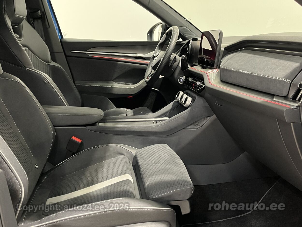 kliimaautomaatik, roolivõimendi, kesklukustus (puldiga), ABS pidurid, elektrooniline seisupidur, 6x turvapadi, turvakardinad, immobilisaator, signalisatsioon (kaldeanduriga, mahuanduriga), lisapidurituli, Front Assist kokkupõrget ennetav pidurisüsteem, stabiilsuskontroll, pidurdusjõukontroll, Lane Assist sõiduraja hoidmise abisüsteem, sõiduraja vahetamise abisüsteem, liiklusmärkide tuvastus ja kuvamine, veojõukontroll, turvavööde eelpingutid esiistmetel, vihmasensor, ISOFIX lasteistme kinnitus (taga), kõrvalistuja turvapadja väljalülitamise võimalus, juhi väsimuse tuvastamise süsteem, udutuled, LED (tagatuled, päevatuled, lähituled, kaugtuled), päevasõidutulede automaatne lülitus, kurvituled, suverehvid, valuveljed (20"), rehvirõhu kontrollsüsteem, reguleeritav roolisammas (kõrgus ja sügavus), multifunktsionaalne rool, nahkkattega rool, sportrool, soojendusega rool, stereo (USB pesaga, mälukaardi pesaga, originaal), kõlarid, Apple CarPlay, Android Auto, ekraan (ees), autokompuuter, Bluetooth käed vabad süsteem, iluliistud salongis, jalamatid, tume laepolster, Interjöör SportLine: must nahk/Suedia poolnahkpolster, 1x elektriliselt reguleeritavad istmed (1x mäludega), istmed reguleeritava kõrgusega (juhiiste, kõrvalistuja iste), 4x istmesoojendused, käetugi ees (laekaga), käetugi taga, tagaistme seljatugi allaklapitav, elektrilised välispeeglid (soojendusega, kokkuklapitavad), 4x elektrilised akende tõstukid, toonitud klaasid, püsikiiruse hoidja (eessõitjaga distantsi hoidev), automaatselt tumenevad peeglid (sees), parkimisandurid (ees, taga), parkimiskaamera, Coming-/Leaving-Home funktsioon, digitaalne näidikutepaneel, telefoni juhtmevaba laadimine, võtmeta avamine, võtmeta käivitus, start-stopp süsteem, 12v pistikupesad, pakiruumi avamine elektriliselt (puldist), pagasikate, katusereelingud, elektrilise soojendusega esiklaas, tagaklaasi soojendus, välistemperatuuri näidik, esi- ja tagarataste porikummid, tagaklaasi puhasti, Ettevalmistus haagisekonksu paigaldamiseks (ilma tootjapoolse ettevalmistuseta ei ole hilisem konksu paigaldamine võimalik), Soojendusega esiklaas, Lisagarantii: 50 000 km (garantiiperiood kokku 5 aastat / 150 000 km), 20" valuveljed Rila Aero, antratsiithallid/poleeritud, rehvid 235/45 R20, Pakett Simply Clever Cargo: kahe poolega pagasiruumi matt (tekstiil/kumm), kinnitusvõrgud pagasiruumis, Pakett Winter Sport: soojendusega tagumised (äärmised) istmed, 3 kodaraga sportlik multifunktsionaalne soojendusega nahkrool |