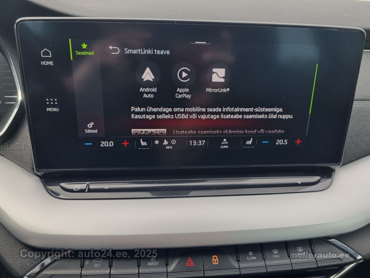 kliimaautomaatik, roolivõimendi, kesklukustus (puldiga), ABS pidurid, turvapadi, elektrooniline seisupidur, turvakardinad, immobilisaator, lisapidurituli, stabiilsuskontroll, pidurdusjõukontroll, sõiduraja hoidmise abisüsteem, veojõukontroll, vihmasensor, ISOFIX lasteistme kinnitus (ees, taga), automaatne paigalseismise funktsioon / mägistardi abi, kõrvalistuja turvapadja väljalülitamise võimalus, jahutusega kindalaegas, udutuled (eesmised, tagumine), LED (tagatuled, päevatuled, lähituled, kaugtuled), päevasõidutulede automaatne lülitus, kaugtulede ümberlülitamise assistent, valuveljed, rehvirõhu kontrollsüsteem, reguleeritav roolisammas (kõrgus ja sügavus), multifunktsionaalne rool, nahkkattega rool, käiguvahetus roolilt, stereo (USB pesaga, originaal), kõlarid, Apple CarPlay, Android Auto, ekraan, navigatsiooniseade, autokompuuter, käed vabad süsteem, iluliistud salongis, taskud esiistmete seljatugedes, jalamatid (kummist), topsihoidjad (ees, taga), tekstiilpolster, istmed reguleeritava kõrgusega (juhiiste, kõrvalistuja iste), 2x istmesoojendused, käetugi ees (laekaga), käetugi taga, tagaistme seljatugi allaklapitav, elektrilised välispeeglid (soojendusega, kokkuklapitavad), 4x elektrilised akende tõstukid, toonitud klaasid, püsikiiruse hoidja (eessõitjaga distantsi hoidev), 2x peeglid päikesesirmides (valgustusega), kohtvalgustid, parkimisandurid (ees, taga), parkimiskaamera, Coming-/Leaving-Home funktsioon, digitaalne näidikutepaneel, tagavararatas, võtmeta avamine, võtmeta käivitus, start-stopp süsteem, reisiarvesti, pakiruumi avamine elektriliselt, pagasikate, katusereelingud, kaubakinnituse konksud, veokonks (elektriline), elektrilise soojendusega esiklaas, tagaklaasi soojendus, aknapesupihustite sulatus, välistemperatuuri näidik, tagaklaasi puhasti |
