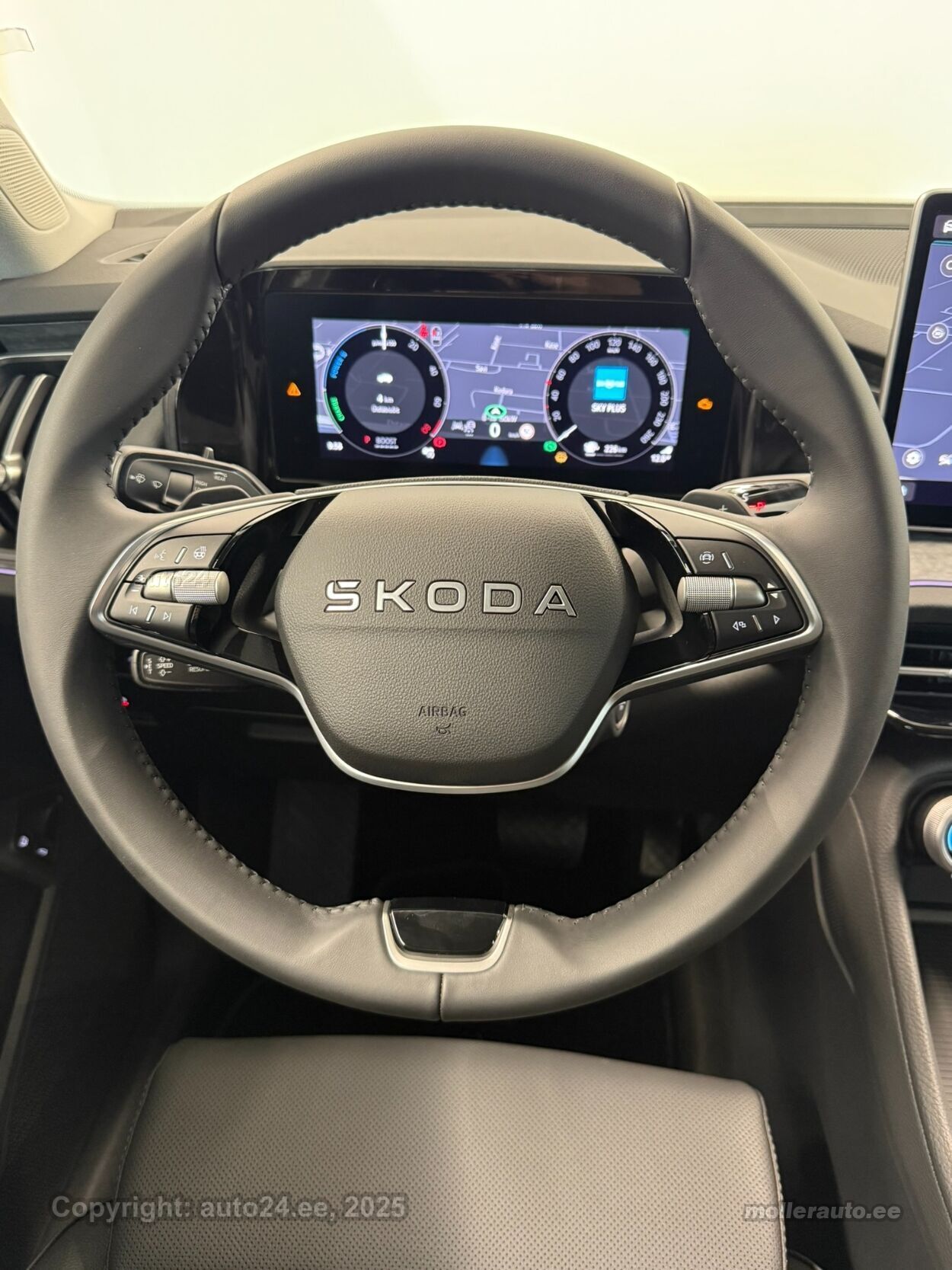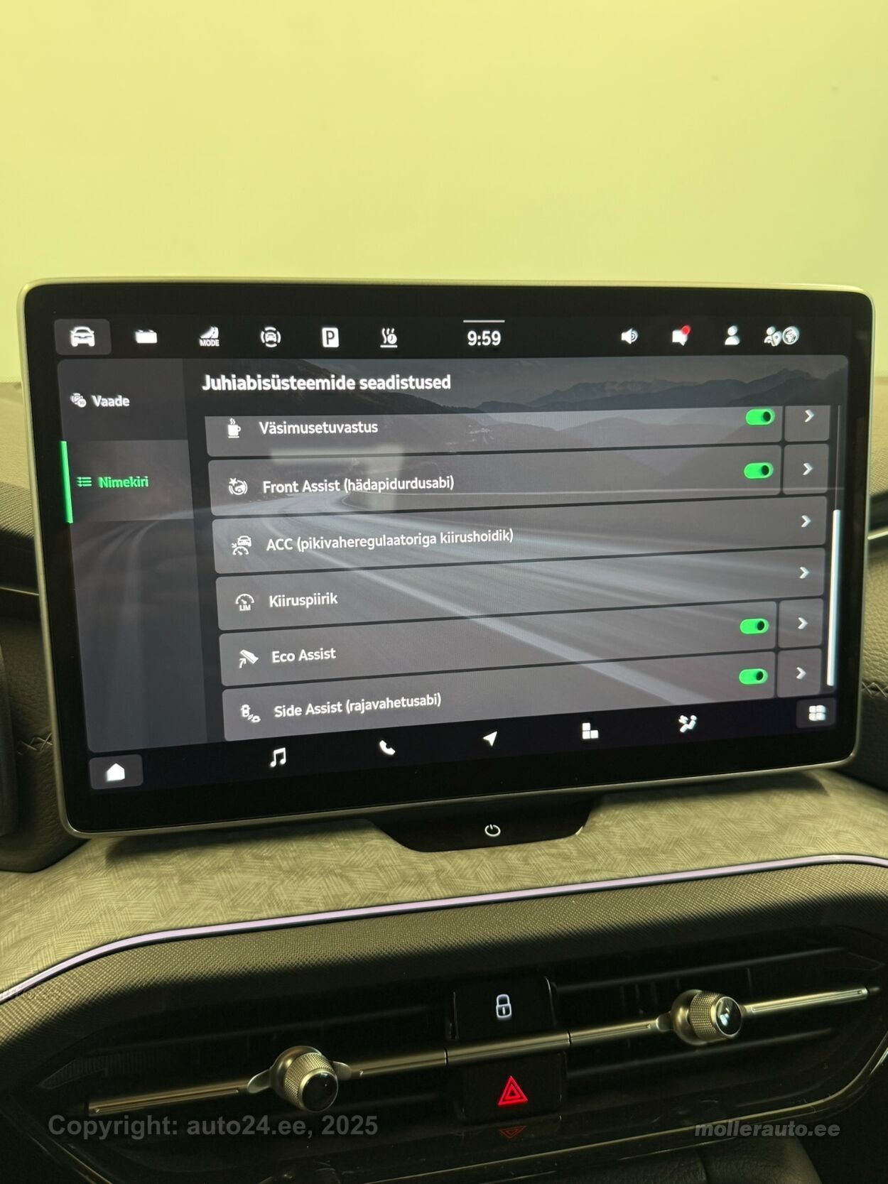 kliimaautomaatik, automaatpidurdussüsteem, roolivõimendi (kiirustundlik), kesklukustus (puldiga), ABS pidurid, elektrooniline seisupidur, turvapadi, turvakardinad, immobilisaator, signalisatsioon, lisapidurituli, kokkupõrget ennetav pidurisüsteem, stabiilsuskontroll, sõiduraja hoidmise abisüsteem, pidurdusjõukontroll, sõiduraja vahetamise abisüsteem, liiklusmärkide tuvastus ja kuvamine, pimenurga hoiatus, veojõukontroll, turvavööde eelpingutid esiistmetel, vihmasensor, ISOFIX lasteistme kinnitus (ees, taga), automaatne paigalseismise funktsioon / mägistardi abi, kõrvalistuja turvapadja väljalülitamise võimalus, juhi väsimuse tuvastamise süsteem, valgustuspakett, LED (päevatuled, tagatuled, lähituled, kaugtuled), päevasõidutulede automaatne lülitus, kaugtulede ümberlülitamise assistent, kurvituled, suverehvid, valuveljed, reguleeritav roolisammas (kõrgus ja sügavus), multifunktsionaalne rool, nahkkattega rool, stereo (originaal), kõlarid, Apple CarPlay, Android Auto, ekraan (ees), navigatsiooniseade, käed vabad süsteem, iluliistud salongis, taskud esiistmete seljatugedes, jalamatid (tekstiilist, kummist), topsihoidjad, nahkpolster, elektriliselt reguleeritavad istmed (mäludega), istmed reguleeritava kõrgusega (juhiiste, kõrvalistuja iste), 4x istmesoojendused, reguleeritava kumerusega seljatugi (juhiiste, kõrvalistuja iste), käetugi ees (laekaga), käetugi taga, tagaistme seljatugi allaklapitav, Comfort istmed, elektrilised välispeeglid (soojendusega, kokkuklapitavad), elektrilised akende tõstukid, toonitud klaasid, püsikiiruse hoidja (eessõitjaga distantsi hoidev), peeglid päikesesirmides (valgustusega), salongi eelsoojendus, eraldi kliimaseade tagaistmetele, automaatselt tumenevad peeglid, uste sisevalgustus, kohtvalgustid, parkimisandurid (ees, taga), parkimiskaamera, Coming-/Leaving-Home funktsioon, digitaalne näidikutepaneel, telefoni juhtmevaba laadimine, võtmeta avamine, võtmeta käivitus, start-stopp süsteem, 12v pistikupesad, pakiruumi avamine elektriliselt (puldist), pagasikate, katusereelingud, kaubakinnituse konksud, elektrilise soojendusega esiklaas, tagaklaasi soojendus, välistemperatuuri näidik, aknapesupihustite sulatus, rehviparanduskomplekt, tagaklaasi puhasti, Matrix LED esituled, Ettevalmistus haagisekonksu paigaldamiseks, Soojendusega esiklaas, Laadimiskaabel ühefaasilisele ühendusele (230 V), Täiendava mürasummutusega esimesed külgaknad, 18" valuveljed Soira, Horisontaalne LED-valgusriba iluvõres, kroomitud iluvõre ribid, Pakett Technology: 13" puutetundliku värviekraaniga navigatsioonisüsteem, FM-raadio |