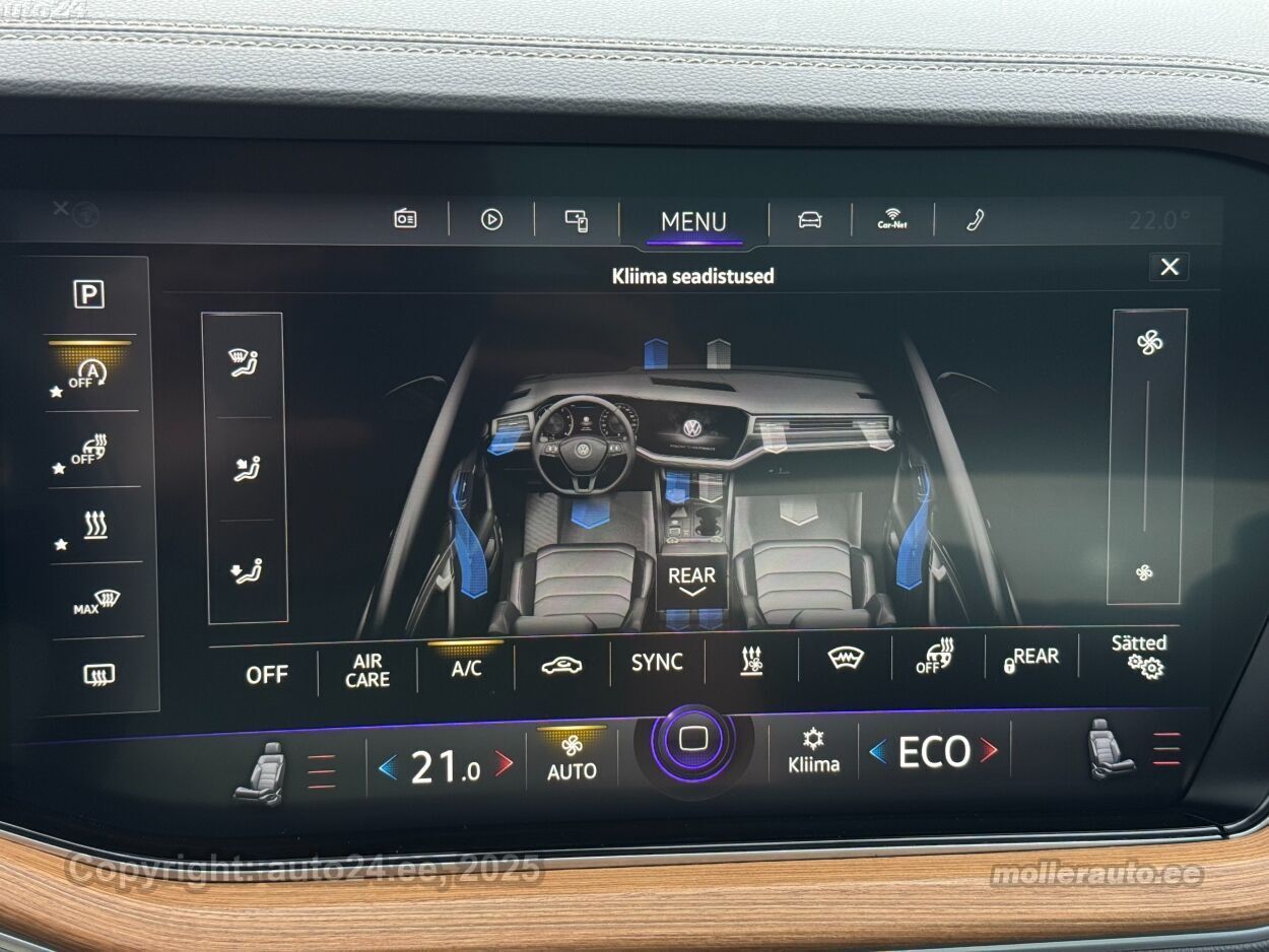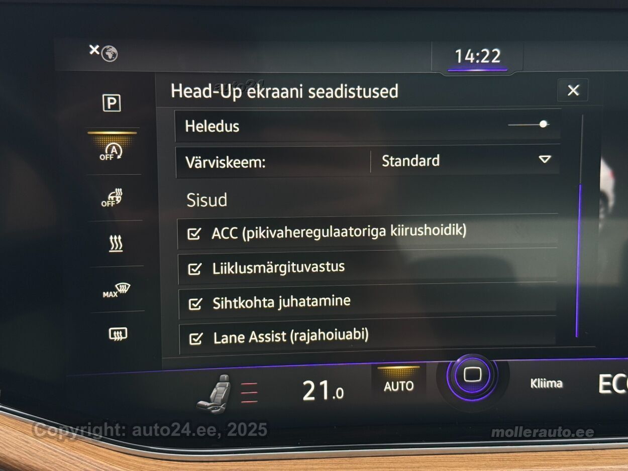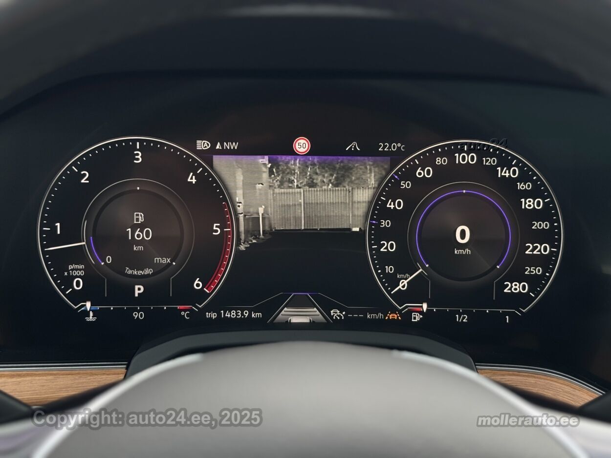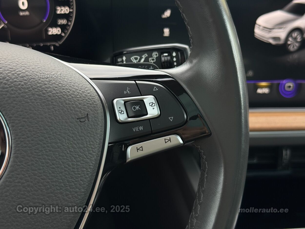 kliimaautomaatik, automaatpidurdussüsteem, roolivõimendi (kiirustundlik), kesklukustus (puldiga), ABS pidurid, 8x turvapadi, elektrooniline seisupidur, turvakardinad, immobilisaator, signalisatsioon (kaldeanduriga, mahuanduriga), lisapidurituli, stabiilsuskontroll, kokkupõrget ennetav pidurisüsteem, pidurdusjõukontroll, sõiduraja hoidmise abisüsteem, sõiduraja vahetamise abisüsteem, liiklusmärkide tuvastus ja kuvamine, öise nägemise assistent, pimenurga hoiatus, veojõukontroll, vihmasensor, ISOFIX lasteistme kinnitus (taga), kõrvalistuja turvapadja väljalülitamise võimalus, automaatne paigalseismise funktsioon / mägistardi abi, juhi väsimuse tuvastamise süsteem, mägipidur, jahutusega kindalaegas, valgustuspakett, udutuled (eesmised, tagumine, kurvitule funktsiooniga), esitulede pesurid, LED (päevatuled, tagatuled, lähituled, kaugtuled), päevasõidutulede automaatne lülitus, kaugtulede ümberlülitamise assistent, kurvituled, suverehvid, valuveljed (20, VW "R-Line"), autoga antakse kaasa (talverehvid), rehvirõhu kontrollsüsteem, reguleeritav roolisammas (kõrgus ja sügavus, elektriliselt, mäluga), multifunktsionaalne rool, nahkkattega rool, sportrool, soojendusega rool, käiguvahetus roolilt, DYNAUDIO stereo (USB pesaga, originaal), helivõimendi, kõlarid, subwoofer, Apple CarPlay, Android Auto, ekraan (ees), navigatsiooniseade (kaardiga, hääljuhtimisega), autokompuuter, käed vabad süsteem, iluliistud salongis (puitdekoor), taskud esiistmete seljatugedes, jalamatid (kummist, veluurist), pagasiruumi matt, topsihoidjad (ees, taga), nahkkattega käigukanginupp, nahkpolster, 2x elektriliselt reguleeritavad istmed (2x mäludega), istmed reguleeritava kõrgusega (juhiiste, kõrvalistuja iste), 2x istmesoojendused, reguleeritava kumerusega seljatugi (juhiiste, kõrvalistuja iste), käetugi ees (laekaga), käetugi taga, tagaistme seljatugi allaklapitav, Comfort istmed, elektrilised välispeeglid (soojendusega, kokkuklapitavad, mäluga), 4x elektrilised akende tõstukid, toonitud klaasid, katuseluuk (klaasist, elektriline), püsikiiruse hoidja (eessõitjaga distantsi hoidev), panoraamkatus (klaasist), 2x peeglid päikesesirmides (valgustusega), 2x rulookardinad ustel, VW puldi ja taimeriga mootori eelsoojendus, VW puldi ja taimeriga salongi eelsoojendus, salongi lisasoojendus, eraldi kliimaseade tagaistmetele, automaatselt tumenevad peeglid (sees, väljas), kohtvalgustid, parkimisandurid (ees, taga), automaatse parkimise funktsioon, parkimiskaamera, Coming-/Leaving-Home funktsioon, digitaalne näidikutepaneel, info kuvamine esiklaasile, telefoni juhtmevaba laadimine, tagavararatas, võtmeta avamine, võtmeta käivitus, start-stopp süsteem, reisiarvesti, 12v pistikupesad, õhkvedrustus, reguleeritav vedrustus (elektriliselt, jäikus, kõrgus), pakiruumi avamine elektriliselt (jalaviipega, puldist), pagasikate, katusereelingud, veokonks (elektriline, teisaldatav), kaubakinnituse konksud, elektrilise soojendusega esiklaas, tagaklaasi soojendus, välistemperatuuri näidik, aknapesupihustite sulatus, rehviparanduskomplekt, topeltklaasid, tagaklaasi puhasti, 4-ratta pööramine, Esimese ja tagumise rist-liikluse jälgimissüsteem |