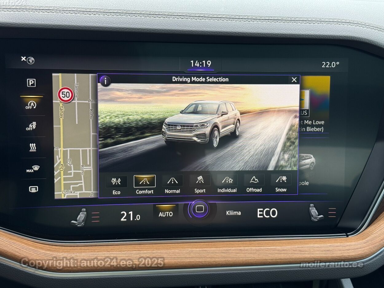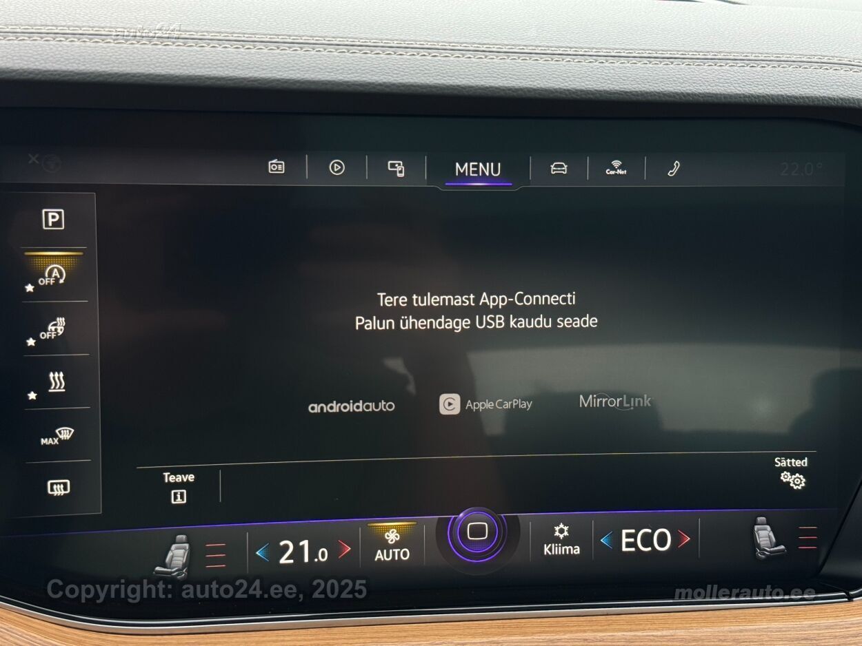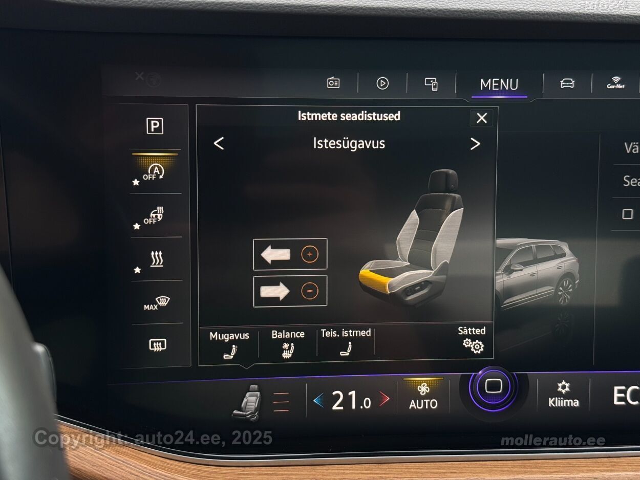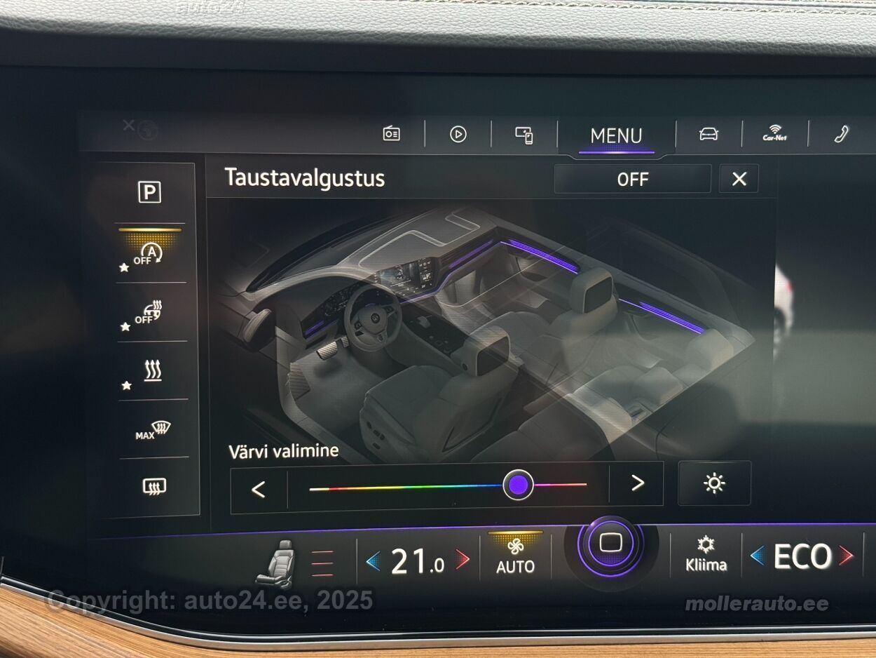 kliimaautomaatik, automaatpidurdussüsteem, roolivõimendi (kiirustundlik), kesklukustus (puldiga), ABS pidurid, 8x turvapadi, elektrooniline seisupidur, turvakardinad, immobilisaator, signalisatsioon (kaldeanduriga, mahuanduriga), lisapidurituli, stabiilsuskontroll, kokkupõrget ennetav pidurisüsteem, pidurdusjõukontroll, sõiduraja hoidmise abisüsteem, sõiduraja vahetamise abisüsteem, liiklusmärkide tuvastus ja kuvamine, öise nägemise assistent, pimenurga hoiatus, veojõukontroll, vihmasensor, ISOFIX lasteistme kinnitus (taga), kõrvalistuja turvapadja väljalülitamise võimalus, automaatne paigalseismise funktsioon / mägistardi abi, juhi väsimuse tuvastamise süsteem, mägipidur, jahutusega kindalaegas, valgustuspakett, udutuled (eesmised, tagumine, kurvitule funktsiooniga), esitulede pesurid, LED (päevatuled, tagatuled, lähituled, kaugtuled), päevasõidutulede automaatne lülitus, kaugtulede ümberlülitamise assistent, kurvituled, suverehvid, valuveljed (20, VW "R-Line"), autoga antakse kaasa (talverehvid), rehvirõhu kontrollsüsteem, reguleeritav roolisammas (kõrgus ja sügavus, elektriliselt, mäluga), multifunktsionaalne rool, nahkkattega rool, sportrool, soojendusega rool, käiguvahetus roolilt, DYNAUDIO stereo (USB pesaga, originaal), helivõimendi, kõlarid, subwoofer, Apple CarPlay, Android Auto, ekraan (ees), navigatsiooniseade (kaardiga, hääljuhtimisega), autokompuuter, käed vabad süsteem, iluliistud salongis (puitdekoor), taskud esiistmete seljatugedes, jalamatid (kummist, veluurist), pagasiruumi matt, topsihoidjad (ees, taga), nahkkattega käigukanginupp, nahkpolster, 2x elektriliselt reguleeritavad istmed (2x mäludega), istmed reguleeritava kõrgusega (juhiiste, kõrvalistuja iste), 2x istmesoojendused, reguleeritava kumerusega seljatugi (juhiiste, kõrvalistuja iste), käetugi ees (laekaga), käetugi taga, tagaistme seljatugi allaklapitav, Comfort istmed, elektrilised välispeeglid (soojendusega, kokkuklapitavad, mäluga), 4x elektrilised akende tõstukid, toonitud klaasid, katuseluuk (klaasist, elektriline), püsikiiruse hoidja (eessõitjaga distantsi hoidev), panoraamkatus (klaasist), 2x peeglid päikesesirmides (valgustusega), 2x rulookardinad ustel, VW puldi ja taimeriga mootori eelsoojendus, VW puldi ja taimeriga salongi eelsoojendus, salongi lisasoojendus, eraldi kliimaseade tagaistmetele, automaatselt tumenevad peeglid (sees, väljas), kohtvalgustid, parkimisandurid (ees, taga), automaatse parkimise funktsioon, parkimiskaamera, Coming-/Leaving-Home funktsioon, digitaalne näidikutepaneel, info kuvamine esiklaasile, telefoni juhtmevaba laadimine, tagavararatas, võtmeta avamine, võtmeta käivitus, start-stopp süsteem, reisiarvesti, 12v pistikupesad, õhkvedrustus, reguleeritav vedrustus (elektriliselt, jäikus, kõrgus), pakiruumi avamine elektriliselt (jalaviipega, puldist), pagasikate, katusereelingud, veokonks (elektriline, teisaldatav), kaubakinnituse konksud, elektrilise soojendusega esiklaas, tagaklaasi soojendus, välistemperatuuri näidik, aknapesupihustite sulatus, rehviparanduskomplekt, topeltklaasid, tagaklaasi puhasti, 4-ratta pööramine, Esimese ja tagumise rist-liikluse jälgimissüsteem |