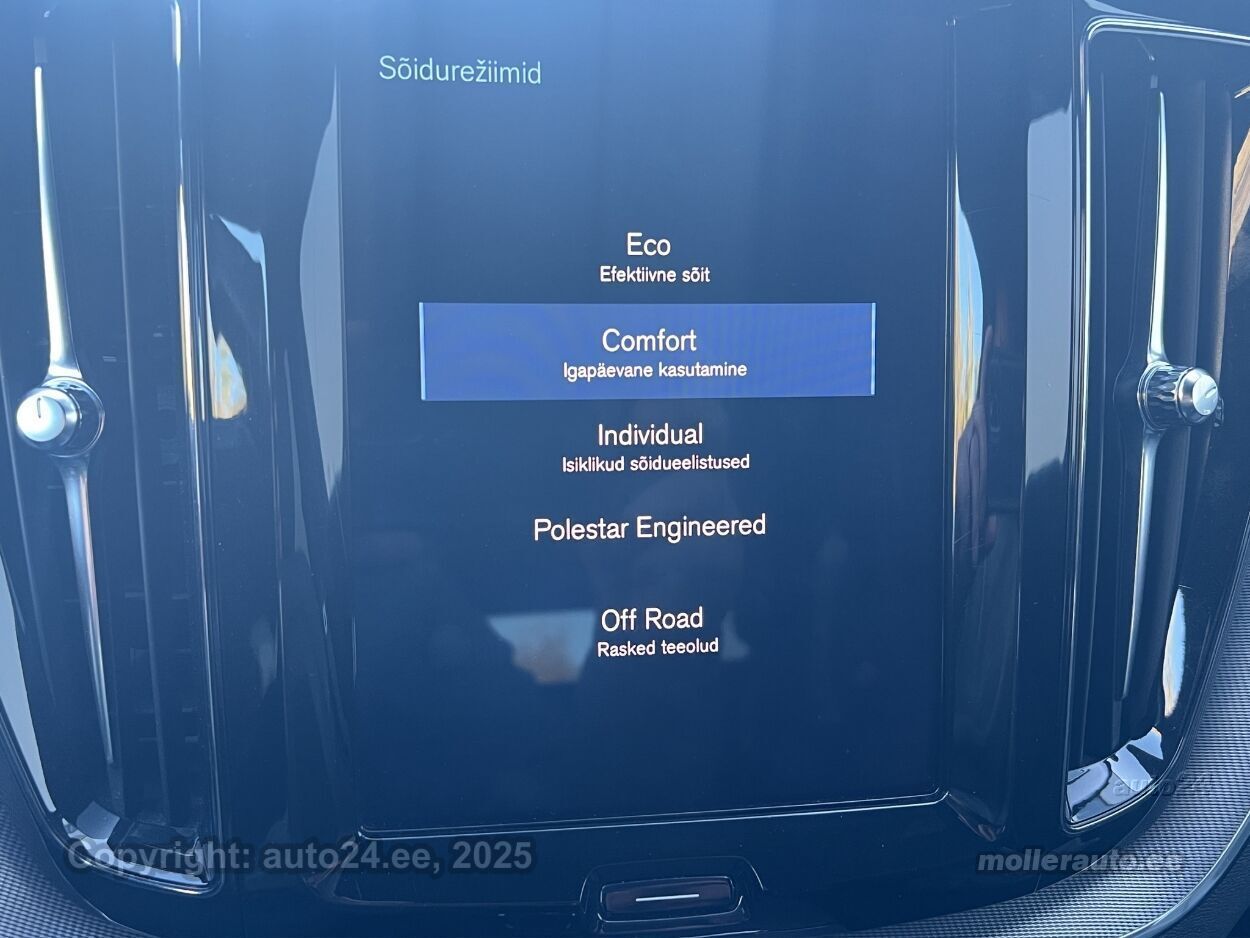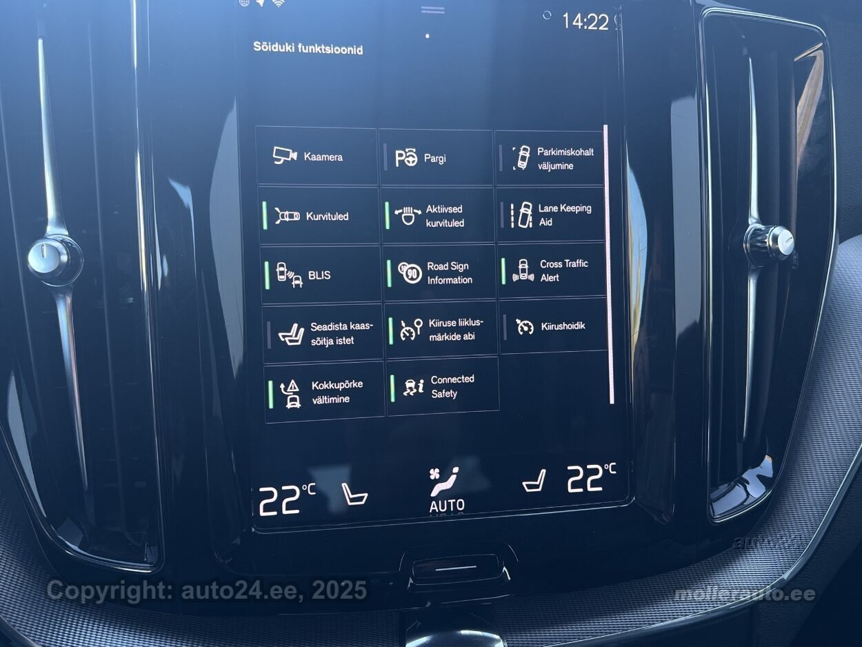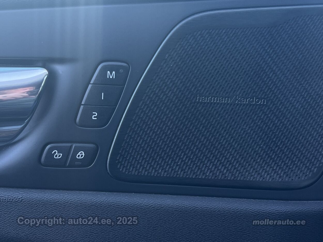 kliimaautomaatik, roolivõimendi (kiirustundlik), kesklukustus (puldiga), ABS pidurid, elektrooniline seisupidur, 5x turvapadi, turvakardinad, immobilisaator, lisapidurituli, kokkupõrget ennetav pidurisüsteem, stabiilsuskontroll, sõiduraja hoidmise abisüsteem, pidurdusjõukontroll, sõiduraja vahetamise abisüsteem, liiklusmärkide tuvastus ja kuvamine, pimenurga hoiatus, veojõukontroll, vihmasensor, ISOFIX lasteistme kinnitus (taga), automaatne paigalseismise funktsioon / mägistardi abi, kõrvalistuja turvapadja väljalülitamise võimalus, udutuled (eesmised, tagumine, kurvitule funktsiooniga), esitulede pesurid, LED (päevatuled, tagatuled, lähituled, kaugtuled), päevasõidutulede automaatne lülitus, kaugtulede ümberlülitamise assistent, kurvituled, suverehvid, valuveljed (22, Volvo), rehvirõhu kontrollsüsteem, reguleeritav roolisammas (kõrgus ja sügavus), multifunktsionaalne rool, nahkkattega rool, sportrool, HARMAN / KARDON stereo (CD, MP3, USB pesaga, originaal), helivõimendi, subwoofer, Apple CarPlay, Android Auto, ekraan (ees), navigatsiooniseade (kaardiga), autokompuuter, käed vabad süsteem, iluliistud salongis, topsihoidjad (ees, taga), nahkkattega käigukanginupp, tume laepolster, nahkpolster, 2x elektriliselt reguleeritavad istmed (2x mäludega), istmed reguleeritava kõrgusega (juhiiste, kõrvalistuja iste), 2x istmesoojendused, reguleeritava kumerusega seljatugi (juhiiste, kõrvalistuja iste), käetugi ees (laekaga), käetugi taga, tagaistme seljatugi allaklapitav, sportistmed, elektrilised välispeeglid (soojendusega, kokkuklapitavad, mäluga), 4x elektrilised akende tõstukid, toonitud klaasid, püsikiiruse hoidja (eessõitjaga distantsi hoidev), 2x peeglid päikesesirmides (valgustusega), eraldi kliimaseade tagaistmetele, automaatselt tumenevad peeglid (sees, väljas), kohtvalgustid, parkimisandurid (ees, taga), automaatse parkimise funktsioon, parkimiskaamera (360), Coming-/Leaving-Home funktsioon, digitaalne näidikutepaneel, tagaspoiler, esispoiler, võtmeta avamine, võtmeta käivitus, start-stopp süsteem, 12v pistikupesad, reisiarvesti, õhkvedrustus, reguleeritav vedrustus (elektriliselt, jäikus, kõrgus), pakiruumi avamine elektriliselt (jalaviipega, puldist), pagasikate, katusereelingud, veokonks (elektriline, teisaldatav), kaubakinnituse konksud, elektrilise soojendusega esiklaas, tagaklaasi soojendus, välistemperatuuri näidik, aknapesupihustite sulatus, tagaklaasi puhasti, VOLVO ON CALL - Volvo äpiga kaugjuhtimine, kaugkäivitus jm. funktsioonid |