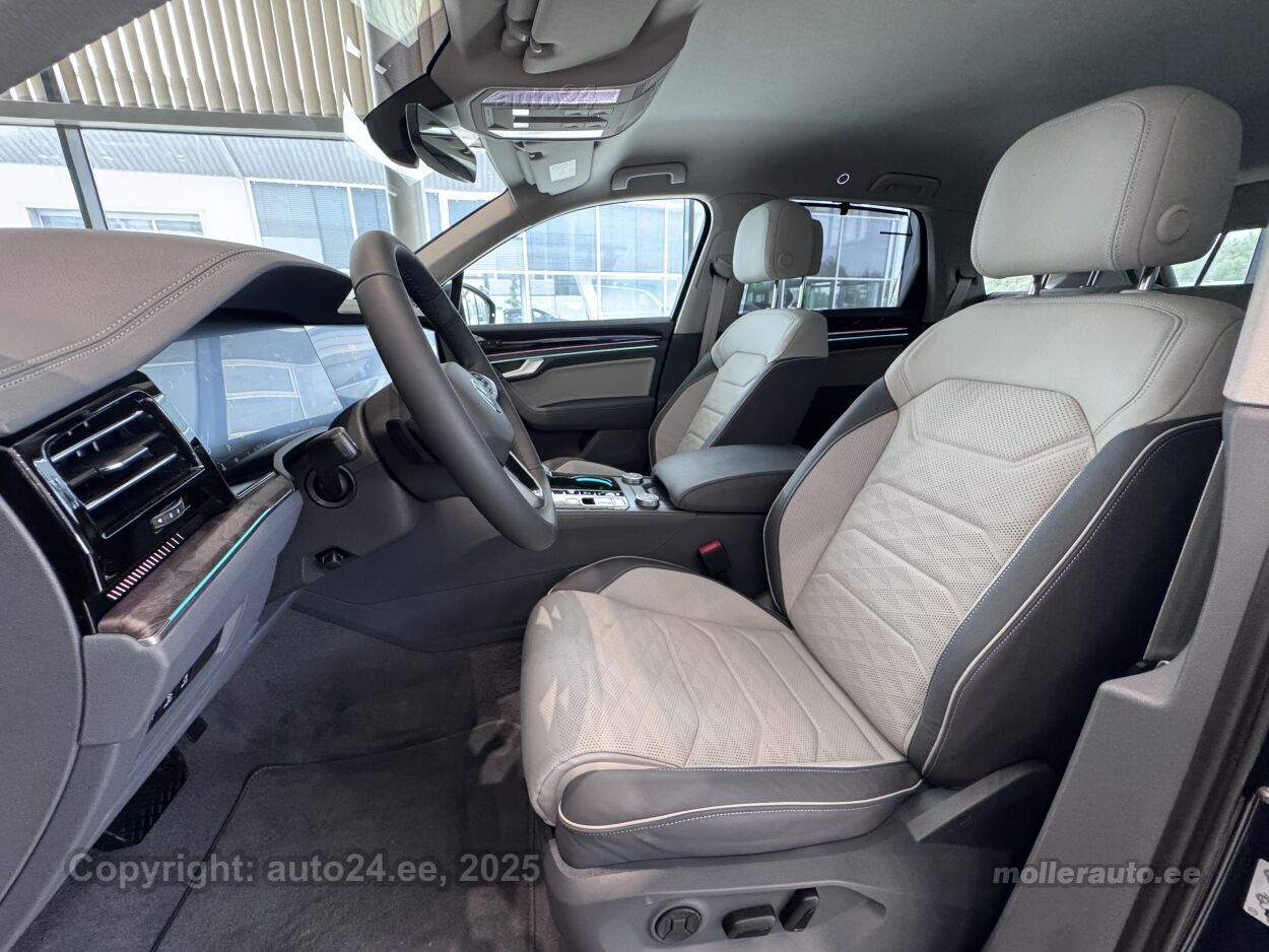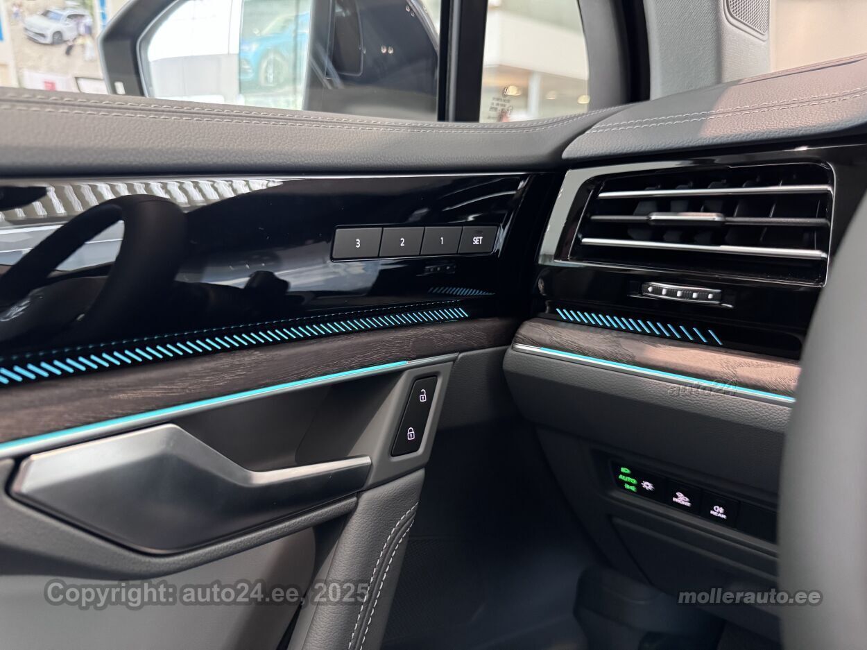 kliimaautomaatik, automaatpidurdussüsteem, roolivõimendi (kiirustundlik), kesklukustus, ABS pidurid, turvapadi, elektrooniline seisupidur, turvakardinad, immobilisaator, signalisatsioon, lisapidurituli, stabiilsuskontroll, kokkupõrget ennetav pidurisüsteem, jalakäija ohutusfunktsiooniga kapott, pidurdusjõukontroll, sõiduraja hoidmise abisüsteem, sõiduraja vahetamise abisüsteem, liiklusmärkide tuvastus ja kuvamine, öise nägemise assistent, pimenurga hoiatus, veojõukontroll, turvavööde eelpingutid esiistmetel, vihmasensor, ISOFIX lasteistme kinnitus, kõrvalistuja turvapadja väljalülitamise võimalus, automaatne paigalseismise funktsioon / mägistardi abi, juhi väsimuse tuvastamise süsteem, mägipidur, jahutusega kindalaegas, valgustuspakett, udutuled (eesmised, tagumine), esitulede pesurid, LED (päevatuled, tagatuled, lähituled, kaugtuled), päevasõidutulede automaatne lülitus, kaugtulede ümberlülitamise assistent, kurvituled, suverehvid, valuveljed, autoga antakse kaasa (suverehvid), rehvirõhu kontrollsüsteem, reguleeritav roolisammas (kõrgus ja sügavus, elektriliselt, mäluga), multifunktsionaalne rool, nahkkattega rool, soojendusega rool, käiguvahetus roolilt, stereo (originaal), kõlarid, Apple CarPlay, Android Auto, ekraan, navigatsiooniseade (kaardiga, hääljuhtimisega), autokompuuter, käed vabad süsteem, iluliistud salongis (puitdekoor), taskud esiistmete seljatugedes, jalamatid (tekstiilist), topsihoidjad (ees, taga), nahkkattega käigukanginupp, nahkpolster, 2x elektriliselt reguleeritavad istmed (2x mäludega), istmed reguleeritava kõrgusega (juhiiste, kõrvalistuja iste), 2x istmesoojendused, reguleeritava kumerusega seljatugi (juhiiste, kõrvalistuja iste), ventileeritavad istmed (ees), käetugi ees (laekaga), käetugi taga, tagaistme seljatugi allaklapitav, Comfort istmed, elektrilised välispeeglid (soojendusega, kokkuklapitavad, mäluga), 4x elektrilised akende tõstukid, toonitud klaasid, püsikiiruse hoidja (eessõitjaga distantsi hoidev), 2x peeglid päikesesirmides (valgustusega), mootori eelsoojendus, salongi eelsoojendus, salongi lisasoojendus, automaatselt tumenevad peeglid (sees, väljas), uste sisevalgustus, kohtvalgustid, parkimisandurid (ees, taga), automaatse parkimise funktsioon, parkimiskaamera (360), Coming-/Leaving-Home funktsioon, digitaalne näidikutepaneel, võtmeta avamine, võtmeta käivitus, uste servosulgurid, start-stopp süsteem, reisiarvesti, 12v pistikupesad, paigaldatud tulekustuti, õhkvedrustus, reguleeritav vedrustus (jäikus, kõrgus), pakiruumi avamine elektriliselt (jalaviipega, puldist), pagasikate (automaatne), katusereelingud, pagasi võrk pakiruumis, veokonks (elektriline, teisaldatav), kaubakinnituse konksud, haagise stabiliseerimissüsteem, tagaklaasi soojendus, välistemperatuuri näidik, aknapesupihustite sulatus, suusakott, rehviparanduskomplekt, topeltklaasid, tagaklaasi puhasti, Eestikeelne kasutusjuhend, Elektriliselt sissepööratav haakekonks koos haagiseabi süsteemiga, Nahkkatte ja soojendusega multifunktsionaalne rool koos käiguvahetuslabadega, Rulookardinad tagauste akendel, Aktiivkliimaseadmega esiistmed, Soojendusega lamineeritud esiklaas, Toonitud külgmised tagaaknad ja tagumine aken, Servosulgur ustele, Meeleolupakett (mitmevärviline)