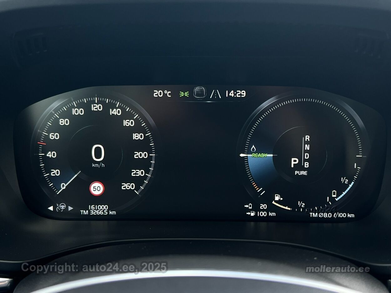 automaatpidurdussüsteem, kliimaautomaatik, roolivõimendi (kiirustundlik), kesklukustus (puldiga), ABS pidurid, elektrooniline seisupidur, turvapadi, turvakardinad, immobilisaator, signalisatsioon, lisapidurituli, kokkupõrget ennetav pidurisüsteem, stabiilsuskontroll, sõiduraja hoidmise abisüsteem, pidurdusjõukontroll, liiklusmärkide tuvastus ja kuvamine, veojõukontroll, turvavööde eelpingutid esiistmetel, vihmasensor, ISOFIX lasteistme kinnitus, automaatne paigalseismise funktsioon / mägistardi abi, kõrvalistuja turvapadja väljalülitamise võimalus, juhi väsimuse tuvastamise süsteem, udutuled (eesmised, tagumine), LED (päevatuled, tagatuled, lähituled, kaugtuled), esitulede pesurid, päevasõidutulede automaatne lülitus, kaugtulede ümberlülitamise assistent, kurvituled, Uued talverehvid (lamellrehvid), valuveljed (20, Volvo), rehvirõhu kontrollsüsteem, reguleeritav roolisammas (kõrgus ja sügavus), multifunktsionaalne rool, nahkkattega rool, soojendusega rool, stereo (USB pesaga, mälukaardi pesaga, originaal), subwoofer, ekraan (ees), navigatsiooniseade (kaardiga), autokompuuter, käed vabad süsteem, iluliistud salongis (puitdekoor), jalamatid, topsihoidjad (ees, taga), nahkkattega käigukanginupp, nahkpolster, elektriliselt reguleeritavad istmed (1x mäludega), istmed reguleeritava kõrgusega (juhiiste, kõrvalistuja iste), reguleeritava kumerusega seljatugi (juhiiste, kõrvalistuja iste), 4x istmesoojendused, käetugi ees (laekaga), käetugi taga, tagaistme seljatugi allaklapitav, Comfort istmed, elektrilised välispeeglid (soojendusega, kokkuklapitavad, mäluga), 4x elektrilised akende tõstukid, toonitud klaasid, katuseluuk (klaasist, elektriline), püsikiiruse hoidja (eessõitjaga distantsi hoidev), panoraamkatus (klaasist), 2x peeglid päikesesirmides (valgustusega), VOC + taimer/ kalender mootori eelsoojendus, VOC + taimer/ kalender salongi eelsoojendus, salongi lisasoojendus, automaatselt tumenevad peeglid (sees, väljas), uste sisevalgustus, parkimisandurid, Coming-/Leaving-Home funktsioon, digitaalne näidikutepaneel, võtmeta avamine, võtmeta käivitus, 12v pistikupesad, reisiarvesti, õhkvedrustus, reguleeritav vedrustus (elektriliselt, jäikus, kõrgus), pakiruumi avamine elektriliselt (jalaviipega, puldist), pagasikate, katusereelingud, kaubakinnituse konksud, veokonks (elektriline, teisaldatav), tagaklaasi soojendus, välistemperatuuri näidik, tagaklaasi puhasti, VOC - Volvo On Call kaugjuhtimine äpist |