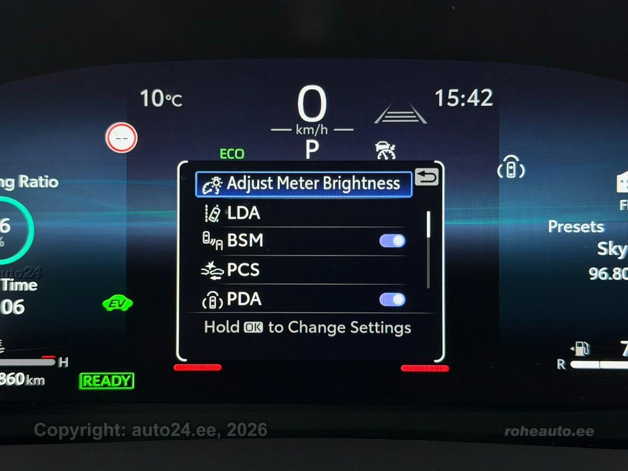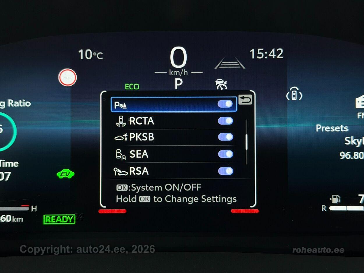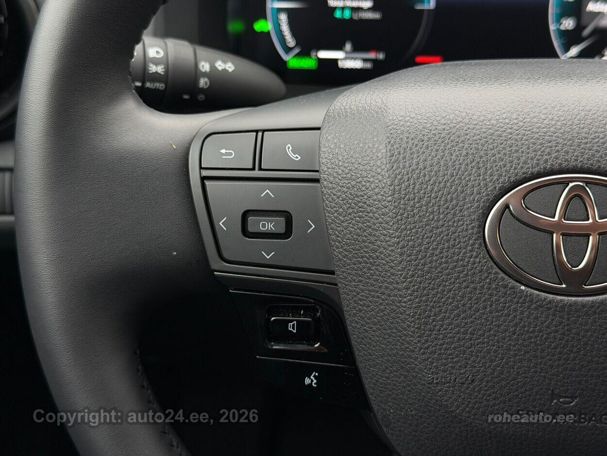 kliimaautomaatik, roolivõimendi (kiirustundlik), kesklukustus (puldiga), ABS pidurid, elektrooniline seisupidur, 4x turvapadi, turvakardinad, immobilisaator, lisapidurituli, stabiilsuskontroll, kokkupõrget ennetav pidurisüsteem, sõiduraja hoidmise abisüsteem, sõiduraja vahetamise abisüsteem, liiklusmärkide tuvastus ja kuvamine, pimenurga hoiatus, veojõukontroll, vihmasensor, ISOFIX lasteistme kinnitus (taga), kõrvalistuja turvapadja väljalülitamise võimalus, automaatne paigalseismise funktsioon / mägistardi abi, udutuled (tagumine), LED (päevatuled, tagatuled, lähituled, kaugtuled), esitulede pesurid, päevasõidutulede automaatne lülitus, kaugtulede ümberlülitamise assistent, UUED talverehvid, valuveljed (18, Toyota), autoga antakse kaasa (suverehvid), rehvirõhu kontrollsüsteem, reguleeritav roolisammas (kõrgus ja sügavus), multifunktsionaalne rool, nahkkattega rool, soojendusega rool, stereo (USB pesaga, originaal), Apple CarPlay, Android Auto, ekraan (ees), navigatsiooniseade (kaardiga), autokompuuter, käed vabad süsteem, topsihoidjad (ees), tekstiilpolster, istmed reguleeritava kõrgusega (juhiiste), 2x istmesoojendused, käetugi ees (laekaga), tagaistme seljatugi allaklapitav, elektrilised välispeeglid (soojendusega, kokkuklapitavad), 4x elektrilised akende tõstukid, toonitud klaasid, püsikiiruse hoidja (eessõitjaga distantsi hoidev), 2x peeglid päikesesirmides (valgustusega), automaatselt tumenevad peeglid (sees), kohtvalgustid, parkimisandurid (ees, taga), parkimiskaamera, telefoni juhtmevaba laadimine, võtmeta avamine, võtmeta käivitus, reisiarvesti, pagasikate, tagaklaasi soojendus, välistemperatuuri näidik, tagaklaasi puhasti |