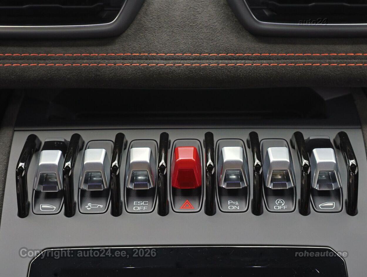 kliimaautomaatik, roolivõimendi (kiirustundlik), kesklukustus (puldiga), ABS pidurid, signalisatsioon, stabiilsuskontroll, pidurdusjõukontroll, veojõukontroll, LED (tagatuled, päevatuled, kaugtuled), päevasõidutulede automaatne lülitus, kaugtulede ümberlülitamise assistent, suverehvid, rehvirõhu kontrollsüsteem, reguleeritav roolisammas (kõrgus ja sügavus), käiguvahetus roolilt, stereo (USB pesaga, originaal), ekraan (ees), käed vabad süsteem, topsihoidjad (ees), sportistmed, elektrilised välispeeglid (soojendusega, kokkuklapitavad), elektrilised akende tõstukid, püsikiiruse hoidja, parkimisandurid (ees, taga), digitaalne näidikutepaneel, tagaspoiler, esispoiler, spoileriring, võtmeta avamine, võtmeta käivitus, reguleeritav vedrustus, Elektromehaaniline roolivõimendi (EPS), Tõstesüsteem magnetoreoloogilise vedrustusega, Digitaalne raadiovastuvõtt (DAB), Sensonum (Lamborghini helisüsteem), Vargusvastane süsteem, Püsikiirusehoidja, Topsihoidja ja suitsetaja pakett, Eesmised ja tagumised parkimisandurid |