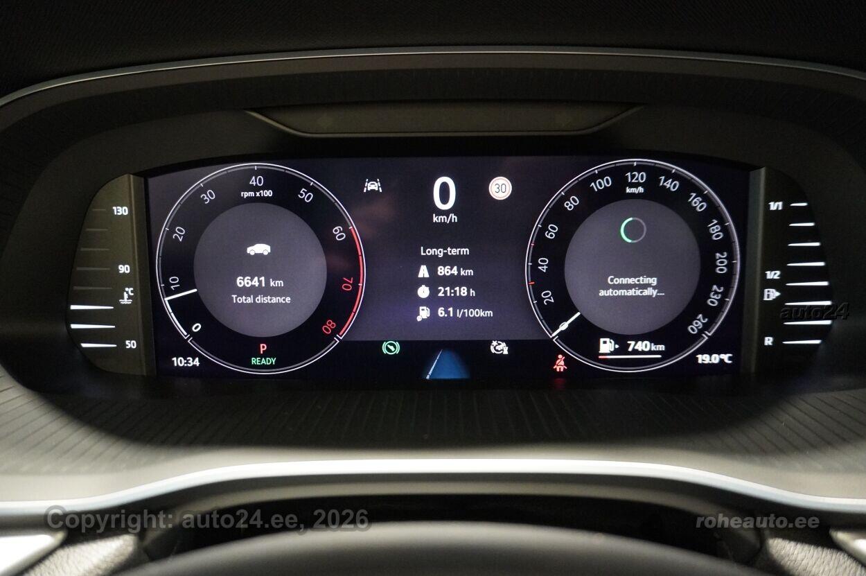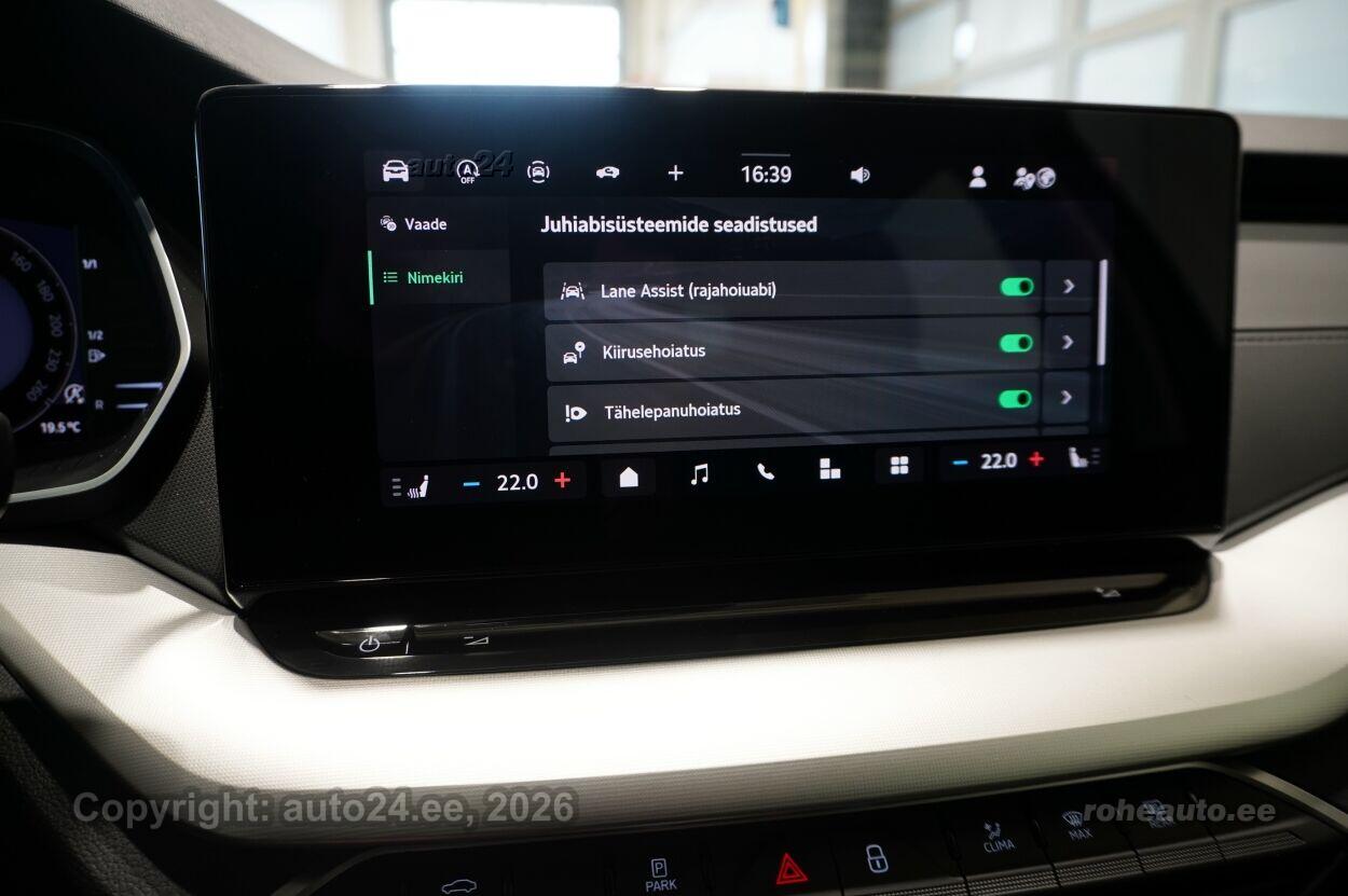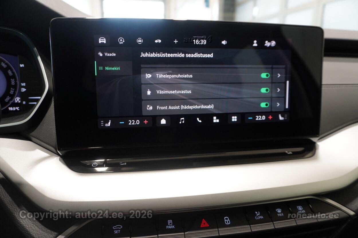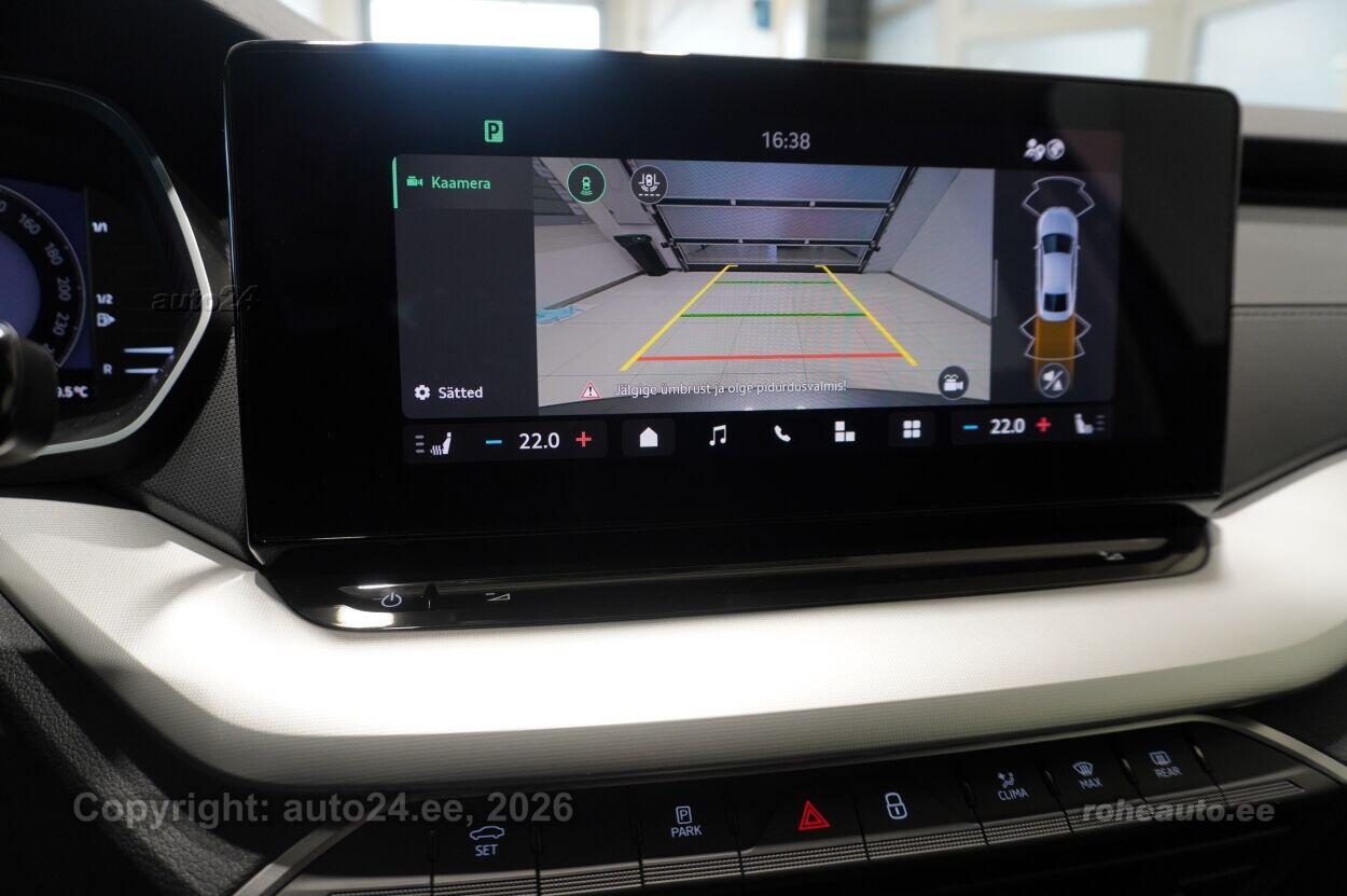 kliimaautomaatik, automaatpidurdussüsteem, roolivõimendi (kiirustundlik), kesklukustus (puldiga), ABS pidurid, elektrooniline seisupidur, turvapadi, turvakardinad, immobilisaator, signalisatsioon (kaldeanduriga, mahuanduriga), lisapidurituli, stabiilsuskontroll, kokkupõrget ennetav pidurisüsteem, pidurdusjõukontroll, sõiduraja hoidmise abisüsteem, liiklusmärkide tuvastus ja kuvamine, veojõukontroll, vihmasensor, ISOFIX lasteistme kinnitus (ees, taga), automaatne paigalseismise funktsioon / mägistardi abi, kõrvalistuja turvapadja väljalülitamise võimalus, juhi väsimuse tuvastamise süsteem, udutuled (tagumine), LED (päevatuled, tagatuled, lähituled, kaugtuled), päevasõidutulede automaatne lülitus, kaugtulede ümberlülitamise assistent, suverehvid, valuveljed, autoga antakse kaasa (talverehvid), rehvirõhu kontrollsüsteem, reguleeritav roolisammas (kõrgus ja sügavus), multifunktsionaalne rool, nahkkattega rool, soojendusega rool, käiguvahetus roolilt, stereo (USB pesaga, originaal), kõlarid, Apple CarPlay, Android Auto, ekraan (ees), autokompuuter, käed vabad süsteem, iluliistud salongis, taskud esiistmete seljatugedes, jalamatid (tekstiilist, kummist), topsihoidjad (ees, taga), tekstiilpolster, istmed reguleeritava kõrgusega (juhiiste, kõrvalistuja iste), istmesoojendused, käetugi ees (laekaga), käetugi taga, tagaistme seljatugi allaklapitav, elektrilised välispeeglid (soojendusega, kokkuklapitavad), elektrilised akende tõstukid, toonitud klaasid, püsikiiruse hoidja, peeglid päikesesirmides, kohtvalgustid, parkimisandurid (ees, taga), parkimiskaamera, Coming-/Leaving-Home funktsioon, digitaalne näidikutepaneel, tagavararatas, võtmeta avamine, võtmeta käivitus, start-stopp süsteem, 12v pistikupesad, reisiarvesti, pakiruumi avamine elektriliselt (puldist), pagasikate, katusereelingud, kaubakinnituse konksud, elektrilise soojendusega esiklaas, tagaklaasi soojendus, välistemperatuuri näidik, esi- ja tagarataste porikummid, tagaklaasi puhasti, 17" valuveljed Mensa Aero, rehvid 205/55 R17, Varuratas terasveljel, rehv 205/60 R16, 2-kodaraga soojendusega nahkrool raadio ja telefoni juhtimise ning DSG käiguvahetusega roolilt, Soojendusega esiklaas (integreeritud soojenduskile), Tagastange kaitsekleebis, Täis kütusepaak |