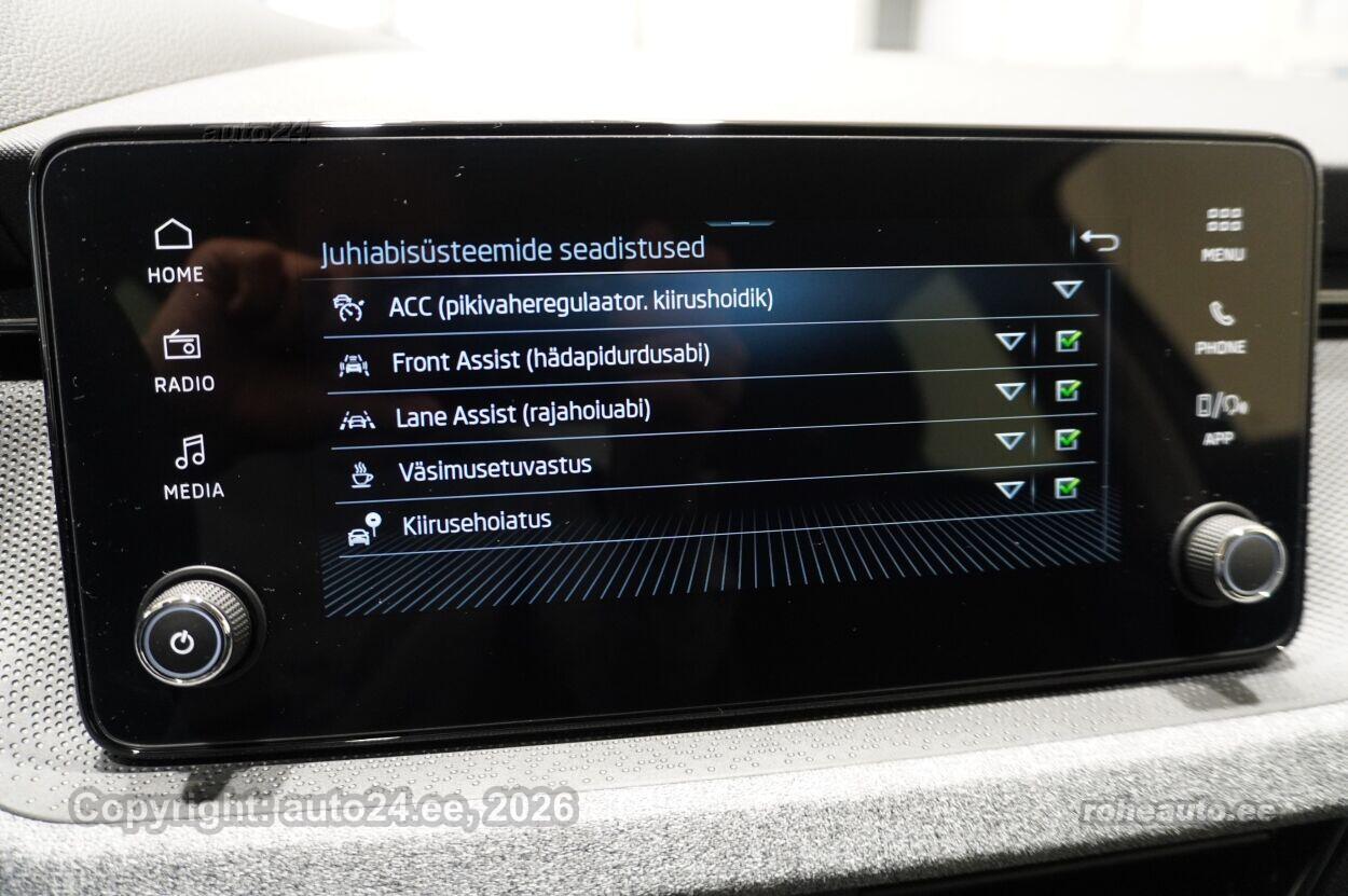 kliimaautomaatik, roolivõimendi (kiirustundlik), kesklukustus (puldiga), ABS pidurid, turvapadi, immobilisaator, signalisatsioon (kaldeanduriga, mahuanduriga), kokkupõrget ennetav pidurisüsteem, stabiilsuskontroll, pidurdusjõukontroll, sõiduraja hoidmise abisüsteem, liiklusmärkide tuvastus ja kuvamine, veojõukontroll, vihmasensor, ISOFIX lasteistme kinnitus (ees, taga), kõrvalistuja turvapadja väljalülitamise võimalus, juhi väsimuse tuvastamise süsteem, udutuled (eesmised, tagumine), tulede korrektor, LED, päevasõidutulede automaatne lülitus, talverehvid (lamellrehvid), valuveljed, autoga antakse kaasa (suverehvid), rehvirõhu kontrollsüsteem, reguleeritav roolisammas (kõrgus ja sügavus), nahkkattega rool, soojendusega rool, stereo (USB pesaga, originaal), kõlarid, Apple CarPlay, Android Auto, ekraan (ees), autokompuuter, käed vabad süsteem, taskud esiistmete seljatugedes, jalamatid (tekstiilist, kummist), pagasiruumi matt, topsihoidjad (ees), nahkkattega käigukanginupp, nahkkattega käsipidurikang, tekstiilpolster, istmed reguleeritava kõrgusega (juhiiste, kõrvalistuja iste), 2x istmesoojendused, käetugi ees (laekaga), tagaistme seljatugi allaklapitav, elektrilised välispeeglid (soojendusega, kokkuklapitavad), 4x elektrilised akende tõstukid, toonitud klaasid, püsikiiruse hoidja (eessõitjaga distantsi hoidev), kohtvalgustid, parkimisandurid (taga), Coming-/Leaving-Home funktsioon, digitaalne näidikutepaneel, tagavararatas, võtmeta avamine, võtmeta käivitus, start-stopp süsteem, 12v pistikupesad, reisiarvesti, pagasikate, kaubakinnituse konksud, elektrilise soojendusega esiklaas, tagaklaasi soojendus, välistemperatuuri näidik, rehviparanduskomplekt, esi- ja tagarataste porikummid, tagaklaasi puhasti, Adaptiivne kiirushoidik, 2-kodaraga soojendusega nahkrool käiguvahetuslabadega, Soojendusega esiklaas, ainult koos soojendusega rooliga |