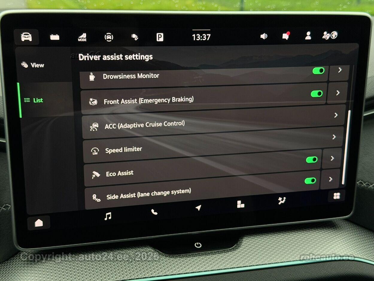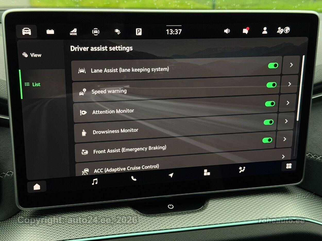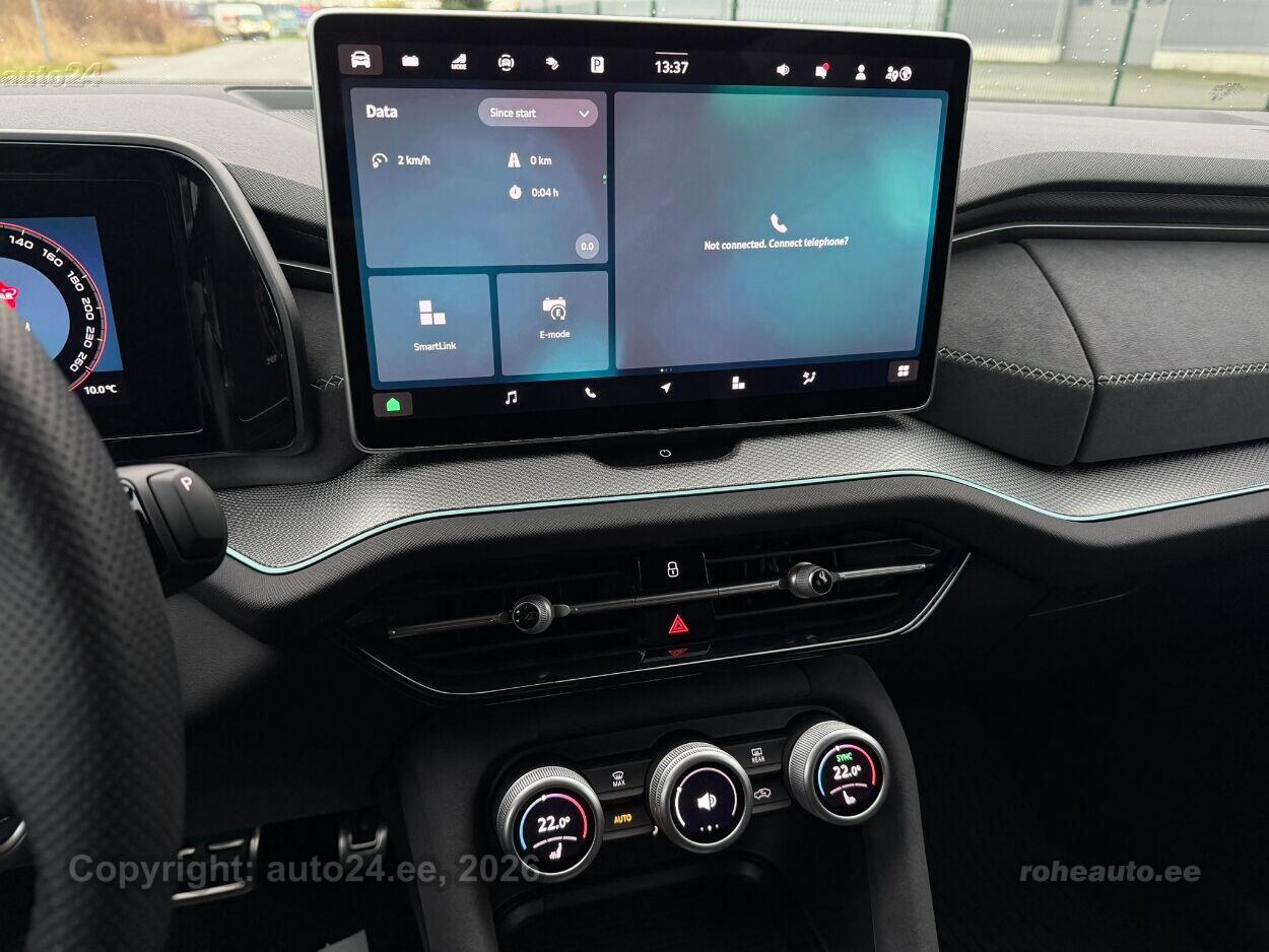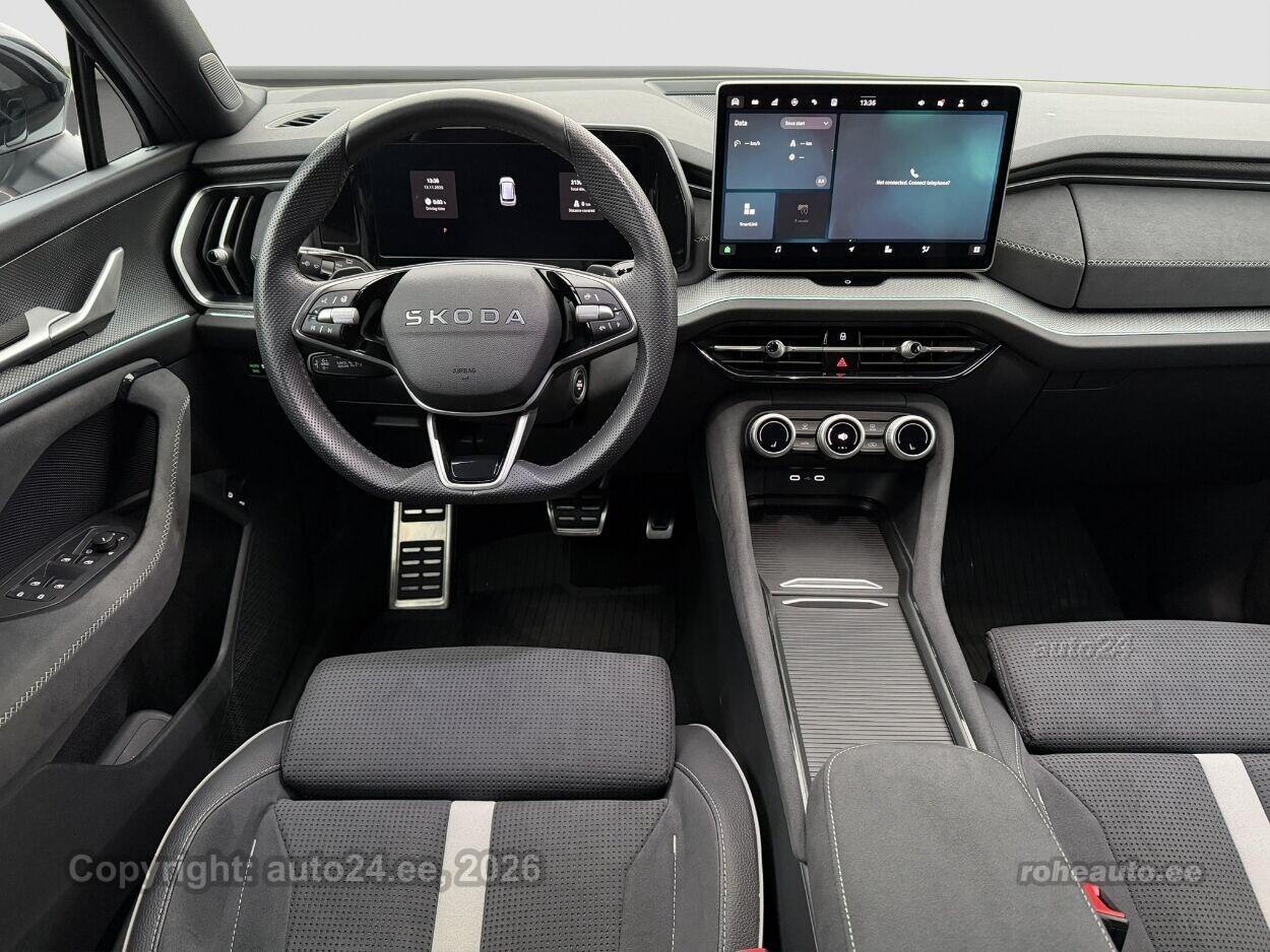 kliimaautomaatik, roolivõimendi, kesklukustus (puldiga), ABS pidurid, elektrooniline seisupidur, turvapadi, turvakardinad, immobilisaator, signalisatsioon (kaldeanduriga, mahuanduriga), lisapidurituli, kokkupõrget ennetav pidurisüsteem, stabiilsuskontroll, sõiduraja hoidmise abisüsteem, pidurdusjõukontroll, sõiduraja vahetamise abisüsteem, liiklusmärkide tuvastus ja kuvamine, pimenurga hoiatus, veojõukontroll, vihmasensor, ISOFIX lasteistme kinnitus (ees, taga), automaatne paigalseismise funktsioon / mägistardi abi, kõrvalistuja turvapadja väljalülitamise võimalus, juhi väsimuse tuvastamise süsteem, udutuled (tagumine), LED (päevatuled, tagatuled, lähituled, kaugtuled), päevasõidutulede automaatne lülitus, kaugtulede ümberlülitamise assistent, kurvituled, talverehvid (lamellrehvid), valuveljed (19, Skoda), autoga antakse kaasa (suverehvid), rehvirõhu kontrollsüsteem, reguleeritav roolisammas (kõrgus ja sügavus), multifunktsionaalne rool, nahkkattega rool, sportrool, soojendusega rool, käiguvahetus roolilt, stereo (USB pesaga, originaal), kõlarid, Apple CarPlay, Android Auto, 13 tolli ekraan (ees), navigatsiooniseade (kaardiga, hääljuhtimisega), autokompuuter, käed vabad süsteem, iluliistud salongis, taskud esiistmete seljatugedes, jalamatid (kummist), topsihoidjad (ees, taga), tume laepolster, poolnahkpolster, 1x elektriliselt reguleeritavad istmed (1x mäludega), istmed reguleeritava kõrgusega (juhiiste, kõrvalistuja iste), reguleeritava kumerusega seljatugi (juhiiste), 4x istmesoojendused, käetugi ees (laekaga), käetugi taga, tagaistme seljatugi allaklapitav, Comfort istmed, elektrilised välispeeglid (soojendusega, kokkuklapitavad), 4x elektrilised akende tõstukid, toonitud klaasid, püsikiiruse hoidja (eessõitjaga distantsi hoidev), 2x peeglid päikesesirmides (valgustusega), salongi eelsoojendus, eraldi kliimaseade tagaistmetele, uste sisevalgustus, kohtvalgustid, parkimisandurid (ees, taga), parkimiskaamera, Coming-/Leaving-Home funktsioon, digitaalne näidikutepaneel, võtmeta avamine, võtmeta käivitus, start-stopp süsteem, 12v pistikupesad, reisiarvesti, pakiruumi avamine elektriliselt, pagasikate, katusereelingud, kaubakinnituse konksud, elektrilise soojendusega esiklaas, tagaklaasi soojendus, aknapesupihustite sulatus, välistemperatuuri näidik, tagaklaasi puhasti |