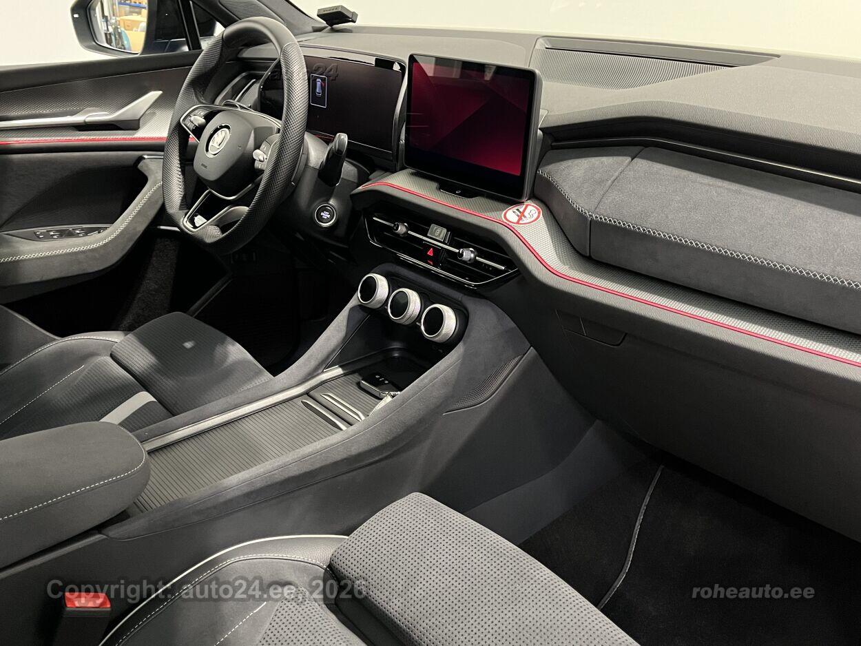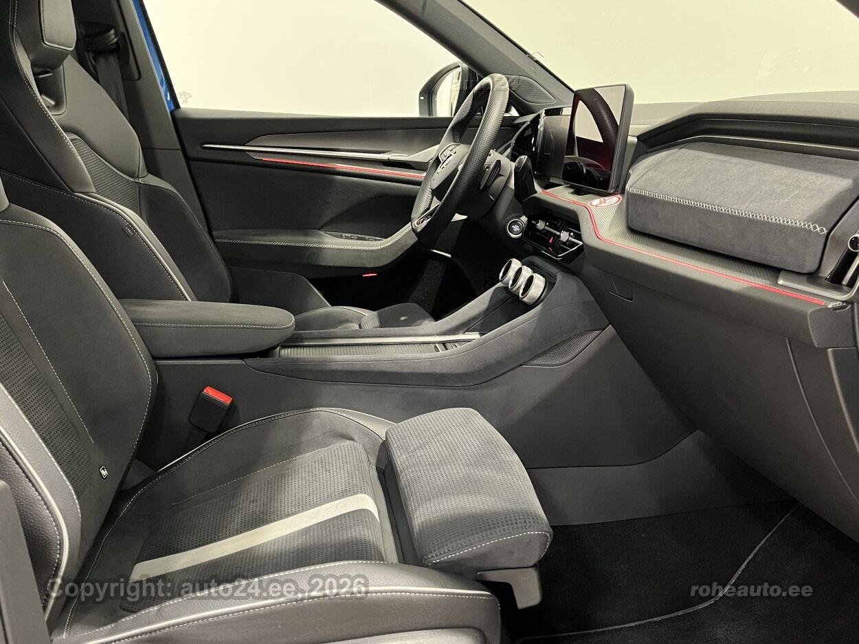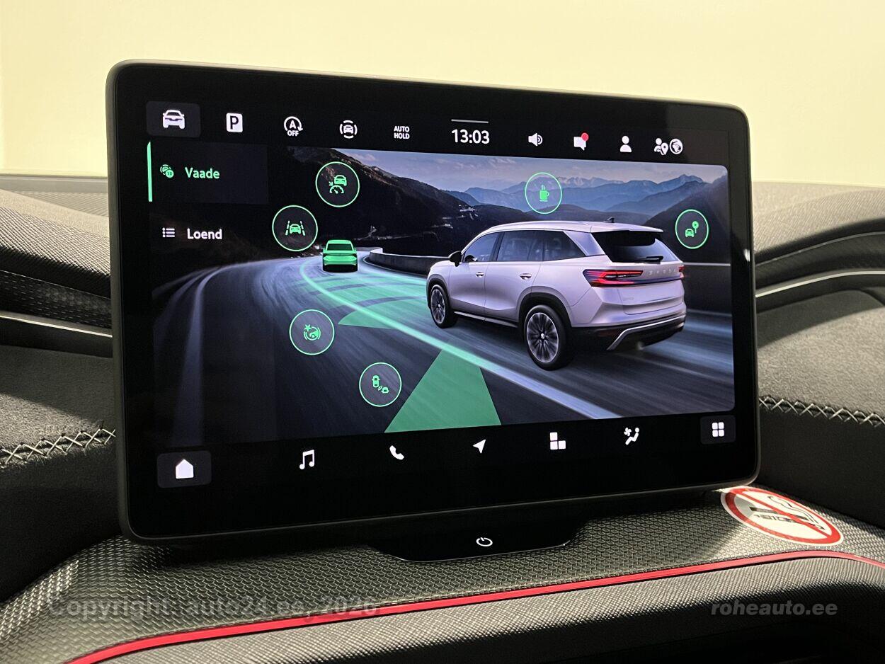 kliimaautomaatik, roolivõimendi, kesklukustus (puldiga), ABS pidurid, elektrooniline seisupidur, 6x turvapadi, turvakardinad, immobilisaator, signalisatsioon (kaldeanduriga, mahuanduriga), lisapidurituli, Front Assist kokkupõrget ennetav pidurisüsteem, stabiilsuskontroll, pidurdusjõukontroll, Lane Assist sõiduraja hoidmise abisüsteem, sõiduraja vahetamise abisüsteem, liiklusmärkide tuvastus ja kuvamine, veojõukontroll, turvavööde eelpingutid esiistmetel, vihmasensor, ISOFIX lasteistme kinnitus (taga), kõrvalistuja turvapadja väljalülitamise võimalus, juhi väsimuse tuvastamise süsteem, udutuled, LED (tagatuled, päevatuled, lähituled, kaugtuled), päevasõidutulede automaatne lülitus, kurvituled, suverehvid, valuveljed (20"), rehvirõhu kontrollsüsteem, reguleeritav roolisammas (kõrgus ja sügavus), multifunktsionaalne rool, nahkkattega rool, sportrool, soojendusega rool, stereo (USB pesaga, mälukaardi pesaga, originaal), kõlarid, Apple CarPlay, Android Auto, ekraan (ees), autokompuuter, Bluetooth käed vabad süsteem, iluliistud salongis, jalamatid, tume laepolster, Interjöör SportLine: must nahk/Suedia poolnahkpolster, 1x elektriliselt reguleeritavad istmed (1x mäludega), istmed reguleeritava kõrgusega (juhiiste, kõrvalistuja iste), 4x istmesoojendused, käetugi ees (laekaga), käetugi taga, tagaistme seljatugi allaklapitav, elektrilised välispeeglid (soojendusega, kokkuklapitavad), 4x elektrilised akende tõstukid, toonitud klaasid, püsikiiruse hoidja (eessõitjaga distantsi hoidev), automaatselt tumenevad peeglid (sees), parkimisandurid (ees, taga), parkimiskaamera, Coming-/Leaving-Home funktsioon, digitaalne näidikutepaneel, telefoni juhtmevaba laadimine, võtmeta avamine, võtmeta käivitus, start-stopp süsteem, 12v pistikupesad, pakiruumi avamine elektriliselt (puldist), pagasikate, katusereelingud, elektrilise soojendusega esiklaas, tagaklaasi soojendus, välistemperatuuri näidik, esi- ja tagarataste porikummid, tagaklaasi puhasti, Ettevalmistus haagisekonksu paigaldamiseks (ilma tootjapoolse ettevalmistuseta ei ole hilisem konksu paigaldamine võimalik), Soojendusega esiklaas, Lisagarantii: 50 000 km (garantiiperiood kokku 5 aastat / 150 000 km), 20" valuveljed Rila Aero, antratsiithallid/poleeritud, rehvid 235/45 R20, Pakett Simply Clever Cargo: kahe poolega pagasiruumi matt (tekstiil/kumm), kinnitusvõrgud pagasiruumis, Pakett Winter Sport: soojendusega tagumised (äärmised) istmed, 3 kodaraga sportlik multifunktsionaalne soojendusega nahkrool |