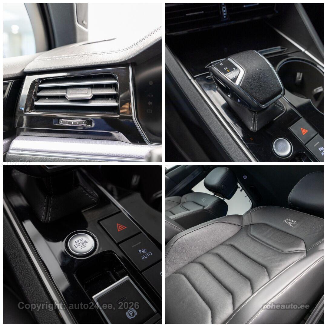kliimaautomaatik, roolivõimendi (kiirustundlik), kesklukustus (puldiga), ABS pidurid, turvapadi, elektrooniline seisupidur, immobilisaator, signalisatsioon (kaldeanduriga, mahuanduriga), lisapidurituli, stabiilsuskontroll, pidurdusjõukontroll, sõiduraja hoidmise abisüsteem, liiklusmärkide tuvastus ja kuvamine, pimenurga hoiatus, turvavööde eelpingutid esiistmetel, vihmasensor, ISOFIX lasteistme kinnitus (taga), kõrvalistuja turvapadja väljalülitamise võimalus, automaatne paigalseismise funktsioon / mägistardi abi, juhi väsimuse tuvastamise süsteem, mägipidur, jahutusega kindalaegas, udutuled (eesmised, tagumine, kurvitule funktsiooniga), tulede korrektor, LED (päevatuled, tagatuled, lähituled, kaugtuled), päevasõidutulede automaatne lülitus, kaugtulede ümberlülitamise assistent, kurvituled, talverehvid (lamellrehvid), valuveljed (R20), reguleeritav roolisammas (kõrgus ja sügavus), multifunktsionaalne rool, nahkkattega rool, sportrool, soojendusega rool, käiguvahetus roolilt, stereo (USB pesaga, originaal), helivõimendi, kõlarid, subwoofer, Apple CarPlay, Android Auto, elektriline antenn, ekraan (ees), navigatsiooniseade (kaardiga), autokompuuter, käed vabad süsteem, GSM antenn, iluliistud salongis (puitdekoor), taskud esiistmete seljatugedes, jalamatid (veluurist), pagasiruumi matt, topsihoidjad (ees, taga), nahkkattega käigukanginupp, tume laepolster, nahkpolster, 1x õhuga reguleeritav iste, 2x elektriliselt reguleeritavad istmed (1x mäludega), 4x istmesoojendused, käetugi ees (laekaga), käetugi taga, tagaistme seljatugi allaklapitav, elektrilised välispeeglid (soojendusega, kokkuklapitavad, mäluga), 4x elektrilised akende tõstukid, toonitud klaasid, püsikiiruse hoidja (eessõitjaga distantsi hoidev), 2x peeglid päikesesirmides (valgustusega), mootori eelsoojendus, salongi eelsoojendus, salongi lisasoojendus, eraldi kliimaseade tagaistmetele, uste sisevalgustus, kohtvalgustid, automaatse parkimise funktsioon, parkimisandurid (ees, taga), parkimiskaamera (360), Coming-/Leaving-Home funktsioon, digitaalne näidikutepaneel, info kuvamine esiklaasile, pakiruumi liugpõrand, telefoni juhtmevaba laadimine, sportvedrustus, võtmeta avamine, võtmeta käivitus, uste servosulgurid, start-stopp süsteem, 12v pistikupesad, õhkvedrustus, reguleeritav vedrustus (kõrgus), pakiruumi avamine elektriliselt (jalaviipega, puldist), pagasikate, katusereelingud, pagasi võrk pakiruumis, kaubakinnituse konksud, tagaklaasi soojendus, välistemperatuuri näidik, aknapesupihustite sulatus, rehviparanduskomplekt, topeltklaasid, tagaklaasi puhasti |