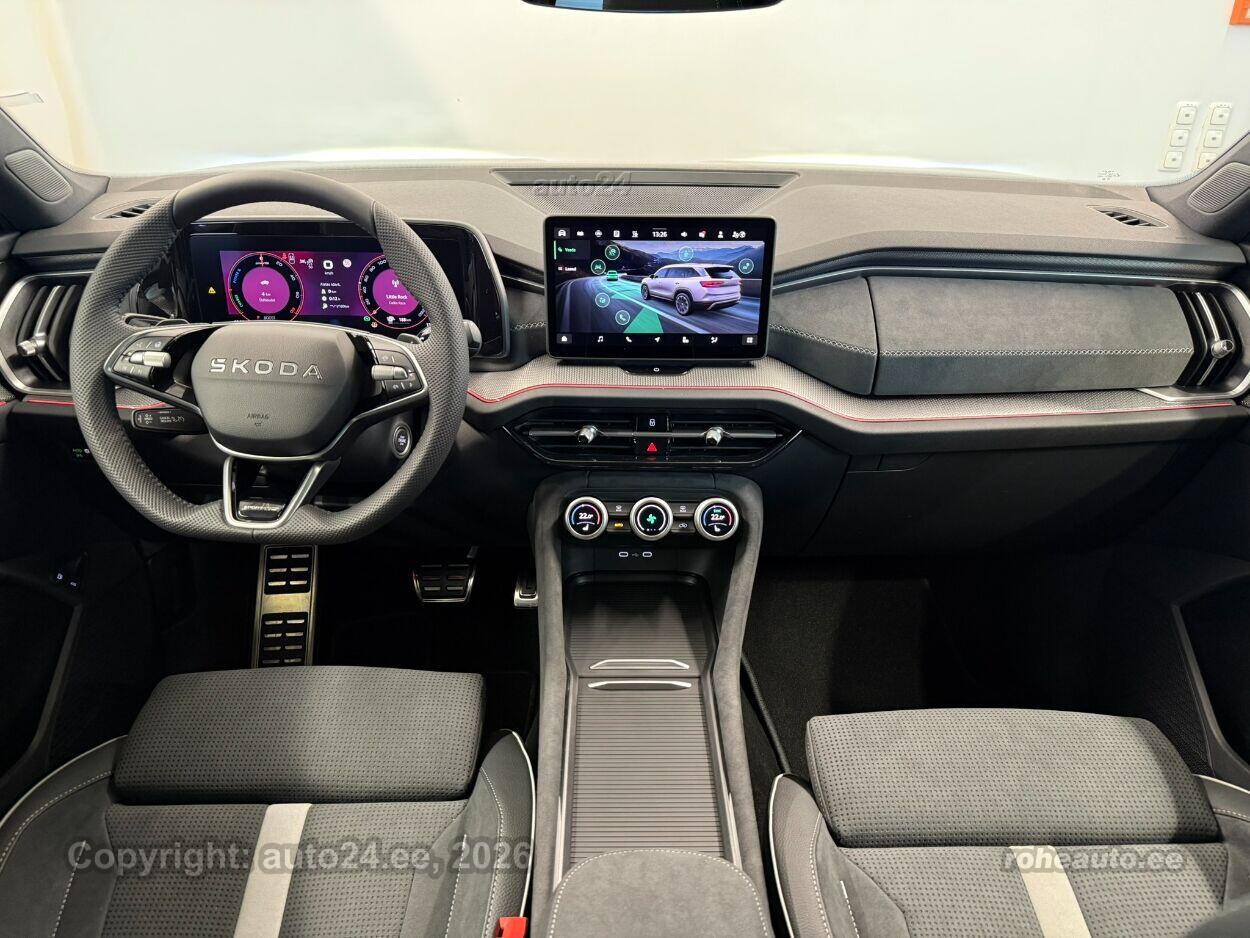 kliimaautomaatik, automaatpidurdussüsteem, roolivõimendi (kiirustundlik), kesklukustus (puldiga), ABS pidurid, elektrooniline seisupidur, turvapadi, turvakardinad, immobilisaator, signalisatsioon, lisapidurituli, stabiilsuskontroll, kokkupõrget ennetav pidurisüsteem, pidurdusjõukontroll, sõiduraja hoidmise abisüsteem, sõiduraja vahetamise abisüsteem, liiklusmärkide tuvastus ja kuvamine, pimenurga hoiatus, veojõukontroll, turvavööde eelpingutid esiistmetel, vihmasensor, ISOFIX lasteistme kinnitus (ees, taga), kõrvalistuja turvapadja väljalülitamise võimalus, automaatne paigalseismise funktsioon / mägistardi abi, juhi väsimuse tuvastamise süsteem, valgustuspakett, LED (päevatuled, tagatuled, lähituled, kaugtuled), päevasõidutulede automaatne lülitus, kaugtulede ümberlülitamise assistent, suverehvid, valuveljed (R20), reguleeritav roolisammas (kõrgus ja sügavus), multifunktsionaalne rool, nahkkattega rool, sportrool, soojendusega rool, käiguvahetus roolilt, stereo (originaal), kõlarid, Apple CarPlay, Android Auto, ekraan, käed vabad süsteem, iluliistud salongis, taskud esiistmete seljatugedes, jalamatid (tekstiilist, kummist), topsihoidjad (ees, taga), tume laepolster, veluurpolster, poolnahkpolster, elektriliselt reguleeritavad istmed (mäludega), reguleeritava kumerusega seljatugi (juhiiste, kõrvalistuja iste), 4x istmesoojendused, käetugi ees, käetugi taga, tagaistme seljatugi allaklapitav, sportistmed, elektrilised välispeeglid (soojendusega, kokkuklapitavad, mäluga), elektrilised akende tõstukid, toonitud klaasid, püsikiiruse hoidja (eessõitjaga distantsi hoidev), peeglid päikesesirmides (valgustusega), salongi eelsoojendus, eraldi kliimaseade tagaistmetele, automaatselt tumenevad peeglid, uste sisevalgustus, kohtvalgustid, parkimisandurid (ees, taga), parkimiskaamera, Coming-/Leaving-Home funktsioon, digitaalne näidikutepaneel, telefoni juhtmevaba laadimine, võtmeta avamine, võtmeta käivitus, start-stopp süsteem, 12v pistikupesad, paigaldatud tulekustuti, pakiruumi avamine elektriliselt (puldist), pagasikate, katusereelingud, kaubakinnituse konksud, elektrilise soojendusega esiklaas, tagaklaasi soojendus, välistemperatuuri näidik, aknapesupihustite sulatus, rehviparanduskomplekt, tagaklaasi puhasti, Matrix LED esituled, Laadimiskaabel ühefaasilisele ühendusele (230 V), 20" valuveljed Rila Aero, Pakett Winter: soojendusega esiklaas, soojendusega tagumised (äärmised) istmed, Ettevalmistus haagisekonksu hilisemaks paigalduseks |