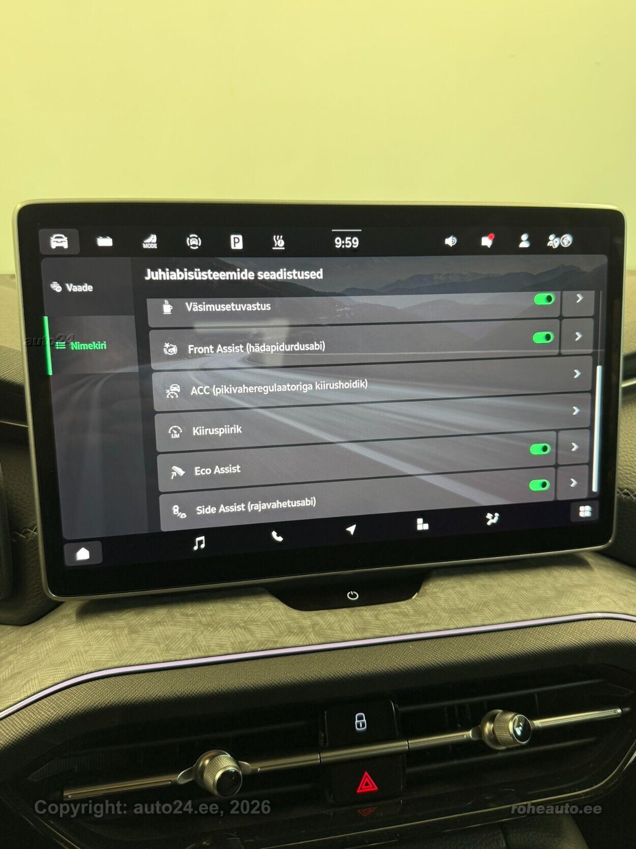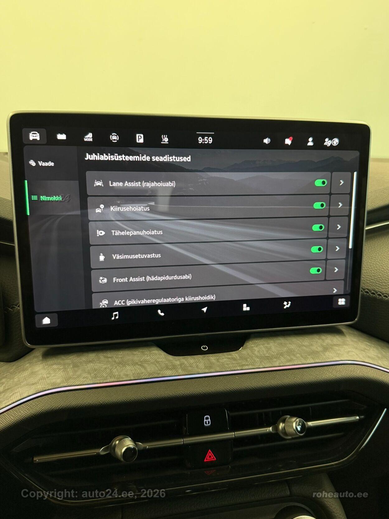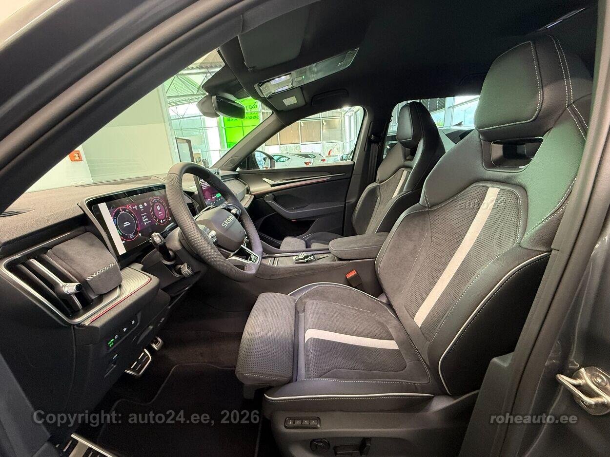 automaatpidurdussüsteem, kliimaautomaatik, roolivõimendi (kiirustundlik), kesklukustus (puldiga), ABS pidurid, turvapadi, elektrooniline seisupidur, turvakardinad, immobilisaator, signalisatsioon, lisapidurituli, kokkupõrget ennetav pidurisüsteem, stabiilsuskontroll, jalakäija ohutusfunktsiooniga kapott, sõiduraja hoidmise abisüsteem, pidurdusjõukontroll, sõiduraja vahetamise abisüsteem, liiklusmärkide tuvastus ja kuvamine, pimenurga hoiatus, veojõukontroll, turvavööde eelpingutid esiistmetel, vihmasensor, ISOFIX lasteistme kinnitus (ees, taga), automaatne paigalseismise funktsioon / mägistardi abi, kõrvalistuja turvapadja väljalülitamise võimalus, juhi väsimuse tuvastamise süsteem, valgustuspakett, LED (päevatuled, tagatuled, lähituled, kaugtuled), kaugtulede ümberlülitamise assistent, suverehvid, valuveljed (R20), reguleeritav roolisammas (kõrgus ja sügavus), nahkkattega rool, sportrool, soojendusega rool, käiguvahetus roolilt, stereo (originaal), kõlarid, Apple CarPlay, Android Auto, ekraan (ees), käed vabad süsteem, jalamatid (tekstiilist, kummist), topsihoidjad, tume laepolster, veluurpolster, poolnahkpolster, elektriliselt reguleeritavad istmed (mäludega), istmed reguleeritava kõrgusega (juhiiste, kõrvalistuja iste), 4x istmesoojendused, reguleeritava kumerusega seljatugi (juhiiste, kõrvalistuja iste), käetugi ees (laekaga), käetugi taga, tagaistme seljatugi allaklapitav, sportistmed, elektrilised välispeeglid (soojendusega, kokkuklapitavad, mäluga), elektrilised akende tõstukid, toonitud klaasid, püsikiiruse hoidja (eessõitjaga distantsi hoidev), peeglid päikesesirmides (valgustusega), salongi eelsoojendus, eraldi kliimaseade tagaistmetele, automaatselt tumenevad peeglid, uste sisevalgustus, kohtvalgustid, parkimisandurid (ees, taga), parkimiskaamera, Coming-/Leaving-Home funktsioon, digitaalne näidikutepaneel, telefoni juhtmevaba laadimine, võtmeta avamine, võtmeta käivitus, start-stopp süsteem, 12v pistikupesad, paigaldatud tulekustuti, pakiruumi avamine elektriliselt (puldist), pagasikate, katusereelingud, kaubakinnituse konksud, elektrilise soojendusega esiklaas, tagaklaasi soojendus, aknapesupihustite sulatus, välistemperatuuri näidik, rehviparanduskomplekt, tagaklaasi puhasti, Matrix LED esituled, ettevalmistus haagisekonksu hilisemaks paigalduseks, Laadimiskaabel ühefaasilisele ühendusele (230 V), Pakett Winter: soojendusega esiklaas, soojendusega tagumised (äärmised) istmed, 20" valuveljed Rila Aero, antratsiithallid/poleeritud |
