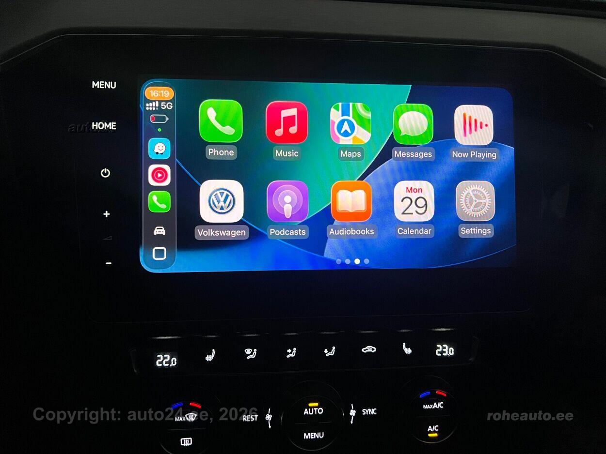 kliimaautomaatik, roolivõimendi (kiirustundlik), kesklukustus (puldiga), ABS pidurid, elektrooniline seisupidur, 5x turvapadi, turvakardinad, immobilisaator, signalisatsioon (kaldeanduriga, mahuanduriga), lisapidurituli, stabiilsuskontroll, kokkupõrget ennetav pidurisüsteem, sõiduraja hoidmise abisüsteem, pidurdusjõukontroll, liiklusmärkide tuvastus ja kuvamine, veojõukontroll, vihmasensor, ISOFIX lasteistme kinnitus (taga), automaatne paigalseismise funktsioon / mägistardi abi, kõrvalistuja turvapadja väljalülitamise võimalus, juhi väsimuse tuvastamise süsteem, jahutusega kindalaegas, valgustuspakett, udutuled (eesmised, tagumine, kurvitule funktsiooniga), LED (päevatuled, tagatuled, lähituled, kaugtuled), päevasõidutulede automaatne lülitus, kaugtulede ümberlülitamise assistent, kurvituled, talverehvid (lamellrehvid), valuveljed (17, VW), rehvirõhu kontrollsüsteem, reguleeritav roolisammas (kõrgus ja sügavus), multifunktsionaalne rool, nahkkattega rool, soojendusega rool, käiguvahetus roolilt, "Discover Pro" stereo (USB pesaga, originaal), Apple CarPlay, Android Auto, ekraan (ees), navigatsiooniseade (kaardiga), autokompuuter, käed vabad süsteem, iluliistud salongis, jalamatid (kummist, veluurist), topsihoidjad (ees, taga), nahkkattega käigukanginupp, tume laepolster, "Nappa" nahkpolster, 2x elektriliselt reguleeritavad istmed (1x mäludega), istmed reguleeritava kõrgusega (juhiiste, kõrvalistuja iste), 2x istmesoojendused, reguleeritava kumerusega seljatugi (juhiiste, kõrvalistuja iste), massaažifunktsiooniga istmed (juhil), käetugi ees (laekaga), käetugi taga, tagaistme seljatugi allaklapitav, Comfort istmed, elektrilised välispeeglid (soojendusega, kokkuklapitavad, mäluga), 4x elektrilised akende tõstukid, toonitud klaasid, püsikiiruse hoidja (eessõitjaga distantsi hoidev), 2x peeglid päikesesirmides (valgustusega), automaatselt tumenevad peeglid (sees, väljas), kohtvalgustid, parkimisandurid (ees, taga), parkimiskaamera, Coming-/Leaving-Home funktsioon, digitaalne näidikutepaneel, telefoni juhtmevaba laadimine, võtmeta avamine, võtmeta käivitus, start-stopp süsteem, reisiarvesti, pakiruumi avamine elektriliselt (jalaviipega, puldist), kaubakinnituse konksud, tagaklaasi soojendus, välistemperatuuri näidik, aknapesupihustite sulatus, IQ.LIGHT - Matrix LED esituled, Juhmevabad Apple CarPlay / Android Auto, Dünaamilised suunatuled ees ja taga, "Travel Assist" koos "Emergency Assist" turvasüsteemiga |