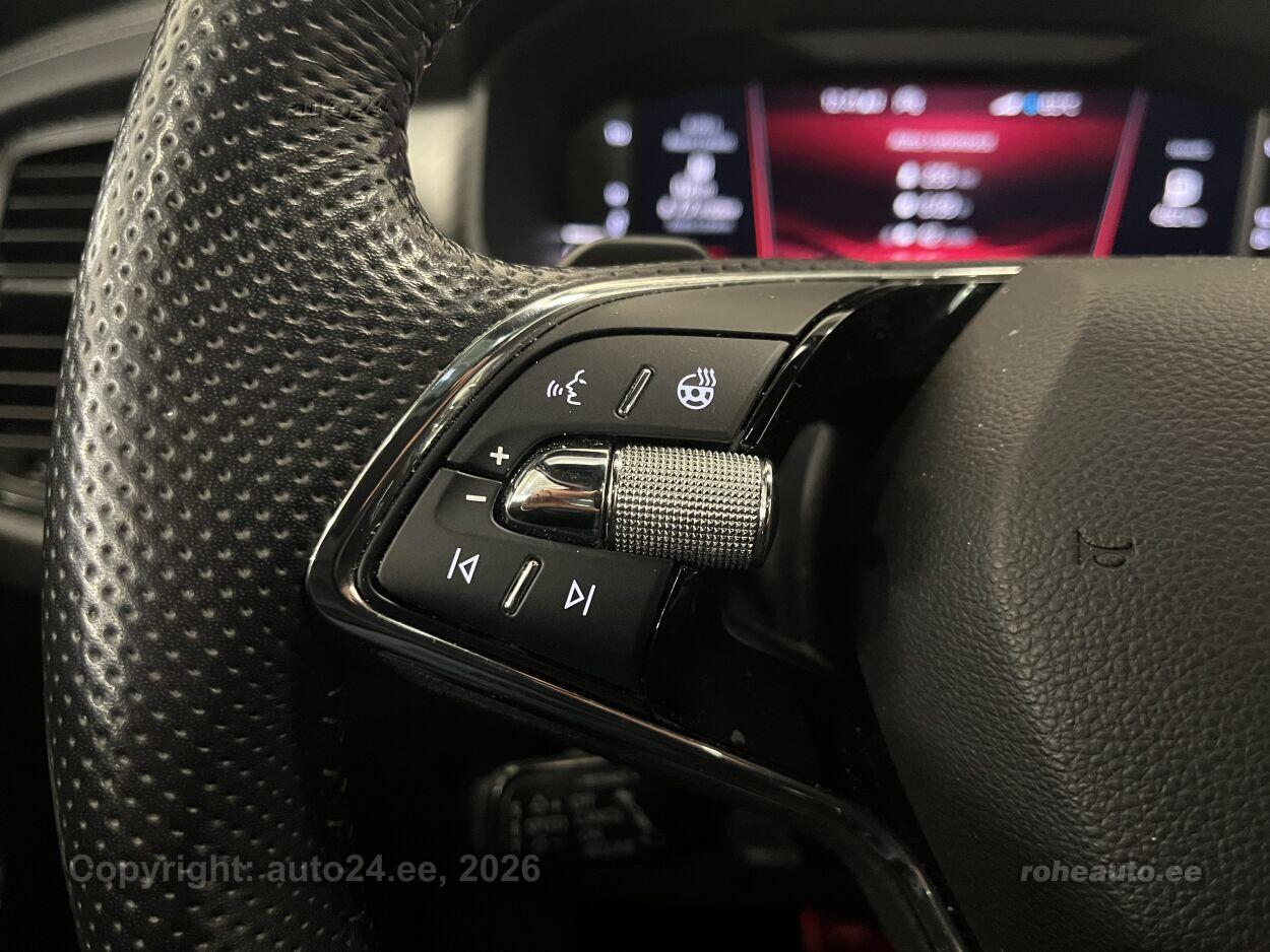 kliimaautomaatik, automaatpidurdussüsteem, roolivõimendi, kesklukustus (puldiga), ABS pidurid, turvapadi, elektrooniline seisupidur, turvakardinad, immobilisaator, signalisatsioon, lisapidurituli, stabiilsuskontroll, kokkupõrget ennetav pidurisüsteem, sõiduraja hoidmise abisüsteem, pidurdusjõukontroll, liiklusmärkide tuvastus ja kuvamine, pimenurga hoiatus, veojõukontroll, turvavööde eelpingutid esiistmetel, vihmasensor, ISOFIX lasteistme kinnitus, kõrvalistuja turvapadja väljalülitamise võimalus, automaatne paigalseismise funktsioon / mägistardi abi, juhi väsimuse tuvastamise süsteem, jahutusega kindalaegas, udutuled, LED (päevatuled, tagatuled, lähituled, kaugtuled), päevasõidutulede automaatne lülitus, kaugtulede ümberlülitamise assistent, talverehvid, valuveljed, autoga antakse kaasa (suverehvid), rehvirõhu kontrollsüsteem, reguleeritav roolisammas (kõrgus ja sügavus), multifunktsionaalne rool, nahkkattega rool, sportrool, soojendusega rool, käiguvahetus roolilt, CANTON stereo (USB pesaga, mälukaardi pesaga, originaal), helivõimendi, kõlarid, subwoofer, Apple CarPlay, Android Auto, ekraan (ees), navigatsiooniseade, autokompuuter, käed vabad süsteem, iluliistud salongis, jalamatid, topsihoidjad, nahkkattega käigukanginupp, tume laepolster, poolnahkpolster, elektriliselt reguleeritavad istmed (mäludega), istmed reguleeritava kõrgusega (juhiiste, kõrvalistuja iste), 4x istmesoojendused, käetugi ees (laekaga), tagaistme seljatugi allaklapitav, sportistmed, elektrilised välispeeglid (soojendusega, kokkuklapitavad), 4x elektrilised akende tõstukid, toonitud klaasid, katuseluuk (klaasist, elektriline), panoraamkatus (klaasist), püsikiiruse hoidja (eessõitjaga distantsi hoidev), peeglid päikesesirmides (valgustusega), 2x rulookardinad ustel, salongi eelsoojendus, salongi lisasoojendus, automaatselt tumenevad peeglid (sees, väljas), kohtvalgustid, parkimisandurid (ees, taga), parkimiskaamera, Coming-/Leaving-Home funktsioon, digitaalne näidikutepaneel, tagavararatas, võtmeta avamine, võtmeta käivitus, start-stopp süsteem, 12v pistikupesad, pakiruumi avamine elektriliselt (puldist), pagasikate, veokonks (elektriline), kaubakinnituse konksud, elektrilise soojendusega esiklaas, tagaklaasi soojendus, välistemperatuuri näidik, esi- ja tagarataste porikummid, tagaklaasi puhasti, Elektrilise lukustussüsteemiga haagisekonks, Soojendusega tagaistmed (kaks äärmist istet), Aut. tumenev salongipeegel koos USB-C liidesega laekonsoolis, Musta värvi Suediaga vooderdatud salongilagi, Lisavõti, individuaalselt seadistatav, Lisagarantii: 50 000 km (garantiiperiood kokku 5 aastat / 150 000 km), Elektriliselt seadistatavad esiistmed, mälufunktsiooniga, Külgturvapadjad taga, Adaptiivne vedrustus (Adaptive Chassis Control) koos sõidurežiimi valikuga Driving Mode Selection ja Off-Road režiimiga, Elektriajamiga, toonklaasist katuseluuk, 3-tsooniline kliimaseade, Kaugjuhtimisega seisuküte, Ruumisäästev varuratas (145/85 R18), tungraud ja veljevõti, 20" valuveljed, antratsiithallid, rehvid 235/45 R20, asendavad standardvelgi + aktiivse rehvirõhu monitooringu süsteem rõhuanduriga igal rehvil, Soojendusega esiklaas + vihmasensor, Bluetooth telefonisüsteem telefonilaekaga keskkonsoolis (ühendus välisantenniga), juhtmeta laadimise funktsioon (Wireless Charging), Tagurduskaamera (pesuriga), Travel Assist High: adaptiivne kiirushoidik, adaptiivne sõidureas püsimise abisüsteem, liiklusmärkide tuvastus, parkimisabisüsteem, reavahetusabisüsteem, hädaolukorra abisüsteem, Uinakupakett 2: spetsiaalse kujundusega peatoed teises istmereas, kardinad tagumistel külgakendel, SunSet, mürasummutusega esimesed külgaknad, jalatoega põrandamatid taga, Audiosüsteem Canton: 4 kõlarit esiustes, 4 tagaustes, 1 keskel armatuurlauas, 1 aktiivbassikõlar pagasiruumis, digitaalne võimendi, koguvõimsus 575W, 230V pistik ja USB-C liides keskkonsooli tagaosas, Navigatsioonisüsteem Amundsen: 8" värviekraan, 2 USB-C liidest, internetiühenduse jagamine (Hotspot), Teise istmerea seljatugi pagasiruumist alla klapitav |