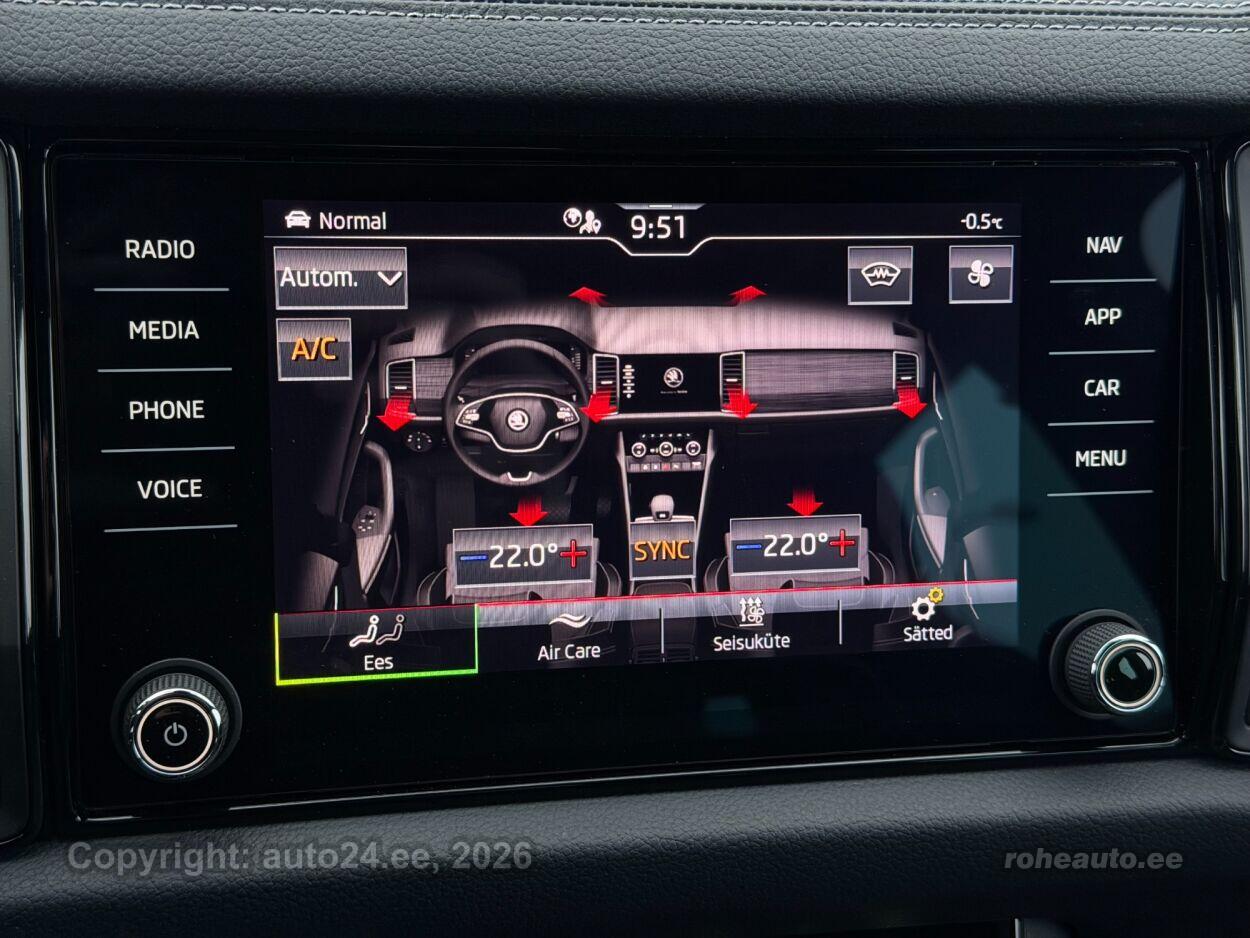 kliimaautomaatik, "Dynamic Steering" roolivõimendi (kiirustundlik), kesklukustus (puldiga), ABS pidurid, elektrooniline seisupidur, 6x turvapadi, turvakardinad, immobilisaator, lisapidurituli, stabiilsuskontroll, kokkupõrget ennetav pidurisüsteem, sõiduraja hoidmise abisüsteem, liiklusmärkide tuvastus ja kuvamine, veojõukontroll, vihmasensor, ISOFIX lasteistme kinnitus (taga), automaatne paigalseismise funktsioon / mägistardi abi, kõrvalistuja turvapadja väljalülitamise võimalus, juhi väsimuse tuvastamise süsteem, jahutusega kindalaegas, udutuled (eesmised, tagumine, kurvitule funktsiooniga), esitulede pesurid, LED (päevatuled, tagatuled, lähituled, kaugtuled), päevasõidutulede automaatne lülitus, kaugtulede ümberlülitamise assistent, kurvituled, talverehvid, valuveljed (20, Škoda "VEGA"), autoga antakse kaasa (suverehvid), rehvirõhu kontrollsüsteem, reguleeritav roolisammas (kõrgus ja sügavus), multifunktsionaalne rool, nahkkattega rool, sportrool, soojendusega rool, käiguvahetus roolilt, CANTON stereo (USB pesaga, originaal), helivõimendi, subwoofer, Apple CarPlay, Android Auto, ekraan (ees), navigatsiooniseade (kaardiga), autokompuuter, käed vabad süsteem, iluliistud salongis, jalamatid (veluurist), pagasiruumi matt, topsihoidjad (ees, taga), nahkkattega käigukanginupp, tume laepolster, poolnahkpolster, 1x elektriliselt reguleeritavad istmed (1x mäludega), istmed reguleeritava kõrgusega (juhiiste, kõrvalistuja iste), 4x istmesoojendused, reguleeritava kumerusega seljatugi (juhiiste, kõrvalistuja iste), käetugi ees (laekaga), tagaistme seljatugi allaklapitav, sportistmed, elektrilised välispeeglid (soojendusega, kokkuklapitavad, mäluga), 4x elektrilised akende tõstukid, toonitud klaasid, püsikiiruse hoidja (eessõitjaga distantsi hoidev), 2x peeglid päikesesirmides (valgustusega), ŠKODA puldi ja taimeriga mootori eelsoojendus, ŠKODA puldi ja taimeriga salongi eelsoojendus, automaatselt tumenevad peeglid (sees, väljas), kohtvalgustid, parkimisandurid (ees, taga), automaatse parkimise funktsioon, parkimiskaamera, Coming-/Leaving-Home funktsioon, digitaalne näidikutepaneel, telefoni juhtmevaba laadimine, tagaspoiler, esispoiler, spoileriring, tagavararatas, võtmeta avamine, võtmeta käivitus, 12v pistikupesad, reisiarvesti, pakiruumi avamine elektriliselt (jalaviipega, puldist), pagasikate, katusereelingud, kaubakinnituse konksud, veokonks (elektriline, teisaldatav), elektrilise soojendusega esiklaas, tagaklaasi soojendus, välistemperatuuri näidik, aknapesupihustite sulatus, topeltklaasid, tagaklaasi puhasti, 230V voolupesa, Uinakupakett tagaistujatele |