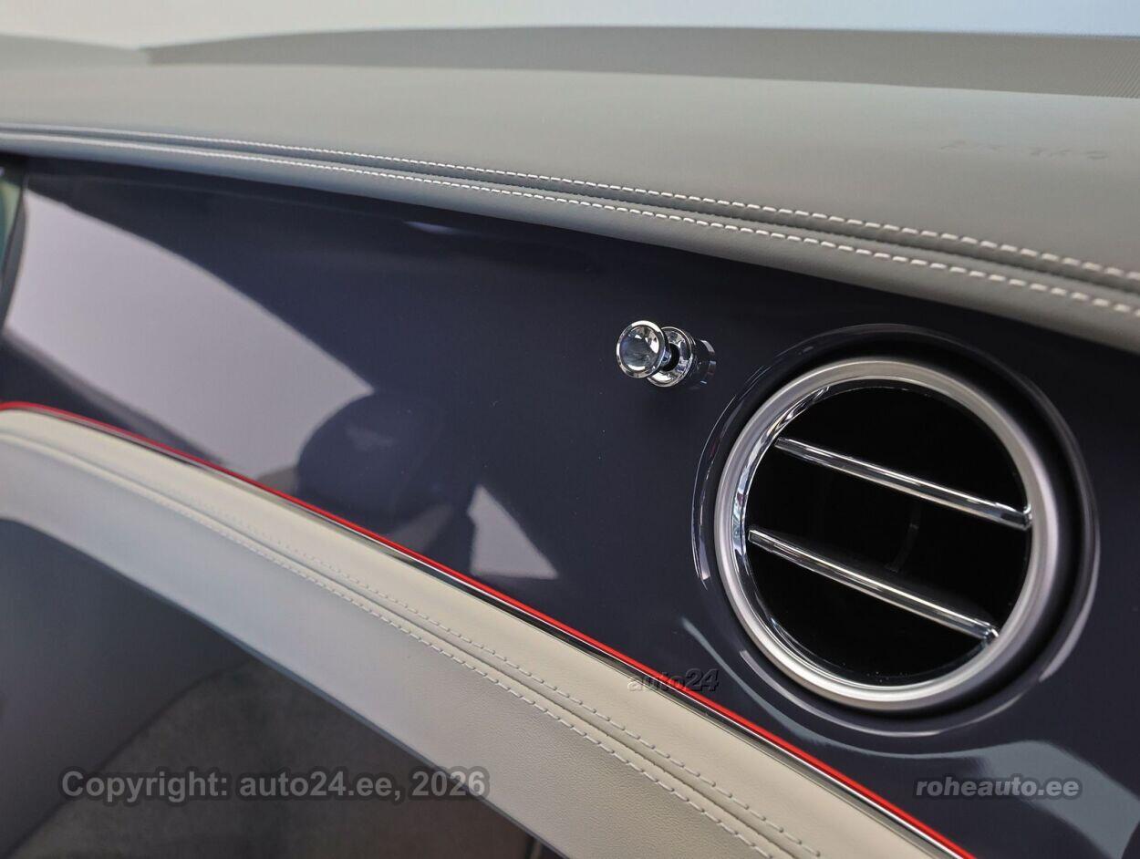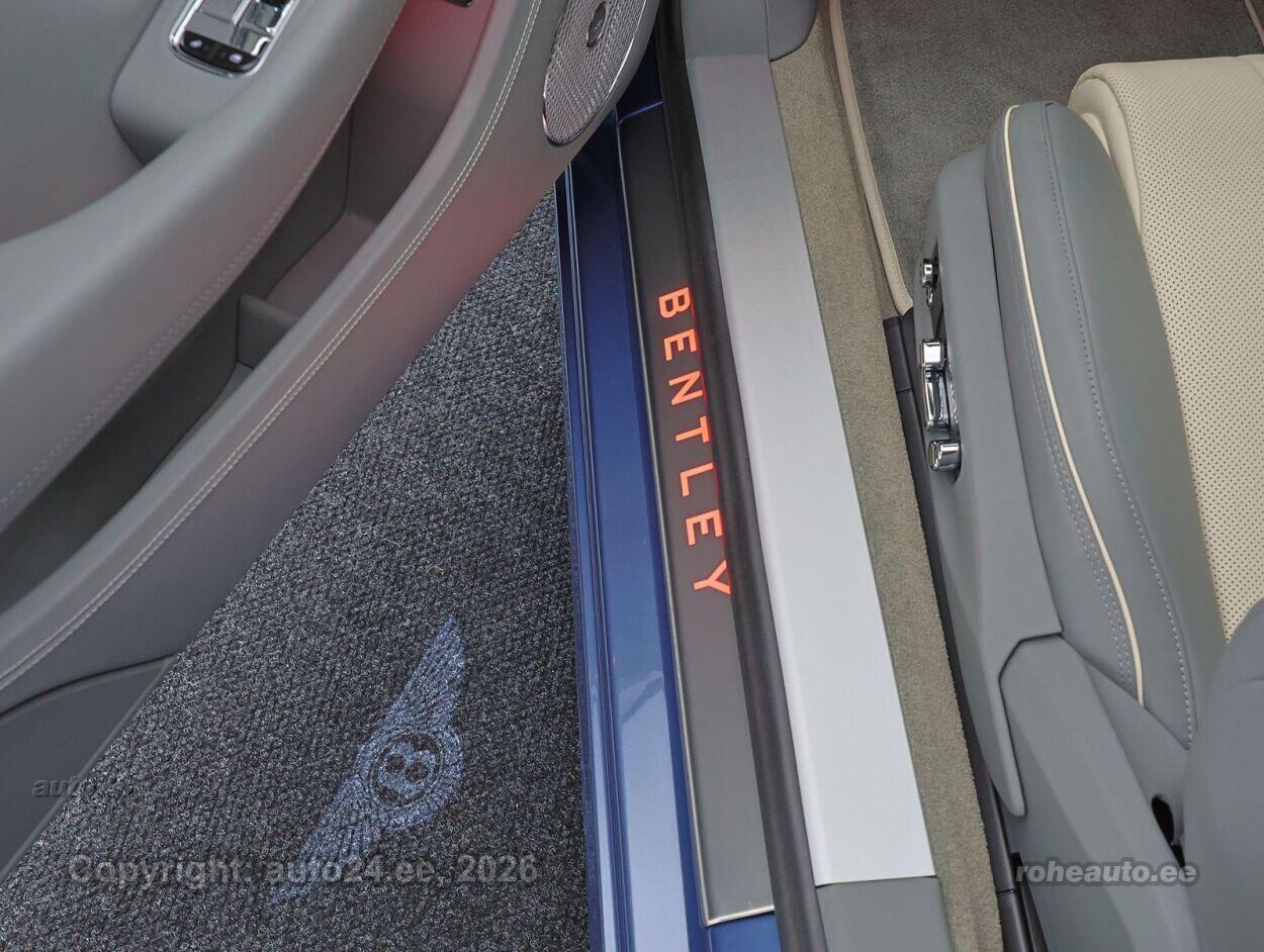kliimaautomaatik, roolivõimendi (kiirustundlik), kesklukustus (puldiga), ABS pidurid, elektrooniline seisupidur, signalisatsioon (kaldeanduriga, mahuanduriga), stabiilsuskontroll, kokkupõrget ennetav pidurisüsteem, pidurdusjõukontroll, sõiduraja hoidmise abisüsteem, sõiduraja vahetamise abisüsteem, liiklusmärkide tuvastus ja kuvamine, öise nägemise assistent, pimenurga hoiatus, veojõukontroll, vihmasensor, automaatne paigalseismise funktsioon / mägistardi abi, mägipidur, valgustuspakett, udutuled (eesmised, tagumine), LED (päevatuled, tagatuled, lähituled, kaugtuled), päevasõidutulede automaatne lülitus, kaugtulede ümberlülitamise assistent, suverehvid, rehvirõhu kontrollsüsteem, reguleeritav roolisammas (kõrgus ja sügavus, elektriliselt, mäluga), soojendusega rool, käiguvahetus roolilt, stereo (USB pesaga, originaal), Apple CarPlay, Android Auto, ekraan (ees), navigatsiooniseade, käed vabad süsteem, iluliistud salongis, jalamatid (tekstiilist), topsihoidjad (ees, taga), nahkpolster, elektriliselt reguleeritavad istmed, istmesoojendused, reguleeritava kumerusega seljatugi (kõrvalistuja iste, juhiiste), massaažifunktsiooniga istmed (juhil, kõrvalistmel), ventileeritavad istmed (ees), elektrilised välispeeglid (soojendusega, kokkuklapitavad, mäluga), elektrilised akende tõstukid, püsikiiruse hoidja (eessõitjaga distantsi hoidev), integreeritud väravapult, automaatse parkimise funktsioon, parkimisandurid (ees, taga), parkimiskaamera (360), Coming-/Leaving-Home funktsioon, digitaalne näidikutepaneel, info kuvamine esiklaasile, telefoni juhtmevaba laadimine, võtmeta avamine, võtmeta käivitus, uste servosulgurid, start-stopp süsteem, õhkvedrustus, reguleeritav vedrustus (elektriliselt, jäikus), pakiruumi avamine elektriliselt (puldist, jalaviipega), elektrilise soojendusega esiklaas, välistemperatuuri näidik, Sportpedaalid, Garaažiukse kaugavamise süsteem, Soojenduse, kolme kodara ja kahetoomilise nahkkattega rool, Naim for Bentley, Pakett Touring - kohanduv kiirushoidik koos sõidurajal püsimise süsteemiga, esiklaasinäidik, öönägemissüsteem Night Vision, prognoosiv adaptiivne kiirushoidik, Pakett Mood Lighting - Bentley valgustatud läveliistud (muudetava värviga), interjööri meeleoluvalgustus, Bentley pöörlev ekraan, 22" kümne painutatud kodaraga veljed – hõbedaks värvitud ja läiketöötlusega, Soojendusega esiklaas |