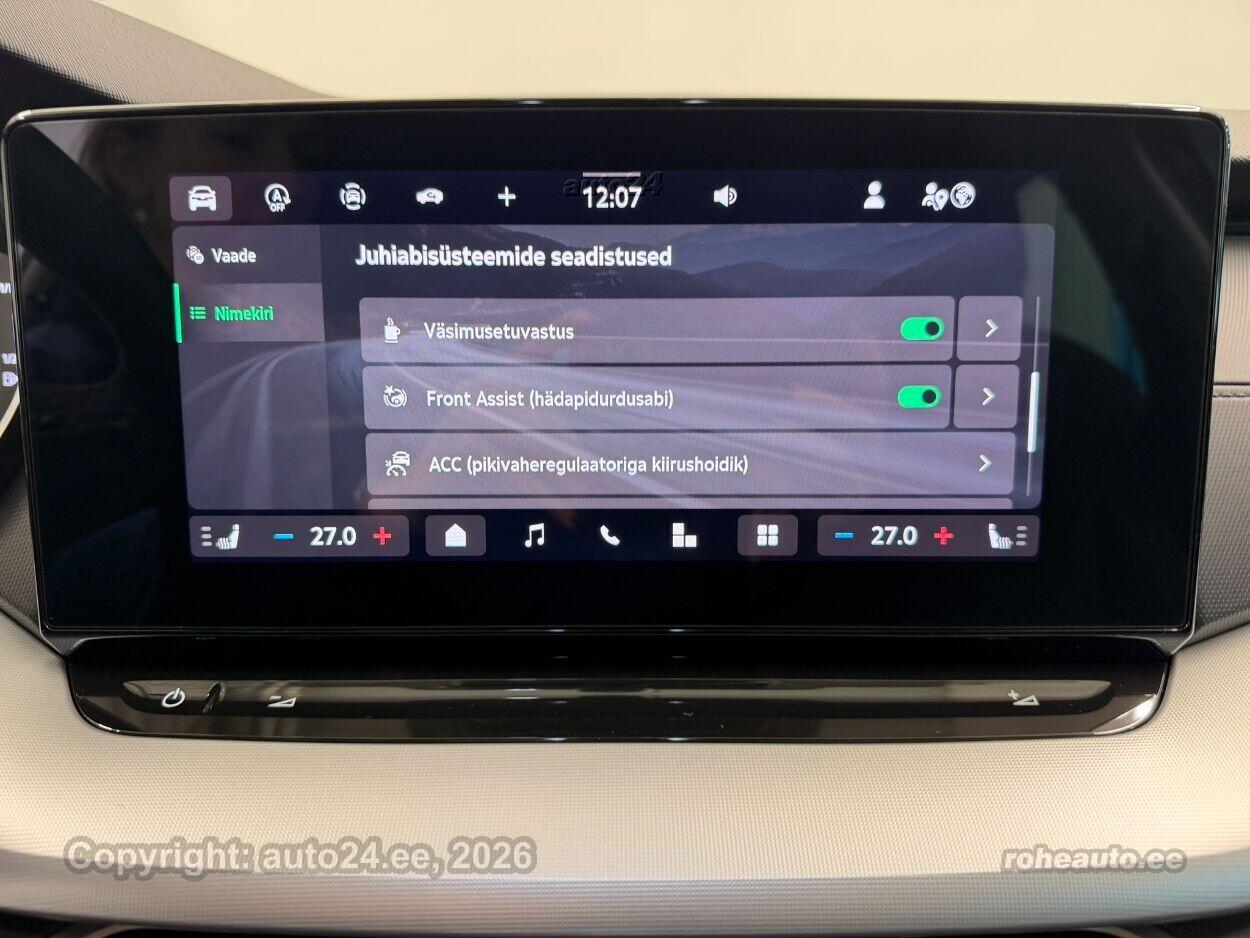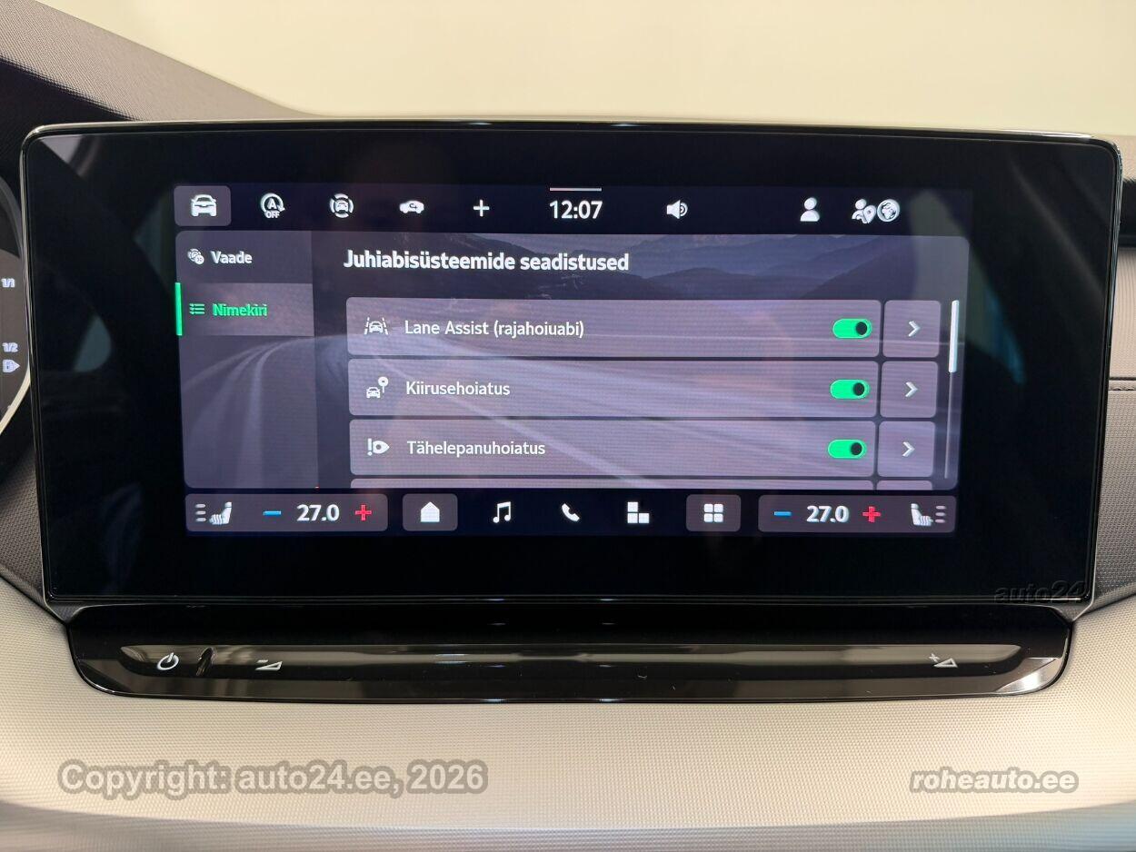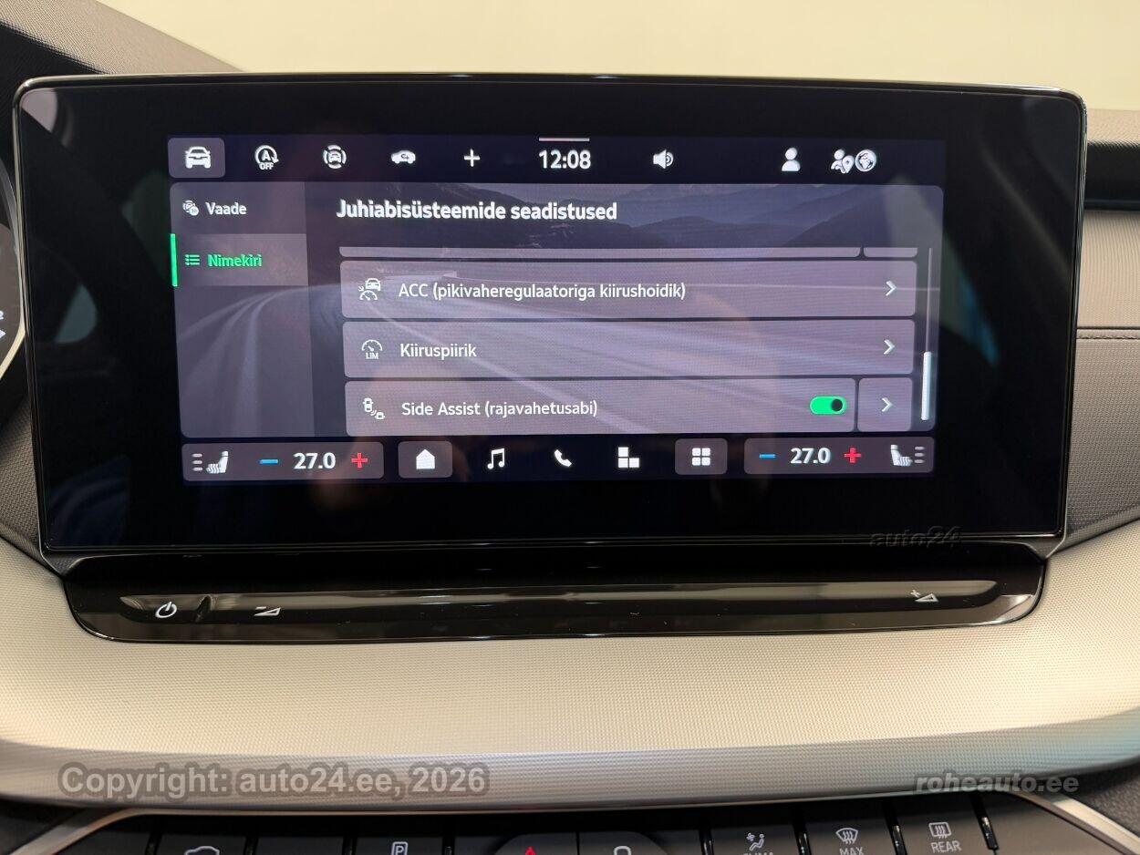 kliimaautomaatik, automaatpidurdussüsteem, roolivõimendi, kesklukustus, ABS pidurid, elektrooniline seisupidur, turvapadi, turvakardinad, immobilisaator, signalisatsioon, lisapidurituli, kokkupõrget ennetav pidurisüsteem, stabiilsuskontroll, jalakäija ohutusfunktsiooniga kapott, pidurdusjõukontroll, sõiduraja hoidmise abisüsteem, liiklusmärkide tuvastus ja kuvamine, pimenurga hoiatus, veojõukontroll, vihmasensor, ISOFIX lasteistme kinnitus (ees, taga), kõrvalistuja turvapadja väljalülitamise võimalus, automaatne paigalseismise funktsioon / mägistardi abi, juhi väsimuse tuvastamise süsteem, LED (päevatuled, tagatuled, lähituled, kaugtuled), esitulede pesurid, päevasõidutulede automaatne lülitus, kaugtulede ümberlülitamise assistent, suverehvid, valuveljed, reguleeritav roolisammas (kõrgus ja sügavus), multifunktsionaalne rool, nahkkattega rool, soojendusega rool, käiguvahetus roolilt, stereo (originaal), kõlarid, Apple CarPlay, Android Auto, ekraan (ees), käed vabad süsteem, iluliistud salongis, taskud esiistmete seljatugedes, jalamatid (tekstiilist, kummist), topsihoidjad, tekstiilpolster, istmed reguleeritava kõrgusega (juhiiste, kõrvalistuja iste), istmesoojendused, reguleeritava kumerusega seljatugi (kõrvalistuja iste, juhiiste), käetugi ees, käetugi taga, tagaistme seljatugi allaklapitav, elektrilised välispeeglid (soojendusega, kokkuklapitavad), elektrilised akende tõstukid, toonitud klaasid, püsikiiruse hoidja (eessõitjaga distantsi hoidev), peeglid päikesesirmides, kohtvalgustid, parkimisandurid (ees, taga), parkimiskaamera, Coming-/Leaving-Home funktsioon, digitaalne näidikutepaneel, telefoni juhtmevaba laadimine, võtmeta avamine, võtmeta käivitus, start-stopp süsteem, pakiruumi avamine elektriliselt (puldist, jalaviipega), pagasikate, katusereelingud, kaubakinnituse konksud, elektrilise soojendusega esiklaas, tagaklaasi soojendus, välistemperatuuri näidik, tagaklaasi puhasti, Maatriks-funktsionaalsusega LED-esilaternad (valgusvihu jaotust, kaugust ja suunda reguleeritakse automaatselt), esilaternate pesurid, Ettevalmistus haagisekonksu paigaldamiseks (ilma tootjapoolse ettevalmistuseta ei ole hilisem konksu paigaldamine võimalik), Adaptiivne püsikiirushoidik, Lisagarantii, 50 000 km (garantiiperiood kokku 5 aastat / 150 000 km), 2 kodaraga soojendusega multifunktsionaalne nahkrool DSG käiguvahetusega roolilt, Soojendusega esiklaas (integreeritud soojenduskile) |