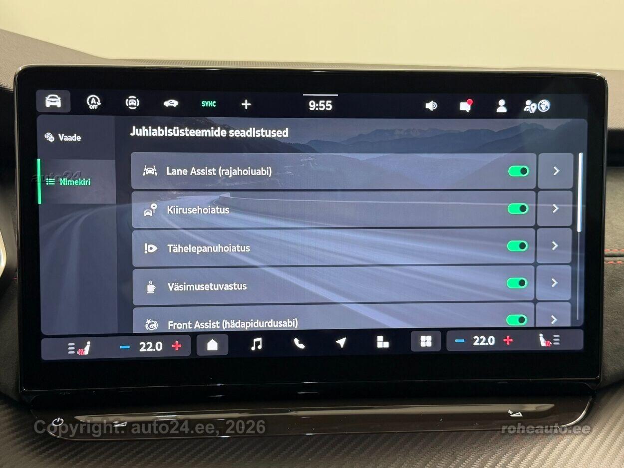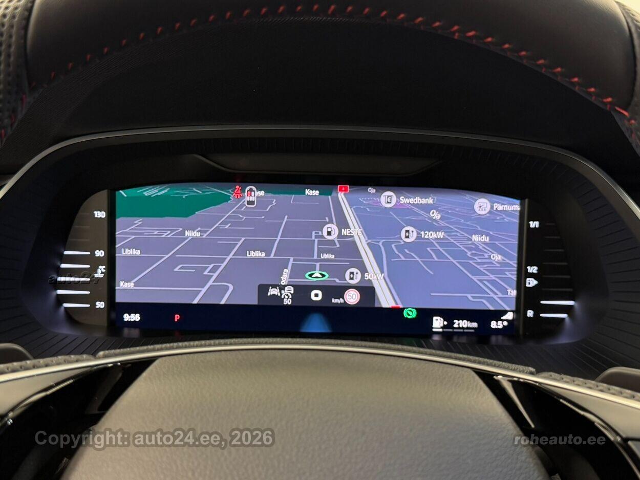 kliimaautomaatik, automaatpidurdussüsteem, roolivõimendi (kiirustundlik), kesklukustus, ABS pidurid, elektrooniline seisupidur, turvapadi, turvakardinad, immobilisaator, signalisatsioon, lisapidurituli, kokkupõrget ennetav pidurisüsteem, stabiilsuskontroll, jalakäija ohutusfunktsiooniga kapott, pidurdusjõukontroll, sõiduraja hoidmise abisüsteem, liiklusmärkide tuvastus ja kuvamine, pimenurga hoiatus, veojõukontroll, vihmasensor, ISOFIX lasteistme kinnitus (ees, taga), automaatne paigalseismise funktsioon / mägistardi abi, kõrvalistuja turvapadja väljalülitamise võimalus, juhi väsimuse tuvastamise süsteem, valgustuspakett, esitulede pesurid, LED (päevatuled, tagatuled, lähituled, kaugtuled), päevasõidutulede automaatne lülitus, kaugtulede ümberlülitamise assistent, suverehvid, valuveljed, reguleeritav roolisammas (kõrgus ja sügavus), multifunktsionaalne rool, nahkkattega rool, sportrool, soojendusega rool, käiguvahetus roolilt, stereo (originaal), kõlarid, subwoofer, Apple CarPlay, Android Auto, ekraan (ees), navigatsiooniseade, käed vabad süsteem, iluliistud salongis, taskud esiistmete seljatugedes, jalamatid (tekstiilist, kummist), topsihoidjad, tume laepolster, nahkpolster, 2x elektriliselt reguleeritavad istmed (2x mäludega), istmed reguleeritava kõrgusega (juhiiste, kõrvalistuja iste), reguleeritava kumerusega seljatugi, istmesoojendused, massaažifunktsiooniga istmed (juhil, kõrvalistmel), käetugi ees, tagaistme seljatugi allaklapitav, sportistmed, elektrilised välispeeglid (soojendusega, kokkuklapitavad, mäluga), elektrilised akende tõstukid, toonitud klaasid, püsikiiruse hoidja (eessõitjaga distantsi hoidev), peeglid päikesesirmides, automaatselt tumenevad peeglid, uste sisevalgustus, kohtvalgustid, parkimisandurid (ees, taga), parkimiskaamera (360), Coming-/Leaving-Home funktsioon, digitaalne näidikutepaneel, telefoni juhtmevaba laadimine, tagavararatas, võtmeta avamine, võtmeta käivitus, start-stopp süsteem, pakiruumi avamine elektriliselt (jalaviipega, puldist), pagasikate, pagasi võrk pakiruumis, elektrilise soojendusega esiklaas, tagaklaasi soojendus, aknapesupihustite sulatus, välistemperatuuri näidik, topeltklaasid, Audiosüsteem Canton: 12 kõlarit, digitaalne võimendi, Kaameratesüsteem Area View (neli kaamerat tagavad 360° vaate auto lähiümbrusest), Interjöör RS Suedia: musta värvi sportistmed ees Suedia/nahk, elektriliselt seadistatavad, mälu- ja massaažifunktsiooniga, musta värvi salongilagi, salongi LED-valgustuse pakett, Ruumisäästev varuratas (rehv 145/85 R18), tungraud ja veljevõti, 18" valuveljed Comet, mustad/harjatud, rehvid 225/45 R18, Täiendava mürasummutusega esimesed külgaknad |