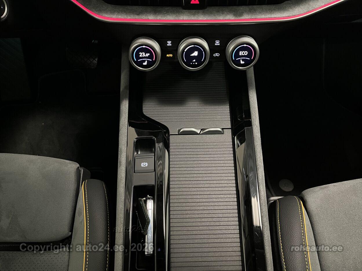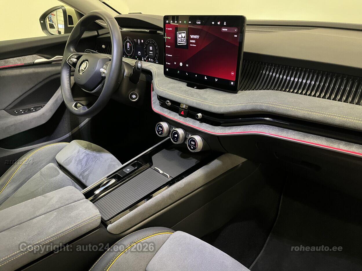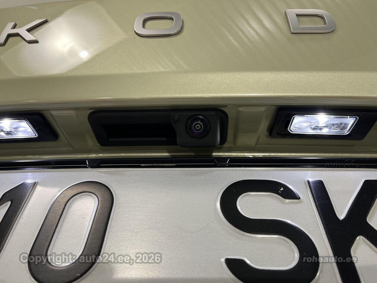 kliimaautomaatik, automaatpidurdussüsteem, roolivõimendi, kesklukustus (puldiga), ABS pidurid, turvapadi, elektrooniline seisupidur, immobilisaator, signalisatsioon, lisapidurituli, kokkupõrget ennetav pidurisüsteem, stabiilsuskontroll, pidurdusjõukontroll, sõiduraja hoidmise abisüsteem, liiklusmärkide tuvastus ja kuvamine, veojõukontroll, turvavööde eelpingutid esiistmetel, vihmasensor, ISOFIX lasteistme kinnitus, automaatne paigalseismise funktsioon / mägistardi abi, juhi väsimuse tuvastamise süsteem, udutuled, LED (päevatuled, tagatuled, lähituled, kaugtuled), päevasõidutulede automaatne lülitus, kaugtulede ümberlülitamise assistent, talverehvid (lamellrehvid), valuveljed, rehvirõhu kontrollsüsteem, reguleeritav roolisammas (kõrgus ja sügavus), multifunktsionaalne rool, nahkkattega rool, soojendusega rool, käiguvahetus roolilt, stereo (USB pesaga, mälukaardi pesaga, originaal), kõlarid, Apple CarPlay, Android Auto, ekraan (ees), navigatsiooniseade, autokompuuter, käed vabad süsteem, iluliistud salongis, jalamatid, topsihoidjad, Suedia poolnahkpolster, elektriliselt reguleeritavad istmed (mäludega), istmed reguleeritava kõrgusega (juhiiste, kõrvalistuja iste), 4x istmesoojendused, massaažifunktsiooniga istmed (juhil, kõrvalistmel), käetugi ees (laekaga), tagaistme seljatugi allaklapitav, Comfort istmed, elektrilised välispeeglid (soojendusega, kokkuklapitavad), 4x elektrilised akende tõstukid, toonitud klaasid, püsikiiruse hoidja (eessõitjaga distantsi hoidev), peeglid päikesesirmides (valgustusega), eraldi kliimaseade tagaistmetele, automaatselt tumenevad peeglid, uste sisevalgustus, kohtvalgustid, parkimisandurid (ees, taga), parkimiskaamera (360), Coming-/Leaving-Home funktsioon, digitaalne näidikutepaneel, võtmeta avamine, võtmeta käivitus, start-stopp süsteem, 12v pistikupesad, pakiruumi avamine elektriliselt (puldist), pagasikate, kaubakinnituse konksud, elektrilise soojendusega esiklaas, tagaklaasi soojendus, välistemperatuuri näidik, esi- ja tagarataste porikummid, tagaklaasi puhasti, Kroomitud külgakende liistud + hõbehallid katusereelingud, Interjöör Lodge: istmekatted hall Suedia, elektriliselt seadistatavad nimmetoed ja seljatoe kaldenurk, massaažifunktsioon, Kollane metallik, Ice Tea Yellow, Launch pakett: mürasummutusega esimesed ja tagumised külgaknad, Škoda Navigation, 13" puutetundlik värviekraan, Area View, Intelligent Park Assist, 18" valuveljed Bosona Aero, rehvid 235/45 R18 |