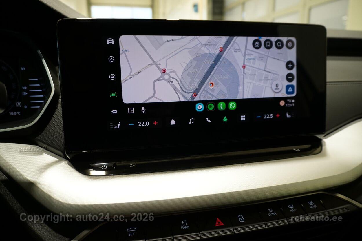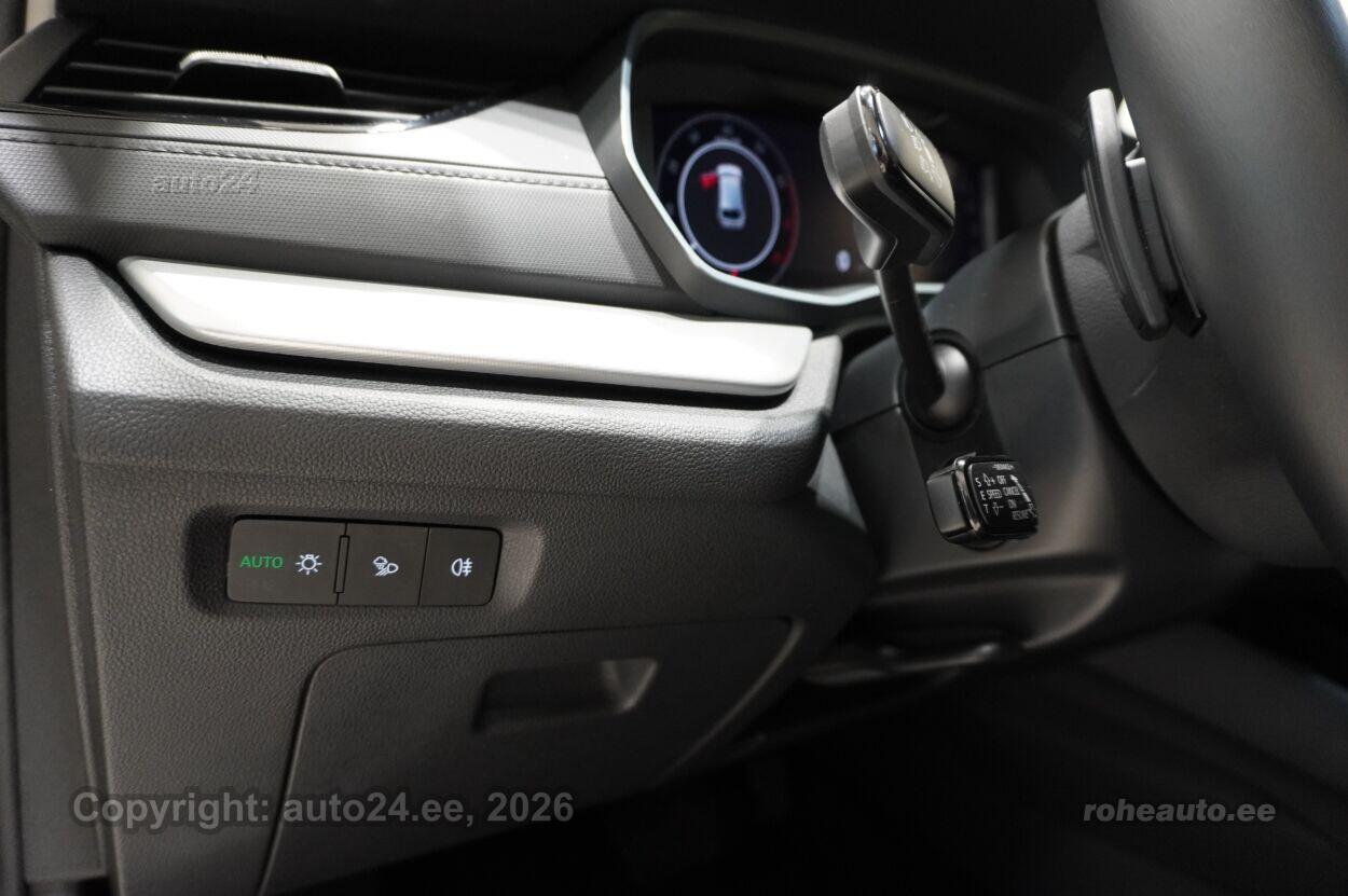 kliimaautomaatik, roolivõimendi (kiirustundlik), kesklukustus (puldiga), ABS pidurid, elektrooniline seisupidur, turvapadi, immobilisaator, signalisatsioon (kaldeanduriga, mahuanduriga), lisapidurituli, stabiilsuskontroll, kokkupõrget ennetav pidurisüsteem, pidurdusjõukontroll, sõiduraja hoidmise abisüsteem, liiklusmärkide tuvastus ja kuvamine, veojõukontroll, vihmasensor, ISOFIX lasteistme kinnitus (ees, taga), kõrvalistuja turvapadja väljalülitamise võimalus, automaatne paigalseismise funktsioon / mägistardi abi, juhi väsimuse tuvastamise süsteem, udutuled (eesmised, tagumine), LED (päevatuled, tagatuled, lähituled, kaugtuled), esitulede pesurid, päevasõidutulede automaatne lülitus, kaugtulede ümberlülitamise assistent, talverehvid (lamellrehvid), valuveljed, autoga antakse kaasa (suverehvid), rehvirõhu kontrollsüsteem, reguleeritav roolisammas (kõrgus ja sügavus), multifunktsionaalne rool, nahkkattega rool, soojendusega rool, käiguvahetus roolilt, stereo (originaal), kõlarid, Apple CarPlay, Android Auto, ekraan (ees), autokompuuter, käed vabad süsteem, iluliistud salongis, jalamatid (tekstiilist), pagasiruumi matt, topsihoidjad (ees, taga), tekstiilpolster, istmed reguleeritava kõrgusega (juhiiste, kõrvalistuja iste), 2x istmesoojendused, käetugi ees (laekaga), käetugi taga, tagaistme seljatugi allaklapitav, elektrilised välispeeglid (soojendusega, kokkuklapitavad), 4x elektrilised akende tõstukid, toonitud klaasid, püsikiiruse hoidja (eessõitjaga distantsi hoidev), kohtvalgustid, parkimisandurid (ees, taga), parkimiskaamera, Coming-/Leaving-Home funktsioon, digitaalne näidikutepaneel, telefoni juhtmevaba laadimine, võtmeta avamine, võtmeta käivitus, start-stopp süsteem, 12v pistikupesad, reisiarvesti, pakiruumi avamine elektriliselt (jalaviipega, puldist), pagasikate, katusereelingud, kaubakinnituse konksud, elektrilise soojendusega esiklaas, tagaklaasi soojendus, välistemperatuuri näidik, rehviparanduskomplekt, esi- ja tagarataste porikummid, tagaklaasi puhasti, Maatriks-funktsionaalsusega LED-esilaternad, eslaternate pesurid koos klaasipesuvedeliku taseme indikaatoriga, 2-kodaraga soojendusega nahkrool raadio ja telefoni juhtimise ning DSG käiguvahetusega roolilt, ainult koos DSG-käigukastiga, Soojendusega esiklaas (integreeritud soojenduskile) |