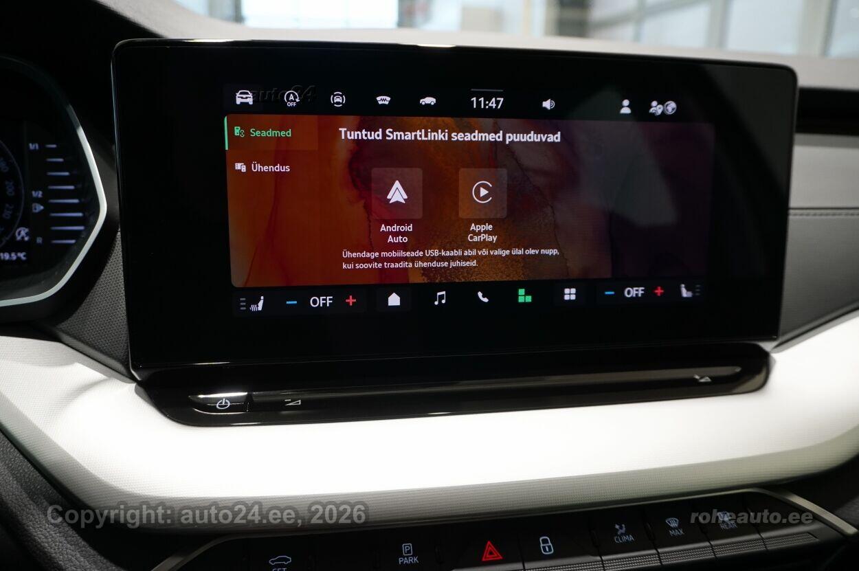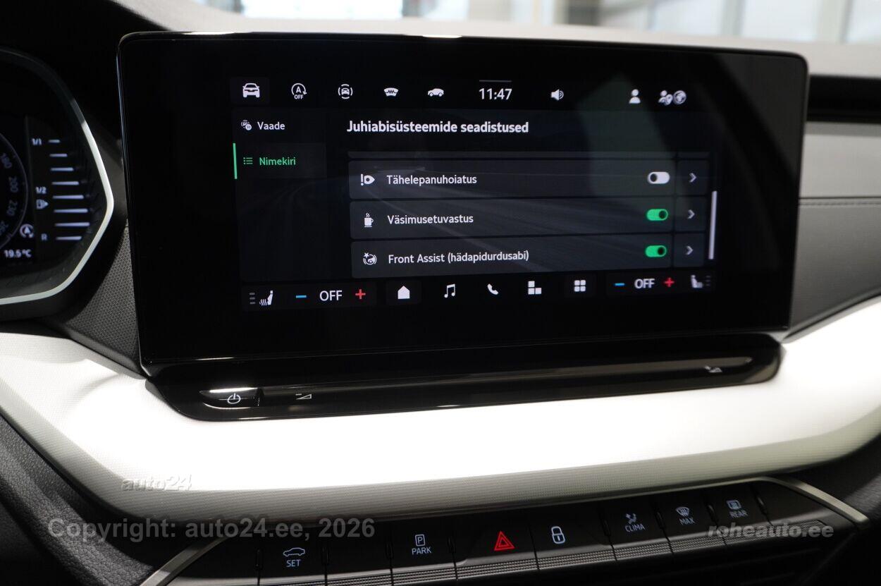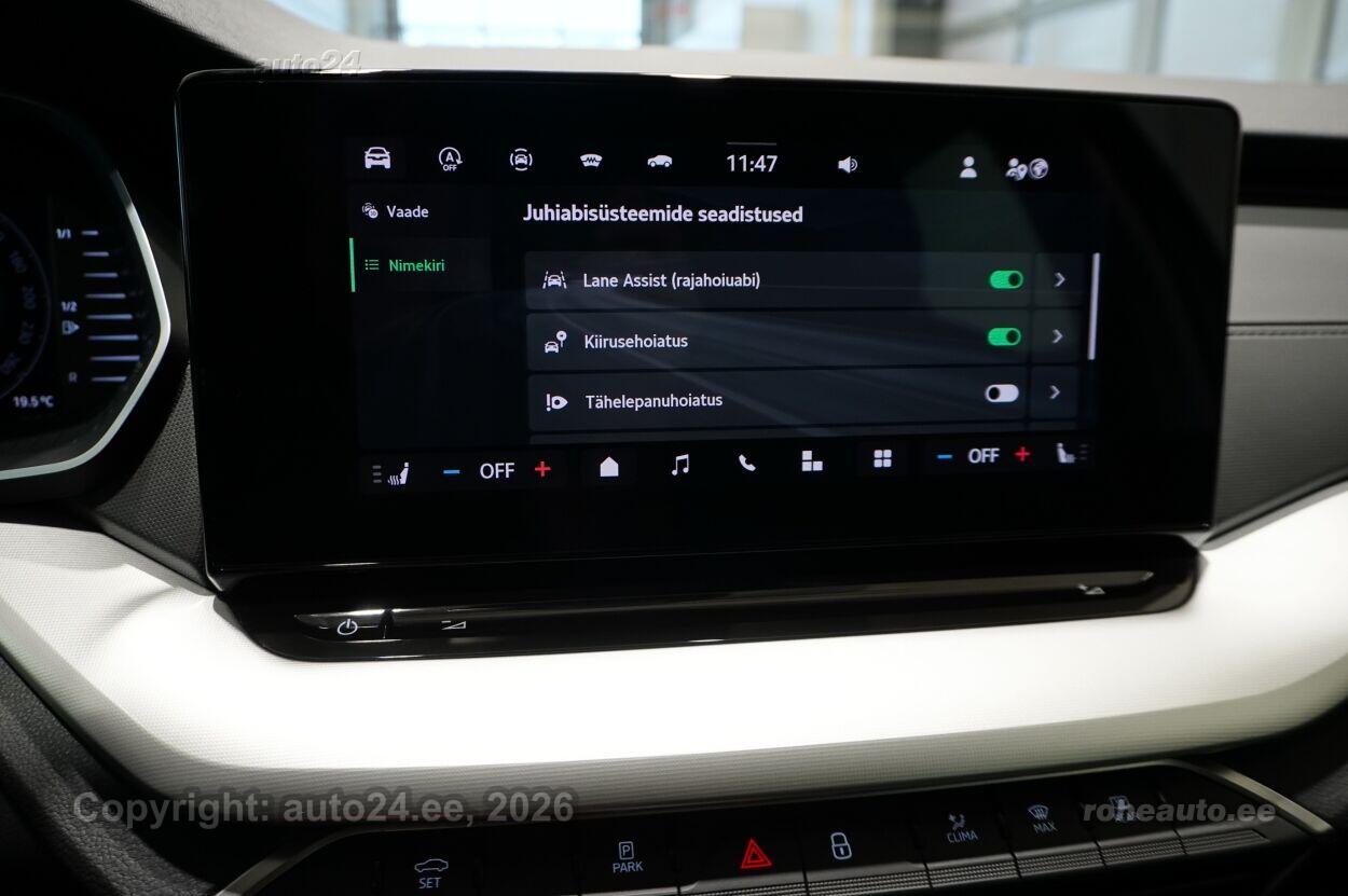 kliimaautomaatik, automaatpidurdussüsteem, roolivõimendi (kiirustundlik), kesklukustus (puldiga), ABS pidurid, elektrooniline seisupidur, turvapadi, turvakardinad, immobilisaator, signalisatsioon (kaldeanduriga, mahuanduriga), lisapidurituli, stabiilsuskontroll, kokkupõrget ennetav pidurisüsteem, pidurdusjõukontroll, sõiduraja hoidmise abisüsteem, liiklusmärkide tuvastus ja kuvamine, veojõukontroll, vihmasensor, ISOFIX lasteistme kinnitus (taga), automaatne paigalseismise funktsioon / mägistardi abi, kõrvalistuja turvapadja väljalülitamise võimalus, juhi väsimuse tuvastamise süsteem, udutuled (tagumine), LED (päevatuled, tagatuled, lähituled, kaugtuled), päevasõidutulede automaatne lülitus, kaugtulede ümberlülitamise assistent, suverehvid, valuveljed, autoga antakse kaasa (talverehvid), rehvirõhu kontrollsüsteem, reguleeritav roolisammas (kõrgus ja sügavus), multifunktsionaalne rool, nahkkattega rool, soojendusega rool, käiguvahetus roolilt, stereo (USB pesaga, originaal), kõlarid, Apple CarPlay, Android Auto, ekraan (ees), autokompuuter, käed vabad süsteem, iluliistud salongis, taskud esiistmete seljatugedes, jalamatid (tekstiilist, kummist), topsihoidjad (ees, taga), tekstiilpolster, istmed reguleeritava kõrgusega (juhiiste, kõrvalistuja iste), istmesoojendused, käetugi ees (laekaga), käetugi taga, tagaistme seljatugi allaklapitav, elektrilised välispeeglid (soojendusega, kokkuklapitavad), elektrilised akende tõstukid, toonitud klaasid, püsikiiruse hoidja, peeglid päikesesirmides, kohtvalgustid, parkimisandurid (ees, taga), parkimiskaamera, Coming-/Leaving-Home funktsioon, digitaalne näidikutepaneel, tagavararatas, võtmeta avamine, võtmeta käivitus, start-stopp süsteem, 12v pistikupesad, reisiarvesti, pakiruumi avamine elektriliselt, pagasikate, katusereelingud, kaubakinnituse konksud, elektrilise soojendusega esiklaas, tagaklaasi soojendus, välistemperatuuri näidik, esi- ja tagarataste porikummid, tagaklaasi puhasti, 17" valuveljed Mensa Aero, rehvid 205/55 R17, Varuratas terasveljel, rehv 205/60 R16, 2-kodaraga soojendusega nahkrool raadio ja telefoni juhtimise ning DSG käiguvahetusega roolilt, Soojendusega esiklaas (integreeritud soojenduskile), Tagastange kaitsekleebis, Täis kütusepaak |