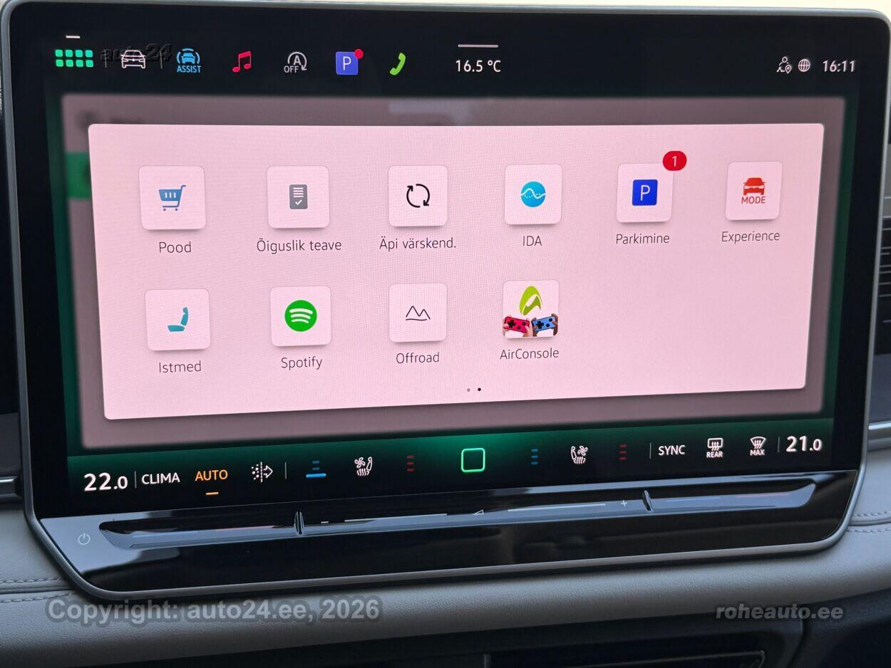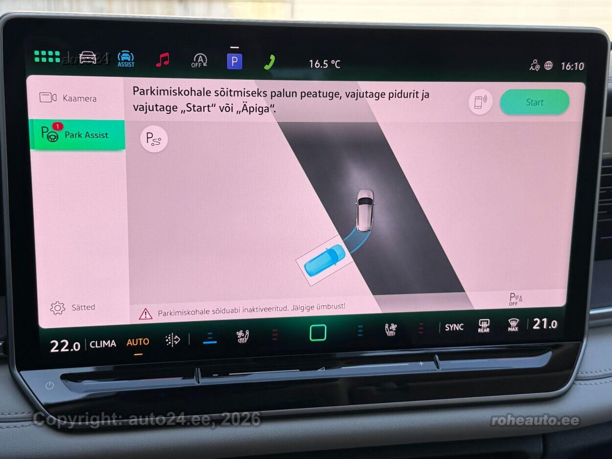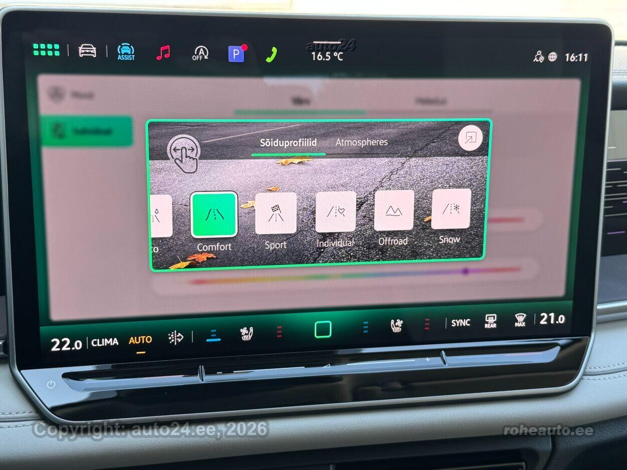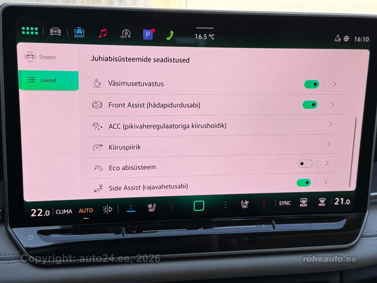 kliimaautomaatik, automaatpidurdussüsteem, roolivõimendi, kesklukustus (puldiga), ABS pidurid, elektrooniline seisupidur, turvapadi, turvakardinad, immobilisaator, signalisatsioon, lisapidurituli, stabiilsuskontroll, kokkupõrget ennetav pidurisüsteem, pidurdusjõukontroll, sõiduraja hoidmise abisüsteem, sõiduraja vahetamise abisüsteem, liiklusmärkide tuvastus ja kuvamine, pimenurga hoiatus, veojõukontroll, turvavööde eelpingutid esiistmetel, vihmasensor, ISOFIX lasteistme kinnitus, kõrvalistuja turvapadja väljalülitamise võimalus, automaatne paigalseismise funktsioon / mägistardi abi, juhi väsimuse tuvastamise süsteem, mägipidur, jahutusega kindalaegas, valgustuspakett, udutuled (eesmised, tagumine), LED (päevatuled, tagatuled, lähituled, kaugtuled), päevasõidutulede automaatne lülitus, kaugtulede ümberlülitamise assistent, kurvituled, talverehvid, valuveljed (R20, Vw), rehvirõhu kontrollsüsteem, reguleeritav roolisammas (kõrgus ja sügavus), multifunktsionaalne rool, nahkkattega rool, soojendusega rool, käiguvahetus roolilt, stereo (USB pesaga, originaal), Harman / Kardon helivõimendi, Harman / Kardon kõlarid, subwoofer, Apple CarPlay, Android Auto, ekraan, navigatsiooniseade, autokompuuter, käed vabad süsteem, iluliistud salongis (puitdekoor), taskud esiistmete seljatugedes, jalamatid (tekstiilist), topsihoidjad (ees, taga), nahkpolster, 2x elektriliselt reguleeritavad istmed (2x mäludega), istmed reguleeritava kõrgusega (juhiiste, kõrvalistuja iste), 2x istmesoojendused, reguleeritava kumerusega seljatugi (juhiiste, kõrvalistuja iste), massaažifunktsiooniga istmed (juhil, kõrvalistmel), ventileeritavad istmed (ees), käetugi ees (laekaga), käetugi taga, tagaistme seljatugi allaklapitav, Comfort istmed, elektrilised välispeeglid (soojendusega, kokkuklapitavad, mäluga), 4x elektrilised akende tõstukid, toonitud klaasid, püsikiiruse hoidja (eessõitjaga distantsi hoidev), 2x peeglid päikesesirmides (valgustusega), 2x rulookardinad ustel, eraldi kliimaseade tagaistmetele, automaatselt tumenevad peeglid, uste sisevalgustus, kohtvalgustid, parkimisandurid (ees, taga), automaatse parkimise funktsioon, parkimiskaamera (360), Coming-/Leaving-Home funktsioon, digitaalne näidikutepaneel, telefoni juhtmevaba laadimine, võtmeta avamine, võtmeta käivitus, start-stopp süsteem, 12v pistikupesad, reisiarvesti, reguleeritav vedrustus (jäikus), pakiruumi avamine elektriliselt (jalaviipega, puldist), pagasikate, katusereelingud, kaubakinnituse konksud, tagaklaasi soojendus, aknapesupihustite sulatus, välistemperatuuri näidik, topeltklaasid, tagaklaasi puhasti, IQ.HD Matrix LED tuled, Head-Up Display: Discover Pro Max, IQ.Drive juhiabipakett, Varenna nahaga istmed, soojendus, ventileerimise ja massaažiga |
