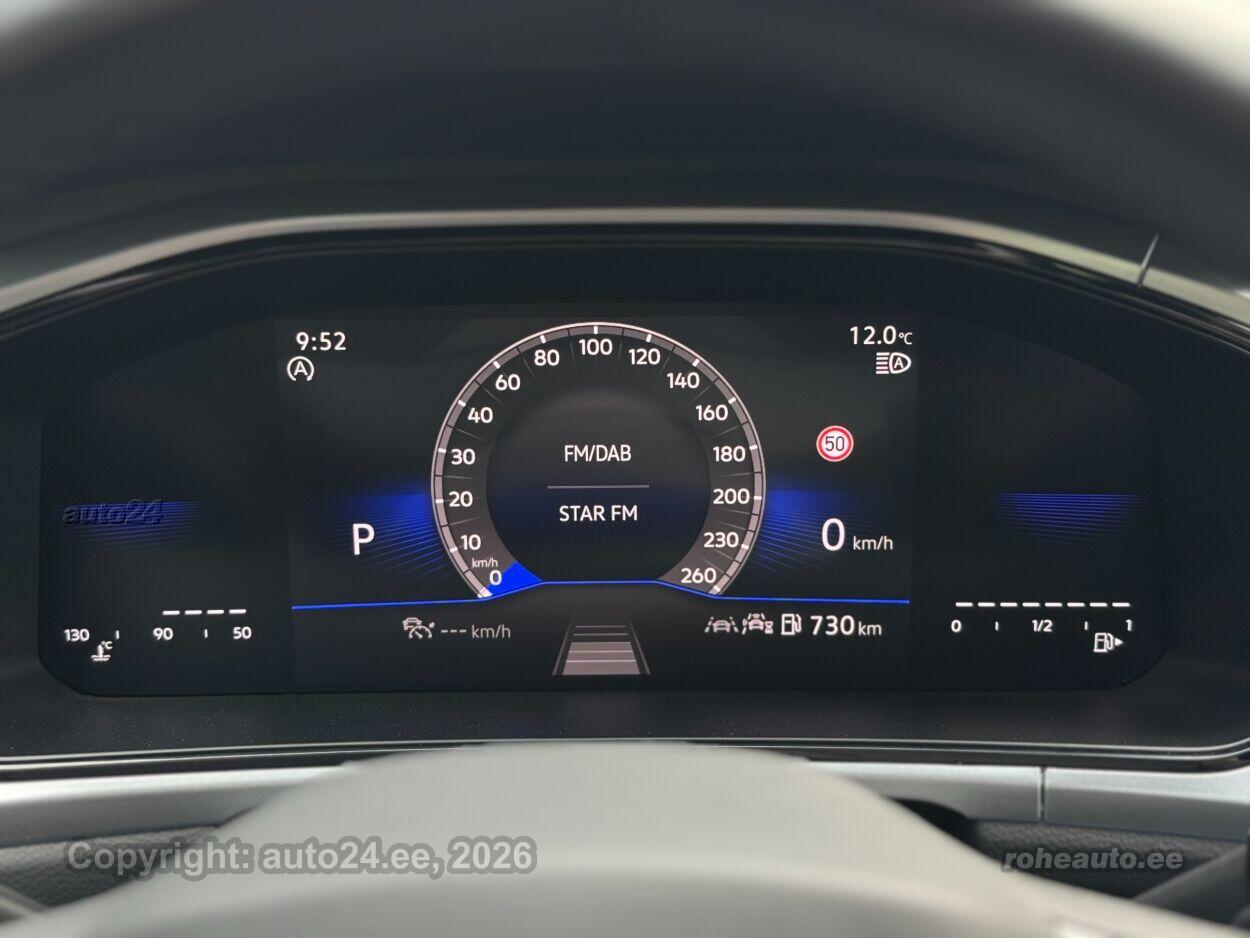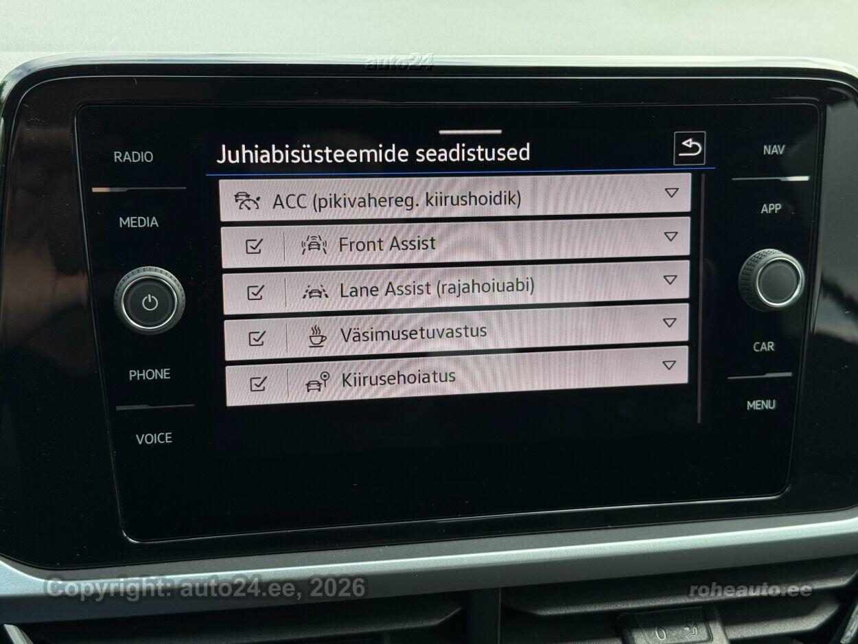 kliimaautomaatik, roolivõimendi (kiirustundlik), kesklukustus (puldiga), ABS pidurid, elektrooniline seisupidur, 4x turvapadi, turvakardinad, immobilisaator, signalisatsioon (kaldeanduriga, mahuanduriga), lisapidurituli, stabiilsuskontroll, kokkupõrget ennetav pidurisüsteem, pidurdusjõukontroll, sõiduraja hoidmise abisüsteem, liiklusmärkide tuvastus ja kuvamine, veojõukontroll, vihmasensor, ISOFIX lasteistme kinnitus (taga), kõrvalistuja turvapadja väljalülitamise võimalus, automaatne paigalseismise funktsioon / mägistardi abi, juhi väsimuse tuvastamise süsteem, udutuled (tagumine), LED (tagatuled, päevatuled, lähituled, kaugtuled), päevasõidutulede automaatne lülitus, kaugtulede ümberlülitamise assistent, valuveljed (17, VW), rehvirõhu kontrollsüsteem, reguleeritav roolisammas (kõrgus ja sügavus), multifunktsionaalne rool, nahkkattega rool, käiguvahetus roolilt, stereo (USB pesaga, originaal), Apple CarPlay, Android Auto, ekraan (ees), autokompuuter, käed vabad süsteem, jalamatid, topsihoidjad (ees, taga), tekstiilpolster, istmed reguleeritava kõrgusega (juhiiste, kõrvalistuja iste), 2x istmesoojendused, reguleeritava kumerusega seljatugi (juhiiste, kõrvalistuja iste), käetugi ees (laekaga), käetugi taga, tagaistme seljatugi allaklapitav, elektrilised välispeeglid (soojendusega, kokkuklapitavad), 4x elektrilised akende tõstukid, toonitud klaasid, püsikiiruse hoidja (eessõitjaga distantsi hoidev), automaatselt tumenevad peeglid (sees), kohtvalgustid, automaatse parkimise funktsioon, parkimisandurid (ees, taga), parkimiskaamera, Coming-/Leaving-Home funktsioon, digitaalne näidikutepaneel, võtmeta avamine, võtmeta käivitus, start-stopp süsteem, 12v pistikupesad, reisiarvesti, pagasikate, kaubakinnituse konksud, tagaklaasi soojendus, aknapesupihustite sulatus, välistemperatuuri näidik, tagaklaasi puhasti, DAB raadio, Juhtmevabad Apple CarPlay / Android Auto |