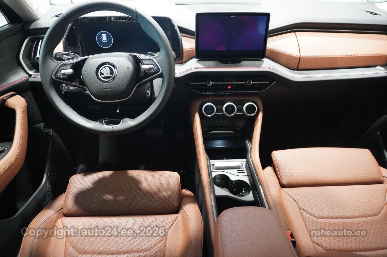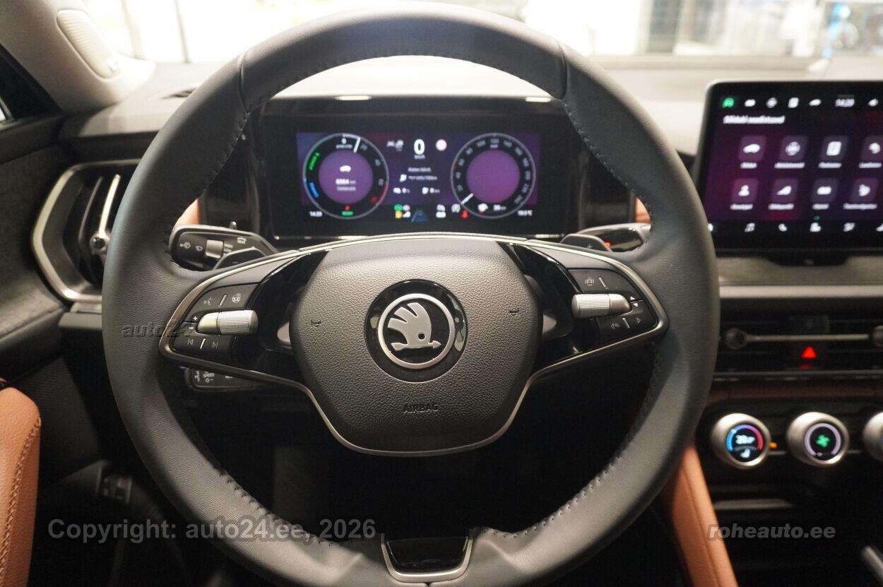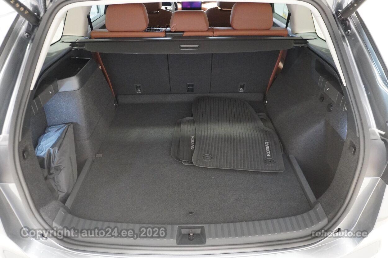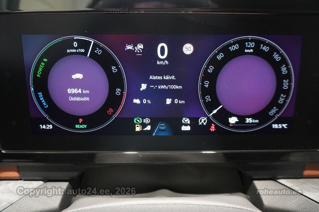 kliimaautomaatik, automaatpidurdussüsteem, roolivõimendi (kiirustundlik), kesklukustus (puldiga), ABS pidurid, elektrooniline seisupidur, turvapadi, turvakardinad, immobilisaator, signalisatsioon (kaldeanduriga, mahuanduriga), lisapidurituli, stabiilsuskontroll, kokkupõrget ennetav pidurisüsteem, sõiduraja hoidmise abisüsteem, pidurdusjõukontroll, liiklusmärkide tuvastus ja kuvamine, pimenurga hoiatus, veojõukontroll, vihmasensor, ISOFIX lasteistme kinnitus (ees, taga), automaatne paigalseismise funktsioon / mägistardi abi, kõrvalistuja turvapadja väljalülitamise võimalus, juhi väsimuse tuvastamise süsteem, valgustuspakett, udutuled (eesmised, tagumine), LED (päevatuled, tagatuled, lähituled, kaugtuled), päevasõidutulede automaatne lülitus, kaugtulede ümberlülitamise assistent, talverehvid (lamellrehvid), valuveljed, autoga antakse kaasa (suverehvid), rehvirõhu kontrollsüsteem, reguleeritav roolisammas (kõrgus ja sügavus), multifunktsionaalne rool, nahkkattega rool, soojendusega rool, käiguvahetus roolilt, stereo (USB pesaga, originaal), helivõimendi, kõlarid, Apple CarPlay, Android Auto, ekraan (ees), autokompuuter, käed vabad süsteem, iluliistud salongis, taskud esiistmete seljatugedes, jalamatid (tekstiilist, kummist), topsihoidjad (ees, taga), nahkpolster, 2x elektriliselt reguleeritavad istmed (2x mäludega), istmed reguleeritava kõrgusega (juhiiste, kõrvalistuja iste), reguleeritava kumerusega seljatugi (juhiiste, kõrvalistuja iste), 4x istmesoojendused, käetugi ees (laekaga), käetugi taga, tagaistme seljatugi allaklapitav, elektrilised välispeeglid (soojendusega, kokkuklapitavad), elektrilised akende tõstukid, toonitud klaasid, püsikiiruse hoidja (eessõitjaga distantsi hoidev), peeglid päikesesirmides, salongi eelsoojendus, kohtvalgustid, parkimisandurid (ees, taga), parkimiskaamera, Coming-/Leaving-Home funktsioon, digitaalne näidikutepaneel, telefoni juhtmevaba laadimine, võtmeta avamine, võtmeta käivitus, 12v pistikupesad, reisiarvesti, pakiruumi avamine elektriliselt (puldist), pagasikate, katusereelingud, kaubakinnituse konksud, elektrilise soojendusega esiklaas, tagaklaasi soojendus, välistemperatuuri näidik, esi- ja tagarataste porikummid, tagaklaasi puhasti, Soojendusega esiklaas, Laadimiskaabel ühefaasilisele ühendusele (230 V), Täiendava mürasummutusega esimesed külgaknad, Interjöör Suite Cognac: pruuni värvi nahast istmekatted (perforeeritud), 18" valuveljed Soira, antratsiithallid/poleeritud, Pakett Winter: soojendusega tagumised (äärmised) istmed, 2 kodaraga multifunktsionaalne soojendusega nahkrool, Convenience Plus: el. seadistatavad esiistmed, mälufunktsiooniga, "Virtual Pedal", audiosüsteem Canton: 13 kõlarit + aktiivbassikõlar |