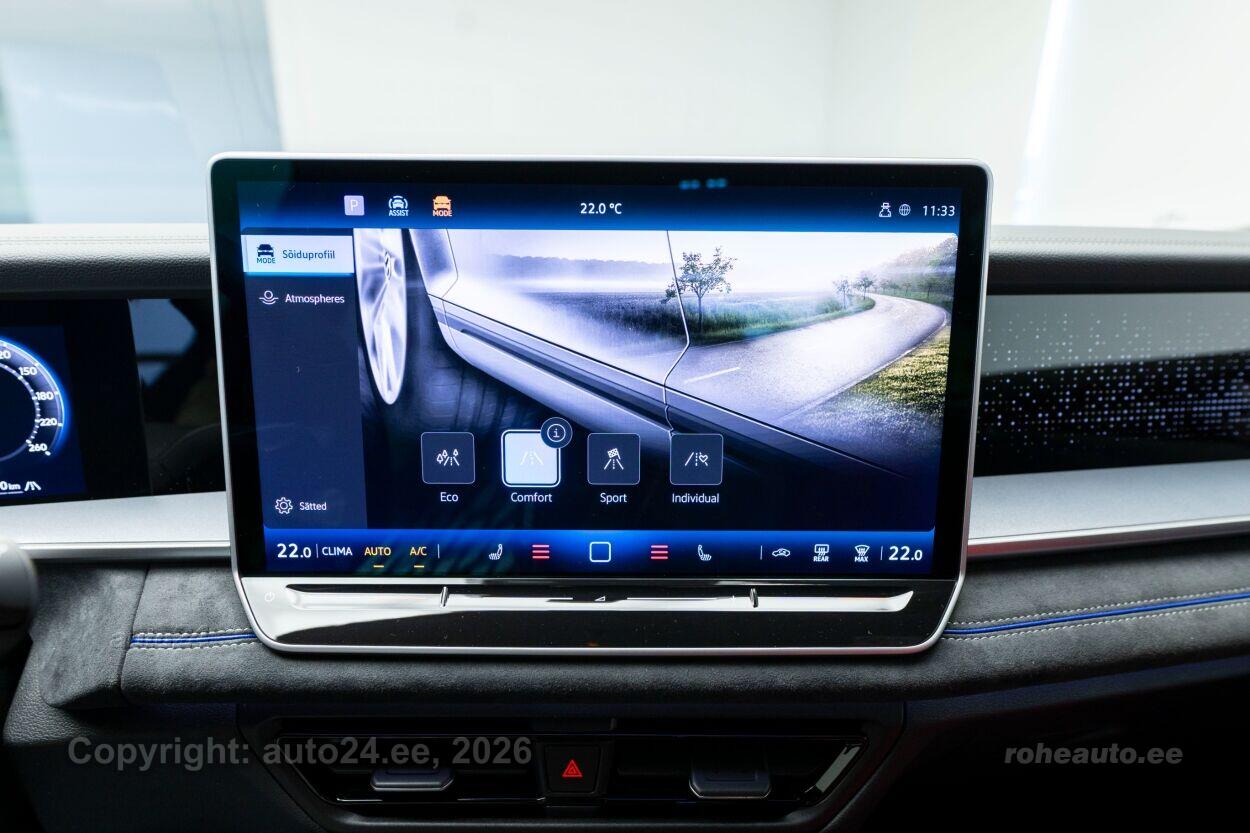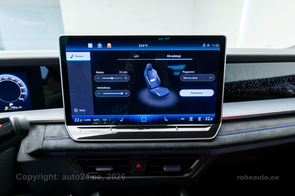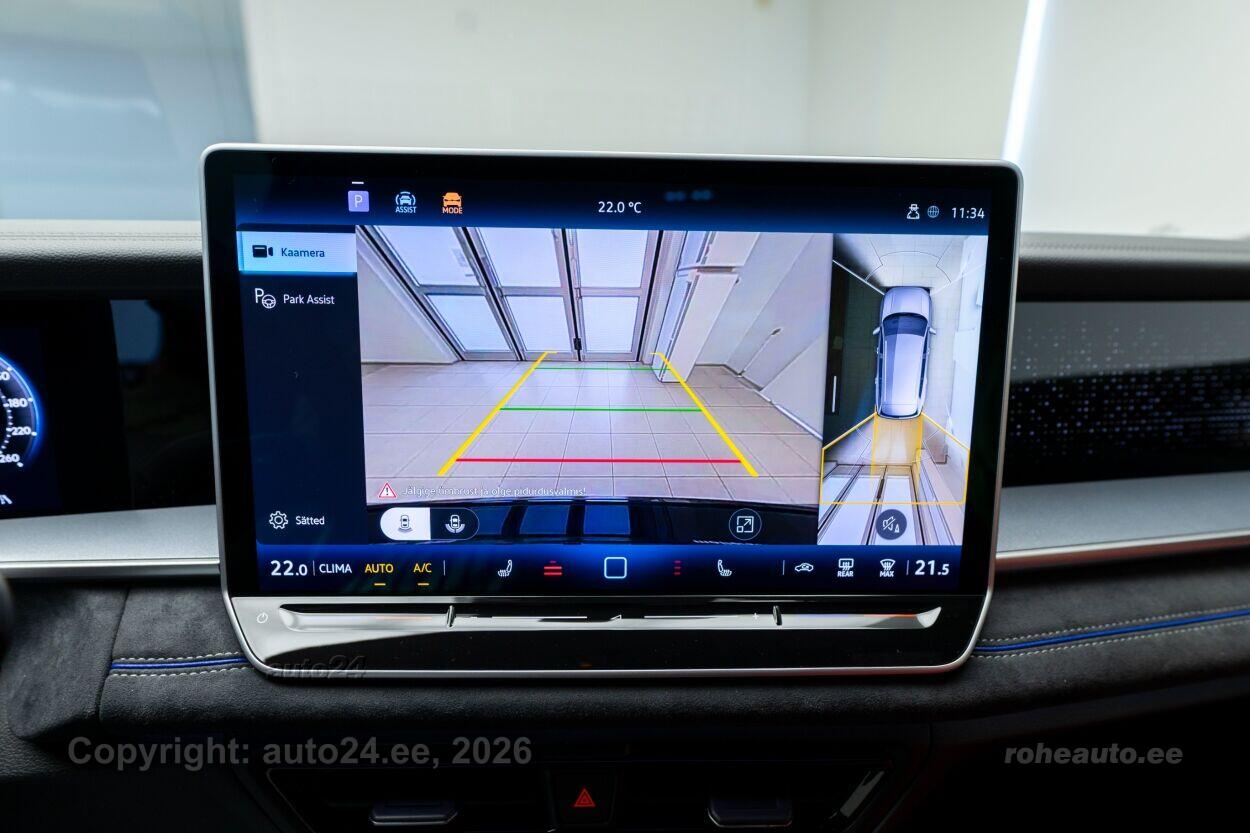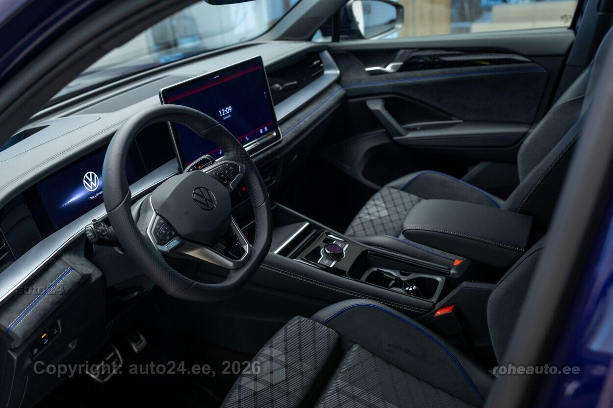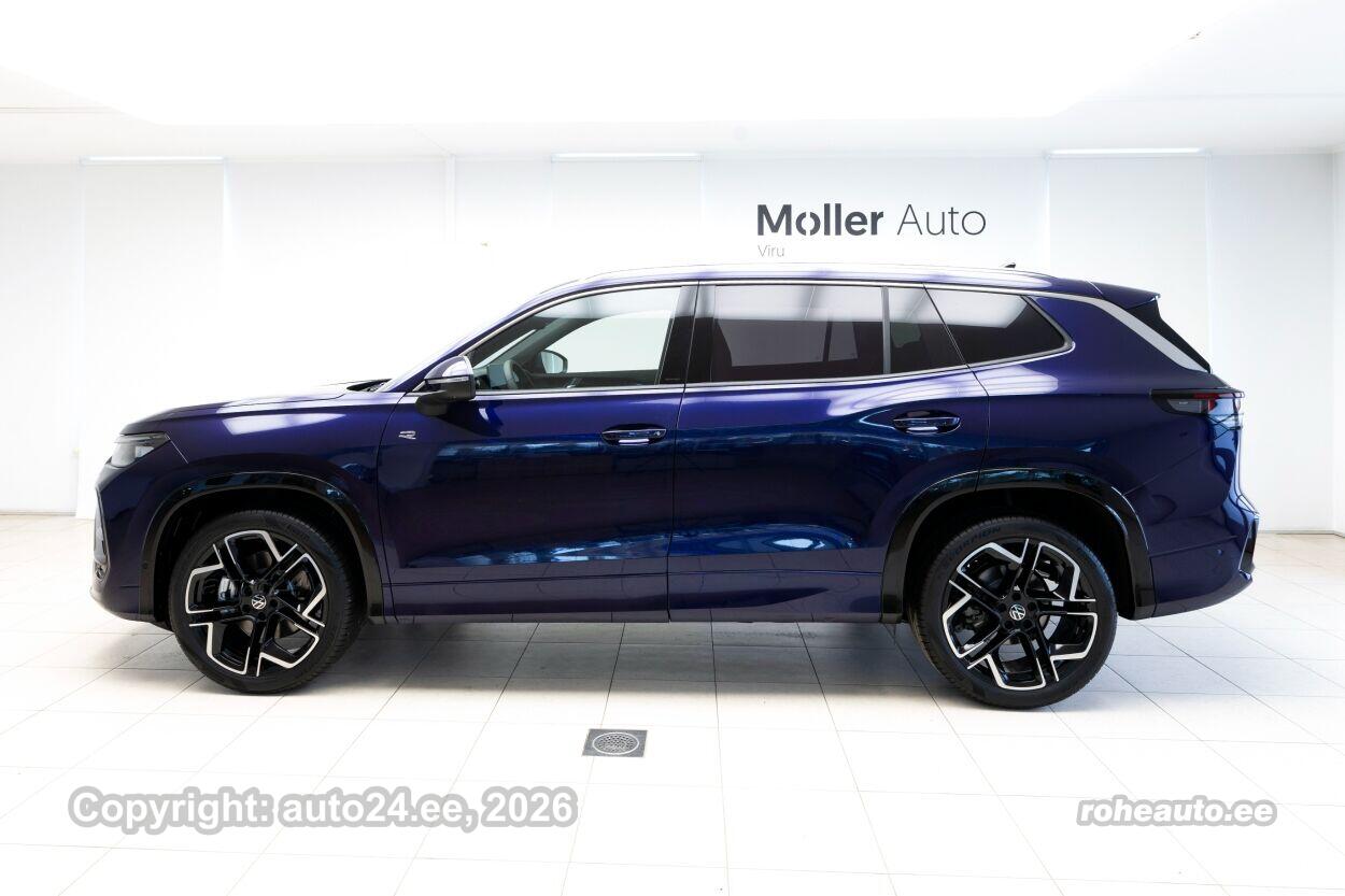 automaatpidurdussüsteem, roolivõimendi, kesklukustus (puldiga), ABS pidurid, turvapadi, elektrooniline seisupidur, immobilisaator, stabiilsuskontroll, sõiduraja hoidmise abisüsteem, sõiduraja vahetamise abisüsteem, liiklusmärkide tuvastus ja kuvamine, öise nägemise assistent, pimenurga hoiatus, vihmasensor, ISOFIX lasteistme kinnitus, kõrvalistuja turvapadja väljalülitamise võimalus, juhi väsimuse tuvastamise süsteem, LED, päevasõidutulede automaatne lülitus, multifunktsionaalne rool, soojendusega rool, kõlarid, Apple CarPlay, Android Auto, käed vabad süsteem, jalamatid (veluurist), topsihoidjad (ees, taga), tekstiilpolster, elektrilised akende tõstukid, toonitud klaasid, püsikiiruse hoidja (eessõitjaga distantsi hoidev), rulookardin tagaaknal, parkimisandurid (ees, taga), parkimiskaamera, Coming-/Leaving-Home funktsioon, digitaalne näidikutepaneel, info kuvamine esiklaasile, telefoni juhtmevaba laadimine, võtmeta avamine, võtmeta käivitus, start-stopp süsteem, 12v pistikupesad, katusereelingud, haagise stabiliseerimissüsteem, välistemperatuuri näidik, esi- ja tagarataste porikummid, tagaklaasi puhasti, Mugavuspakett, PFBC Juhiabipakett IQ.DRIVE - Juhiabi Travel Assist - Hädaabisüsteem Emergency Assist - 360-kraadine kaamera Area View koos tagurduskaameraga - Proaktiivne reisijate kaitse süsteem (avariieelne) - elektriliselt reguleeritavad ja kokkuklapitavad soojenduse ja mäluga välispeeglid, juhi pool isetumenev Ainult koos RBA või RBB-ga, Kaks eraldi istet kolmandas istmereas, Valuveljed York R20, Volkswagen R, PLC1 IQ.LIGHT - HD maatriks-LED-esituled - HD maatriks esituled - täiustatud dünaamiline kaugtulede automaatlülitus Dynamic Light Assist - 3D LED-tagatuled dünaamiliste suunatuledega Ainult koos PFB-ga, RBB1 Navigatsioonisüsteem Discover Pro Max - 38 cm puuteekraan - Esiklaasinäidik - IDA hääljuhtimine - Kaks USB-C laadimispesa taga keskkonsoolis, laadimisvõimsus kuni 45 W - mobiiltelefoniliides Comfort koos induktsioonlaadimisega, VW5A Heliisolatsiooniga aknaklaasid, toonitud tagumised küljeaknad ja tagaklaas |