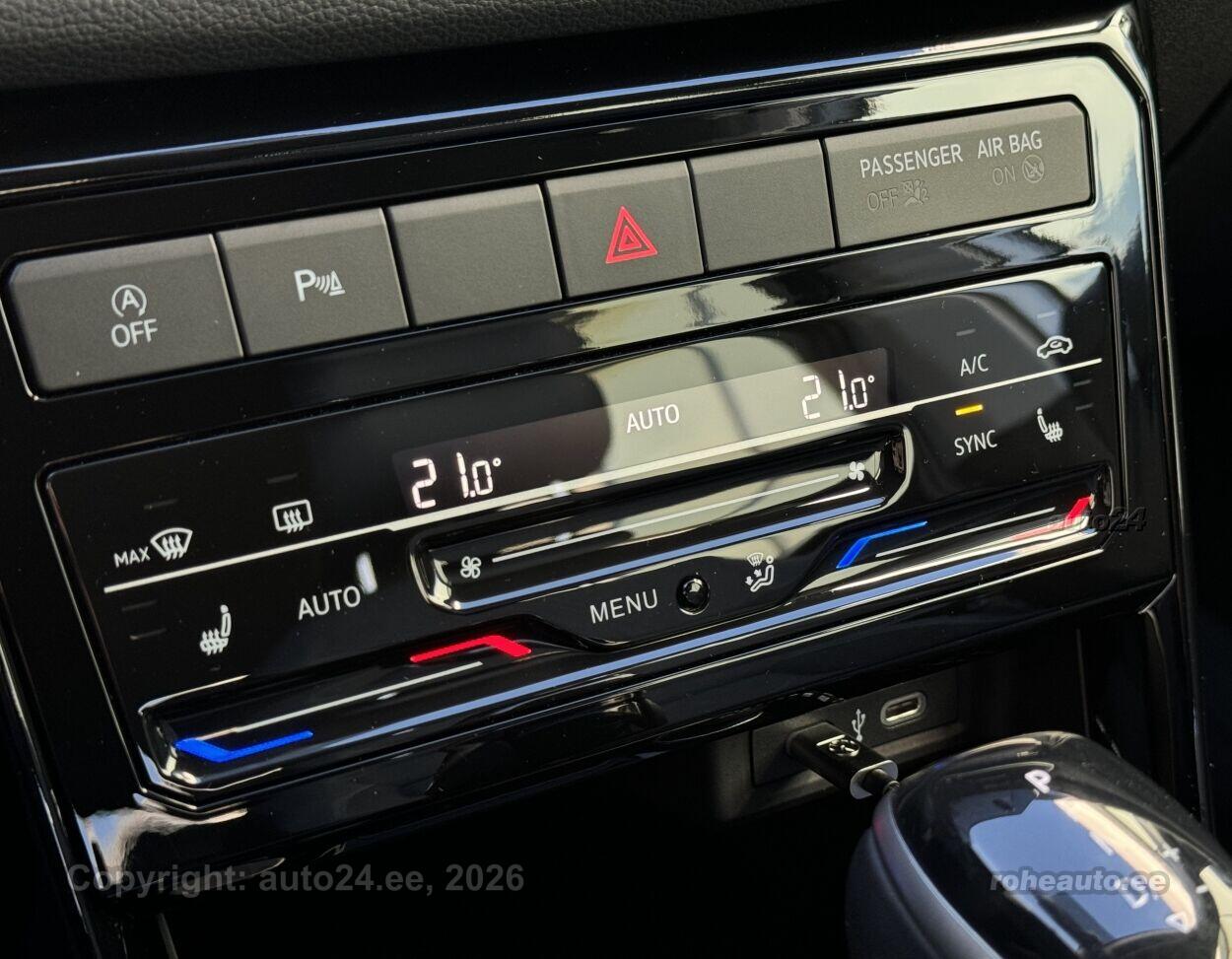 kliimaautomaatik, roolivõimendi (kiirustundlik), kesklukustus (puldiga), ABS pidurid, turvapadi, turvakardinad, immobilisaator, signalisatsioon (mahuanduriga), lisapidurituli, kokkupõrget ennetav pidurisüsteem, stabiilsuskontroll, sõiduraja hoidmise abisüsteem, pidurdusjõukontroll, veojõukontroll, vihmasensor, ISOFIX lasteistme kinnitus (ees, taga), kõrvalistuja turvapadja väljalülitamise võimalus, juhi väsimuse tuvastamise süsteem, mägipidur, valgustuspakett, udutuled (tagumine), LED (tagatuled, päevatuled, lähituled, kaugtuled), päevasõidutulede automaatne lülitus, suverehvid, talverehvid, valuveljed (17, VW), rehvirõhu kontrollsüsteem, reguleeritav roolisammas (kõrgus ja sügavus), multifunktsionaalne rool, nahkkattega rool, käiguvahetus roolilt, stereo (USB pesaga, originaal), Apple CarPlay, Android Auto, ekraan (ees), autokompuuter, käed vabad süsteem, topsihoidjad (ees), tekstiilpolster, istmed reguleeritava kõrgusega (kõrvalistuja iste, juhiiste), 2x istmesoojendused, reguleeritava kumerusega seljatugi (kõrvalistuja iste, juhiiste), käetugi ees (laekaga), tagaistme seljatugi allaklapitav, elektrilised välispeeglid (soojendusega, kokkuklapitavad), 4x elektrilised akende tõstukid, püsikiiruse hoidja (eessõitjaga distantsi hoidev), automaatselt tumenevad peeglid (sees), parkimisandurid (ees, taga), parkimiskaamera, Coming-/Leaving-Home funktsioon, digitaalne näidikutepaneel, tagavararatas, võtmeta avamine, võtmeta käivitus, start-stopp süsteem, reisiarvesti, pagasikate, tagaklaasi soojendus, aknapesupihustite sulatus, välistemperatuuri näidik, tagaklaasi puhasti |