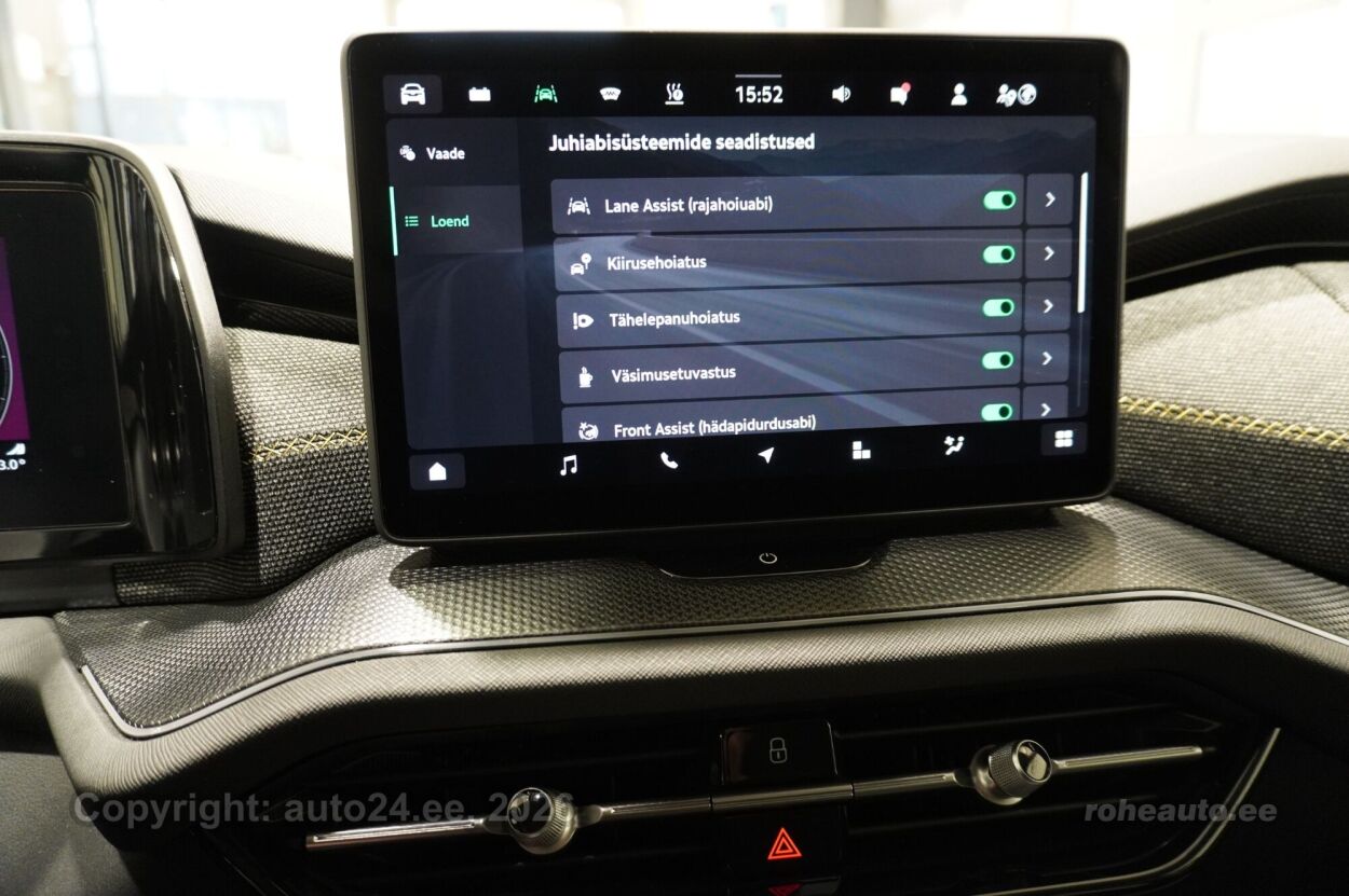клима-автоматик, система автоматического торможения, усилитель руля (чувствительный к скорости), центральный замок (с пультом), тормоза с АБС, электронный стояночный тормоз, воздушная подушка, шторы безопасности, иммобилайзер, сигнализация (с датчиком наклона, с объемным датчиком), доп.стоп сигнал, система контроля стабильного положения, система предотвращения столкновения, система контроля тормозного усилия, система удержания полосы движения, система распознавания дорожных знаков, система контроля слепых зон, противобуксовочная система, натяжители ремней безопасности спереди, датчик дождя, ISOFIX крепитель детских сидений (спереди, сзади), автодержатель тормоза, возможность выключит воздушную подушку переднего пассажира, система распознавания усталости водителя, светопакет, противотуманные фонари (задний), LED (фары дневного света, задние фары, ближнего света, дальнего света), автоматическое включение фар, ассистент переключения дальнего света, зимняя резина (ламельная резина), литые диски, вместе с автомобилем впридачу (летняя резина), система контроля давления в шинах, регулируемый руль (по высоте и глубине), многофункциональный руль, руль обшитый кожей, руль с отеплением, переключение скоростей с руля, стерео (гнездо для USB, оригинальное), звуковые колонки, Apple CarPlay, Android Auto, экран (спереди), компьютер, система "hands free", декоративные накладки в салоне, карманы в спинках передних сидений, коврики (текстильные), коврик багажника, держатели стаканов (спереди, сзади), текстильная обивка, 1x электрически регулируемые сиденья (1x с памятью), регулируемые по высоте сидения (водительское сидение, пассажирское сидение), спинка с регулировкой выпуклости (водительское сидение), 4x обогрев сидений, подлокотник спереди (с ящиком), подлокотник сзади, складывающаяся спинка заднего сиденья, электрические зеркала заднего вида (с подогревом, складывающиеся), электрические стеклоподъемники, тонированные стекла, круиз контроль (с удержанием дистанции до переднего транспортного средство), противосолнечные козырьки с зеркалами, подогрев салона, местная подсветка, датчики парковки (спереди, сзади), парковочная камера, Coming-/Leaving-Home функция, цифровая приборная панель, безключевой доступ, безключевой запуск, 12v электрические розетки, счетчик поездки, электронное открывание багажника (с пульта), крышка багажного отделения, дуги на крыше, крючки крепления багажа, подогрев переднего стекла, подогрев заднего стекла, показатель температуры атмосферного воздуха, брызговики спереди и сзади, очиститель заднего стекла, Ettevalmistus haagisekonksu paigaldamiseks, Soojendusega esiklaas, Lisagarantii: 50 000 km (garantiiperiood kokku 5 aastat / 150 000 km), Laadimiskaabel ühefaasilisele ühendusele (230 V), Täiendava mürasummutusega esimesed külgaknad, 18" valuveljed Mazeno, Aero veljekatetega, Horisontaalne LED-valgusriba iluvõres, kroomitud iluvõre ribid, Pakett Winter: soojendusega tagumised (äärmised) istmed, 2 kodaraga multifunktsionaalne soojendusega nahkrool |
