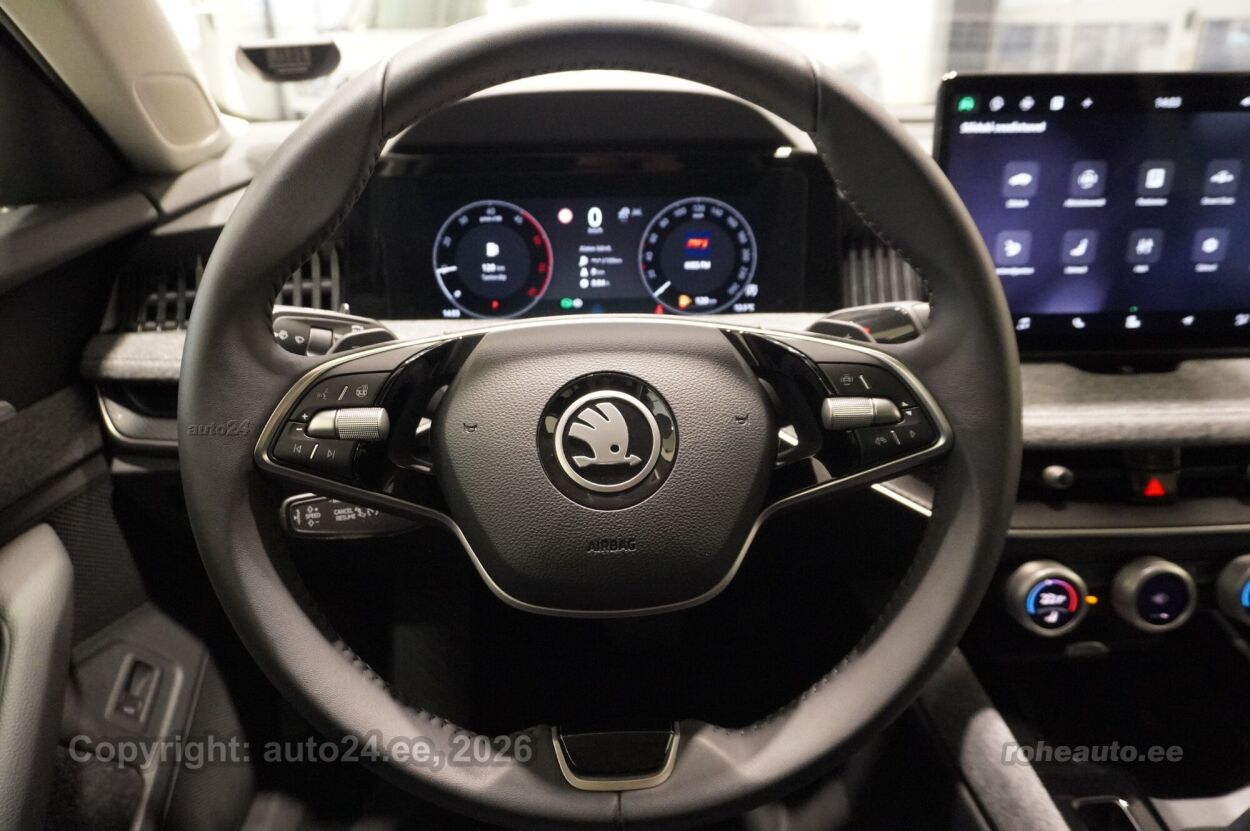 клима-автоматик, система автоматического торможения, усилитель руля (чувствительный к скорости), центральный замок (с пультом), тормоза с АБС, электронный стояночный тормоз, воздушная подушка, шторы безопасности, иммобилайзер, сигнализация (с датчиком наклона, с объемным датчиком), доп.стоп сигнал, система предотвращения столкновения, система контроля стабильного положения, система удержания полосы движения, система контроля тормозного усилия, система распознавания дорожных знаков, система контроля слепых зон, противобуксовочная система, датчик дождя, ISOFIX крепитель детских сидений (спереди, сзади), возможность выключит воздушную подушку переднего пассажира, автодержатель тормоза, система распознавания усталости водителя, светопакет, противотуманные фонари (передние), LED (фары дневного света, задние фары, ближнего света, дальнего света), автоматическое включение фар, ассистент переключения дальнего света, зимняя резина (ламельная резина), литые диски, вместе с автомобилем впридачу (летняя резина), система контроля давления в шинах, регулируемый руль (по высоте и глубине), многофункциональный руль, руль обшитый кожей, руль с отеплением, переключение скоростей с руля, стерео (гнездо для USB, оригинальное), звуковые колонки, Apple CarPlay, Android Auto, экран (спереди), система навигации (с картой), компьютер, система "hands free", декоративные накладки в салоне, карманы в спинках передних сидений, коврики (текстильные), коврик багажника, держатели стаканов (спереди, сзади), текстильная обивка, 2x электрически регулируемые сиденья, регулируемые по высоте сидения (водительское сидение, пассажирское сидение), спинка с регулировкой выпуклости (водительское сидение, пассажирское сидение), 4x обогрев сидений, массирующее сиденье (водителя, пассажира), подлокотник спереди (с ящиком), подлокотник сзади, складывающаяся спинка заднего сиденья, электрические зеркала заднего вида (с подогревом, складывающиеся), электрические стеклоподъемники, тонированные стекла, круиз контроль (с удержанием дистанции до переднего транспортного средство), местная подсветка, датчики парковки (спереди, сзади), парковочная камера, Coming-/Leaving-Home функция, цифровая приборная панель, безключевой доступ, безключевой запуск, старт-стоп система, 12v электрические розетки, счетчик поездки, электронное открывание багажника (с пульта), крышка багажного отделения, дуги на крыше, разделительная сетка в багажном отделении, крючки крепления багажа, прицепное устройство (электрический), система стабилизации прицепа, подогрев переднего стекла, подогрев заднего стекла, показатель температуры атмосферного воздуха, брызговики спереди и сзади, очиститель заднего стекла, Täiendava mürasummutusega esimesed ja tagumised külgaknad, Kroomitud külgakende liistud + hõbehallid katusereelingud, Haagisekonks (mehaaniliselt kokkuklapitav), Maatriks-funktsionaalsusega LED-esilaternad + dünaamilised suunatuled taga, Škoda Navigation: 13" puutetundlik värviekraan, navigatsioonisüsteem, AM/FM raadio, |