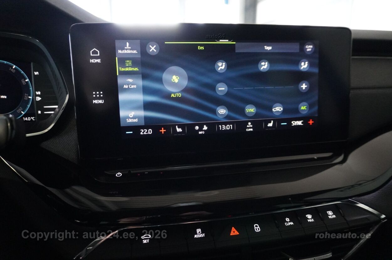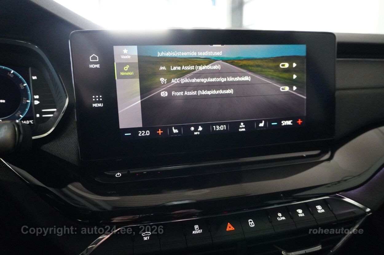 клима-автоматик, система автоматического торможения, усилитель руля (чувствительный к скорости), центральный замок (с пультом), тормоза с АБС, электронный стояночный тормоз, воздушная подушка, иммобилайзер, сигнализация (с датчиком наклона, с объемным датчиком), доп.стоп сигнал, система контроля стабильного положения, система предотвращения столкновения, система контроля тормозного усилия, система удержания полосы движения, противобуксовочная система, датчик дождя, ISOFIX крепитель детских сидений (спереди, сзади), возможность выключит воздушную подушку переднего пассажира, автодержатель тормоза, светопакет, противотуманные фонари (передние, задний), LED (фары дневного света, задние фары, ближнего света, дальнего света), автоматическое включение фар, ассистент переключения дальнего света, летняя резина, литые диски, система контроля давления в шинах, регулируемый руль (по высоте и глубине), многофункциональный руль, руль обшитый кожей, руль с отеплением, переключение скоростей с руля, стерео (гнездо для USB, оригинальное), звуковые колонки, Apple CarPlay, Android Auto, экран (спереди), компьютер, система "hands free", декоративные накладки в салоне, карманы в спинках передних сидений, коврики (текстильные, резиновые), держатели стаканов (спереди, сзади), текстильная обивка, регулируемые по высоте сидения (водительское сидение, пассажирское сидение), обогрев сидений, подлокотник спереди (с ящиком), подлокотник сзади, складывающаяся спинка заднего сиденья, электрические зеркала заднего вида (с подогревом, складывающиеся), электрические стеклоподъемники, тонированные стекла, круиз контроль (с удержанием дистанции до переднего транспортного средство), местная подсветка, датчики парковки (спереди, сзади), парковочная камера, Coming-/Leaving-Home функция, проекционный дисплей, безключевой запуск, старт-стоп система, 12v электрические розетки, счетчик поездки, электронное открывание багажника (с пульта), крышка багажного отделения, дуги на крыше, крючки крепления багажа, подогрев переднего стекла, подогрев заднего стекла, показатель температуры атмосферного воздуха, брызговики спереди и сзади, очиститель заднего стекла, Elektriliselt avatav ja suletav tagaluuk koos funktsiooniga "Virtual Pedal", Soojendusega esiklaas (integreeritud soojenduskile), Dekoratiivliistud "Piano Black", Adaptiivne püsikiirushoidik, säilitab eesliikujaga valitud pikivahet, Esiklaasinäidik Head Up Display - oluline sõiduinfo (kiirus, navigatsioonijuhised, juhiabisüsteemide info) kuvatakse juhi ette esiklaasile, Kolmetsooniline automaatne kliimaseade, eraldi seadistatav juhile, kaassõitjale ning tagaistujatele, Maatriks-LED-esilaternad, Full-LED tagatuled, 2-kodaraga soojendusega nahkrool raadio ja telefoni juhtimise ning DSG käiguvahetusega roolilt |