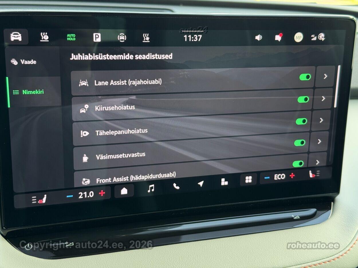 Varustus: kliimaautomaatik, roolivõimendi (kiirustundlik), kesklukustus (puldiga), ABS pidurid, elektrooniline seisupidur, 6x turvapadi, turvakardinad, immobilisaator, signalisatsioon (kaldeanduriga, mahuanduriga), lisapidurituli, kokkupõrget ennetav pidurisüsteem, stabiilsuskontroll, pidurdusjõukontroll, sõiduraja hoidmise abisüsteem, sõiduraja vahetamise abisüsteem, liiklusmärkide tuvastus ja kuvamine, pimenurga hoiatus, veojõukontroll, vihmasensor, ISOFIX lasteistme kinnitus (taga), automaatne paigalseismise funktsioon / mägistardi abi, kõrvalistuja turvapadja väljalülitamise võimalus, juhi väsimuse tuvastamise süsteem, valgustuspakett, udutuled (eesmised, tagumine), LED (päevatuled, tagatuled, lähituled, kaugtuled), päevasõidutulede automaatne lülitus, kaugtulede ümberlülitamise assistent, suverehvid, valuveljed (21, Škoda "SUPERNOVA"), rehvirõhu kontrollsüsteem, reguleeritav roolisammas (kõrgus ja sügavus), multifunktsionaalne rool, nahkkattega rool, stereo (USB pesaga, originaal), Apple CarPlay, Android Auto, ekraan (ees), autokompuuter, käed vabad süsteem, iluliistud salongis, jalamatid, topsihoidjad (ees, taga), poolnahkpolster, 2x elektriliselt reguleeritavad istmed (2x mäludega), istmed reguleeritava kõrgusega (juhiiste, kõrvalistuja iste), 2x istmesoojendused, reguleeritava kumerusega seljatugi (juhiiste, kõrvalistuja iste), massaažifunktsiooniga istmed (juhil, kõrvalistmel), käetugi ees (laekaga), käetugi taga, tagaistme seljatugi allaklapitav, elektrilised välispeeglid (soojendusega, kokkuklapitavad, mäluga), 4x elektrilised akende tõstukid, toonitud klaasid, püsikiiruse hoidja (eessõitjaga distantsi hoidev), 2x peeglid päikesesirmides (valgustusega), ŠKODA soojuspump mootori eelsoojendus, ŠKODA soojuspump salongi eelsoojendus, salongi lisasoojendus, eraldi kliimaseade tagaistmetele, automaatselt tumenevad peeglid (sees, väljas), kohtvalgustid, parkimisandurid (ees, taga), automaatse parkimise funktsioon, parkimiskaamera (360), Coming-/Leaving-Home funktsioon, digitaalne näidikutepaneel, info kuvamine esiklaasile, telefoni juhtmevaba laadimine, võtmeta avamine, võtmeta käivitus, reisiarvesti, pakiruumi avamine elektriliselt (jalaviipega, puldist), pagasikate, kaubakinnituse konksud, veokonks (elektriline, teisaldatav), tagaklaasi soojendus, välistemperatuuri näidik, Esiustel topeltklaasid, tagaklaasi puhasti, 545 Nm, Pakett Transport: pagasiruumi topeltpõrand, kahe poolega pagasiruumi matt (tekstiil/kumm), pagasikinnitusvõrgud, panipaik tagaistujatele keskkonsooli taga, Elektrilise lukustussüsteemiga haagisekonks, Soojuspump: salongiõhku soojendav küttepumbasüsteem, 21" valuveljed SUPERNOVA, antratsiithallid, rehvid 235/45 ees, 255/40 taga, ilma rehviparanduskomplektita, asendavad standardvelgi, Disainipakett "Lodge", musta värvi istmekatted tekstiil/kunstnahk, oranžid turvavööd ja dekoratiivõmblused, LEDvalgusribad dekoratiivliistudes, valgustatud jalaruum, põrandamatid ees ja taga, pagasiruumi katte vaheasend, pagasikinnitusvahendid, Pakett MAXX, lisaks ADVANCED paketile sisaldab veel: massaažifunktsiooniga el. esiistmed, 3 tsooniline kliimaseade Climatronic, parkimisabisüsteemid Intelligent Park Assist ning Remote Park Assist